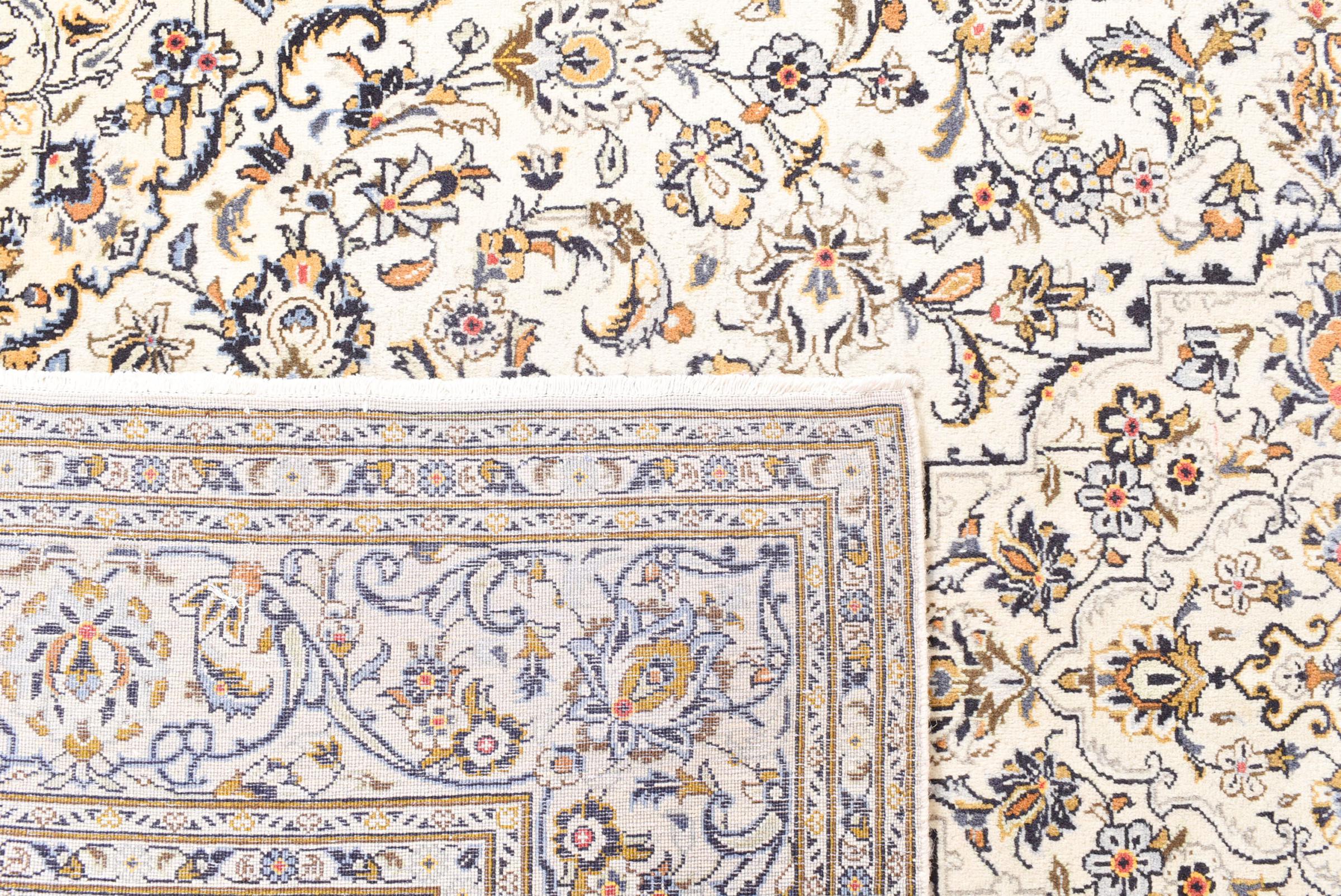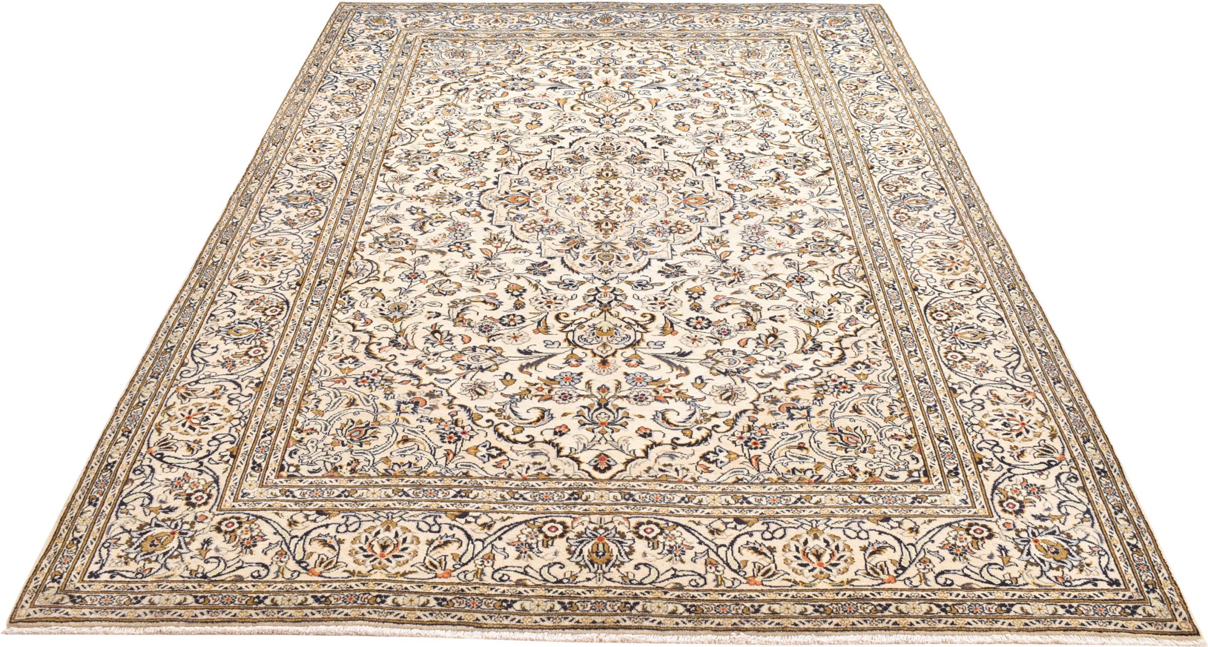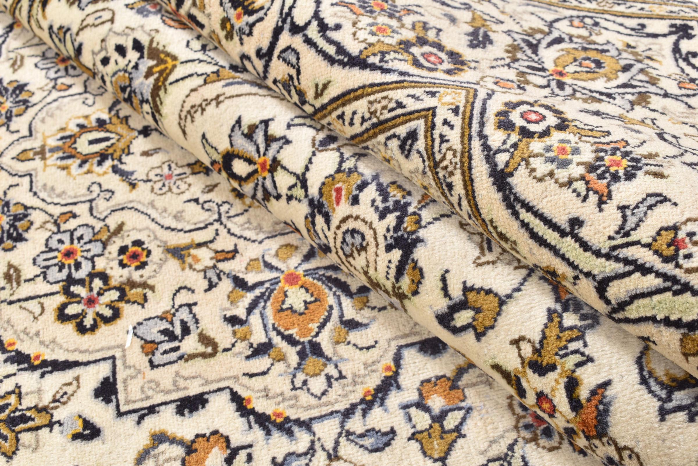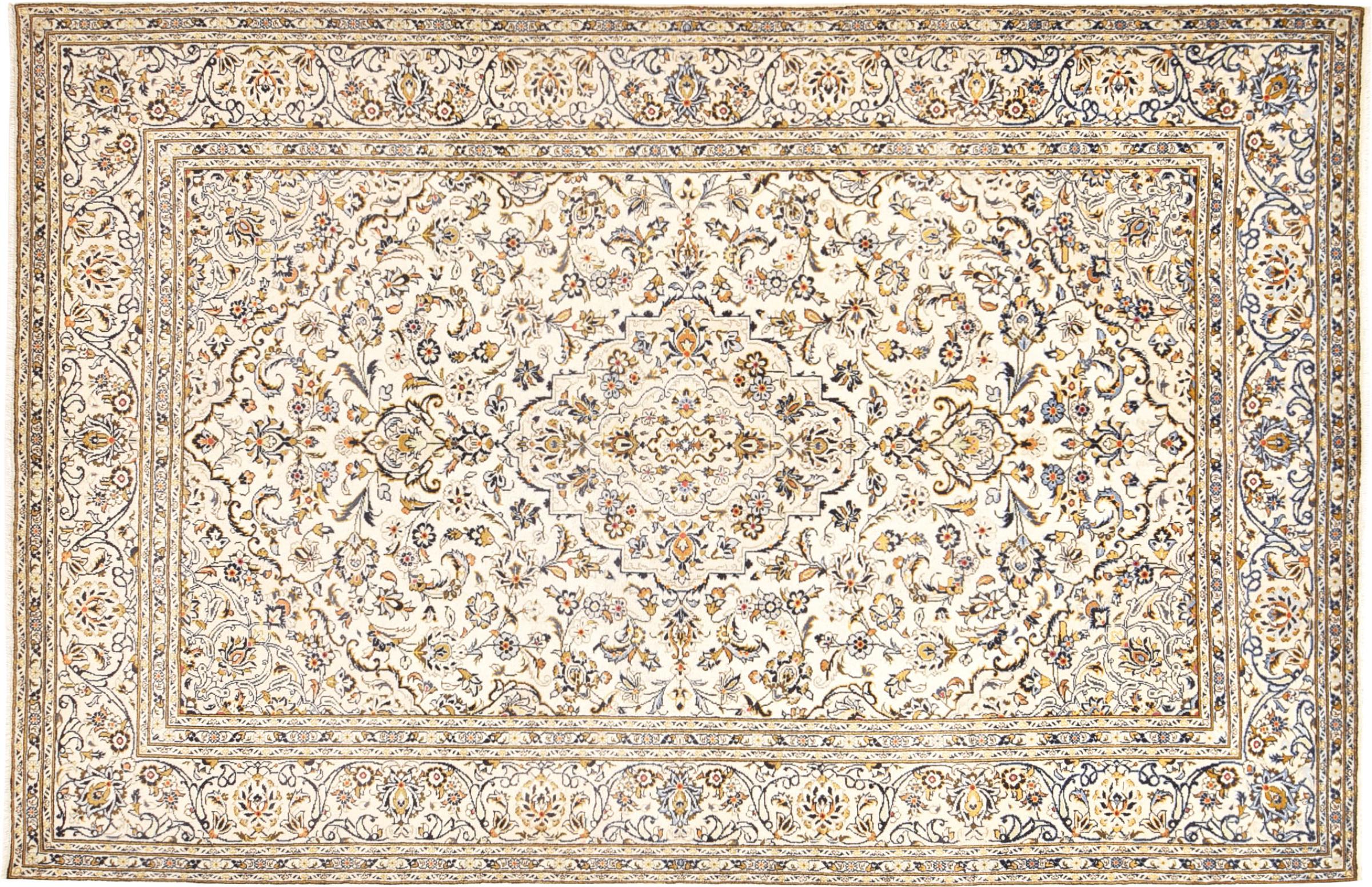 Ten dywan z Kashan (Keshan) ma bardzo tradycyjny i typowy perski wzór z pięknymi ornamentami. Dywany Kashan cieszą się dużą popularnością ze względu na ich wyjątkowo elegancki design. Dywany te pochodzą z Kaszanu, miasta leżącego na starożytnym Jedwabnym Szlaku. Ten dywan został ręcznie tkany z wysokiej jakości wełny owczej i będzie jedyną w swoim rodzaju atrakcją w Twoim domu.