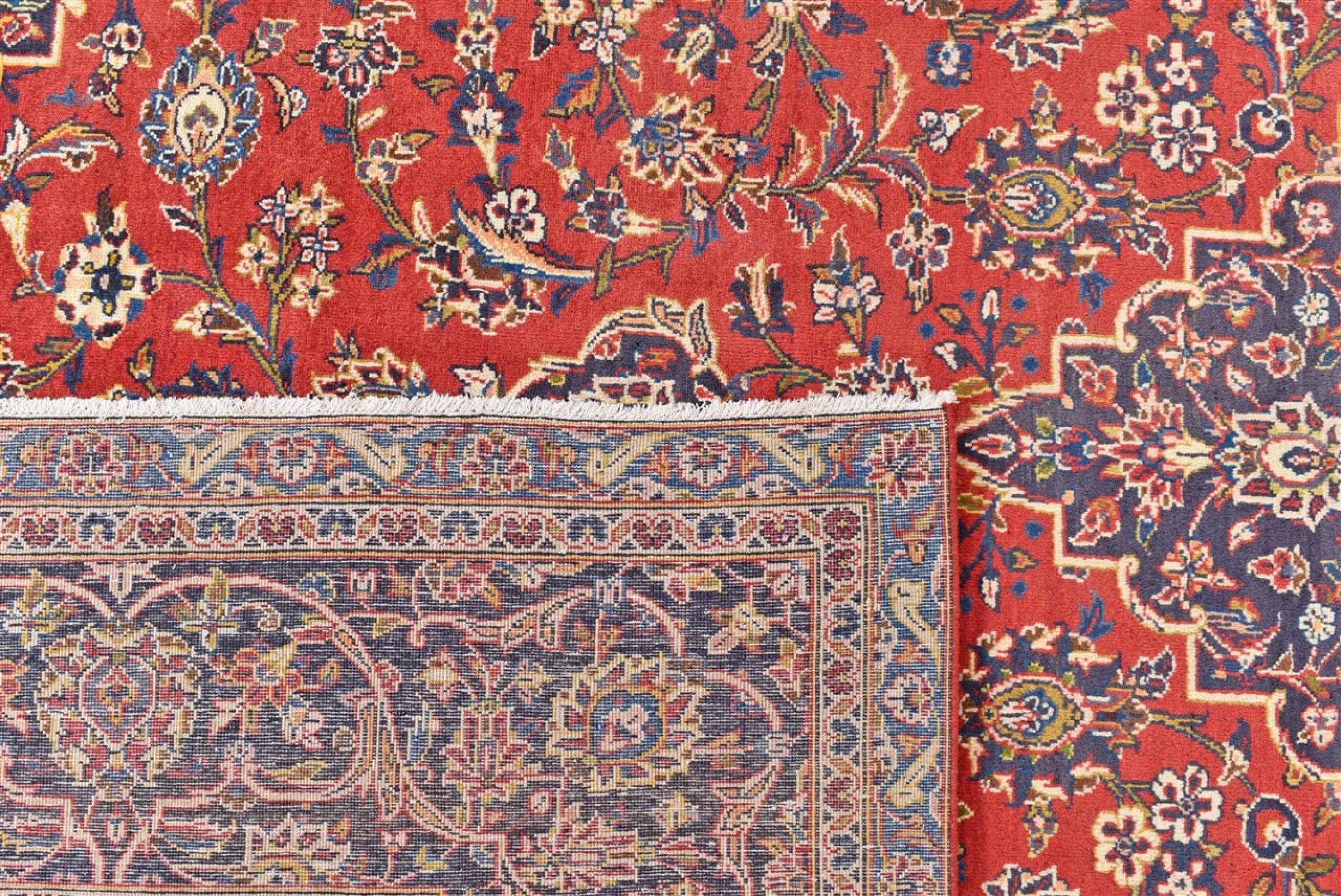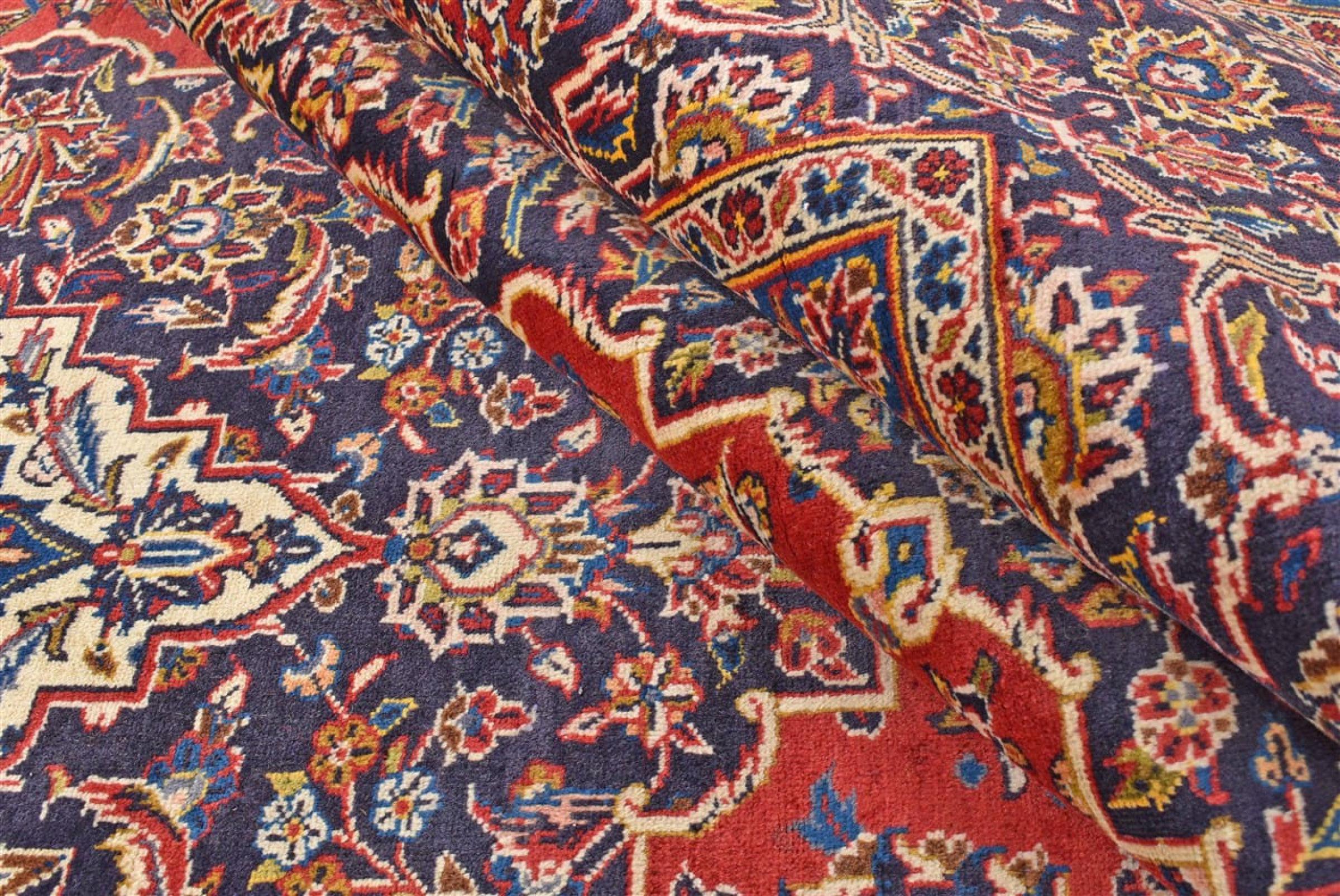 Ten dywan z Kashan (Keshan) ma bardzo tradycyjny i typowy perski wzór z pięknymi ornamentami. Dywany Kashan cieszą się dużą popularnością ze względu na ich wyjątkowo elegancki design. Dywany te pochodzą z Kaszanu, miasta leżącego na starożytnym Jedwabnym Szlaku. Ten dywan został ręcznie tkany z wysokiej jakości wełny owczej i będzie jedyną w swoim rodzaju atrakcją w Twoim domu.