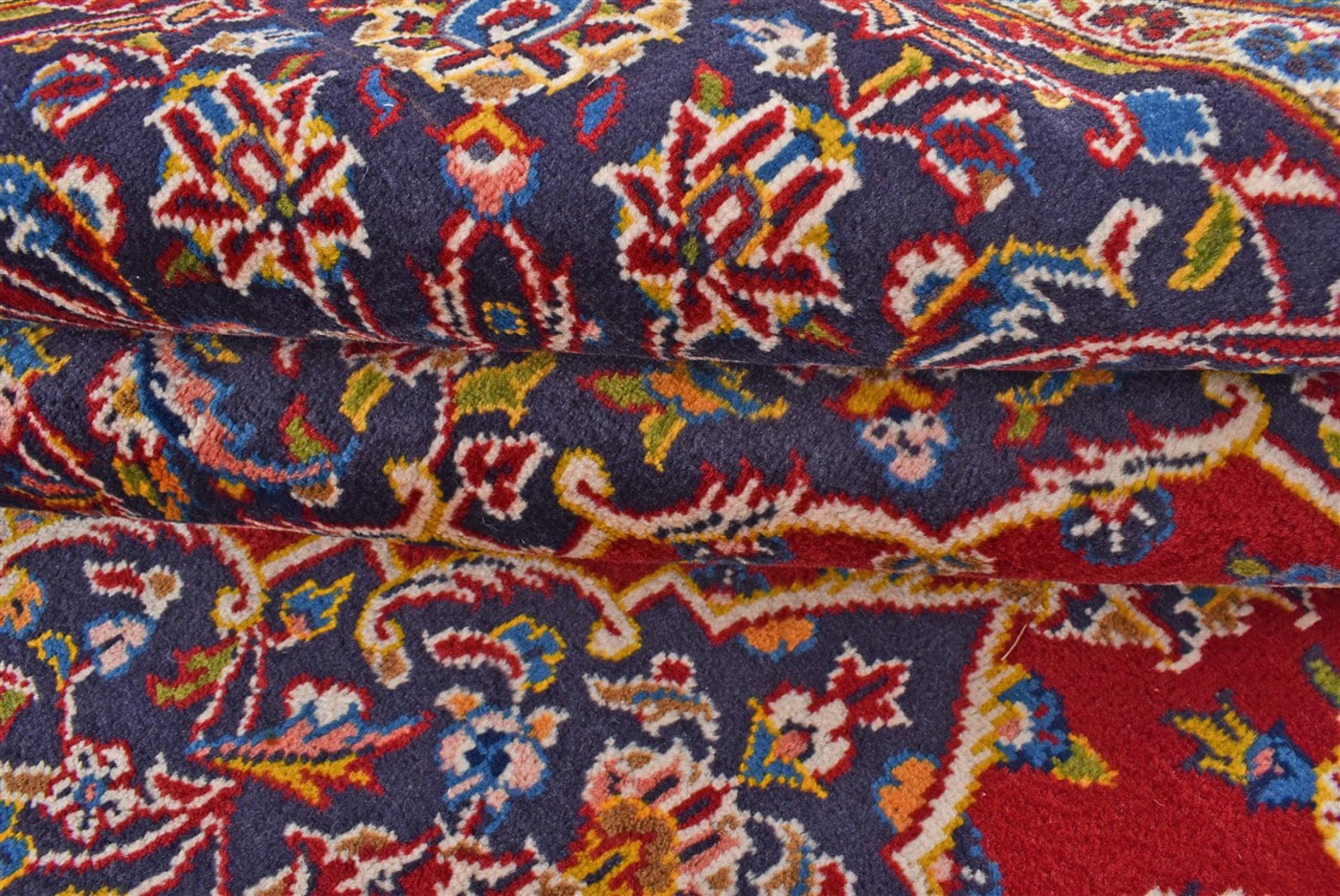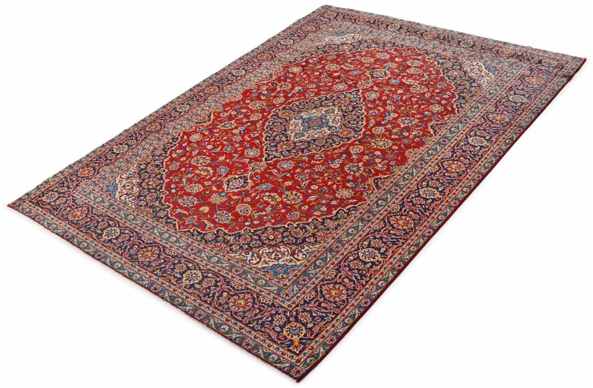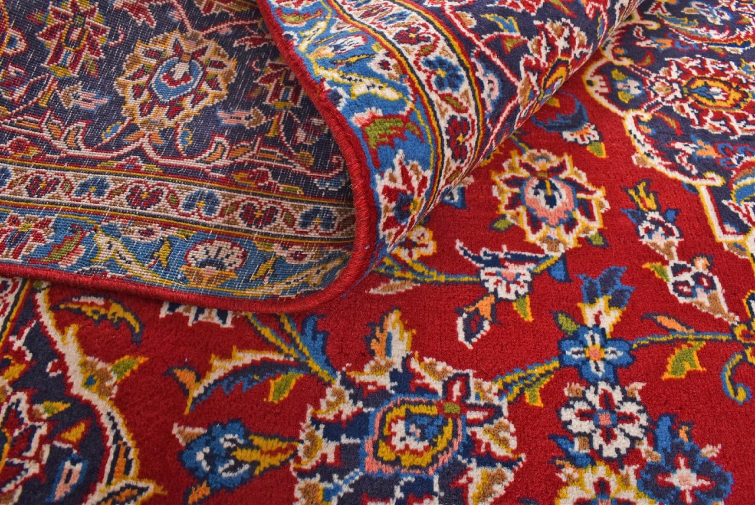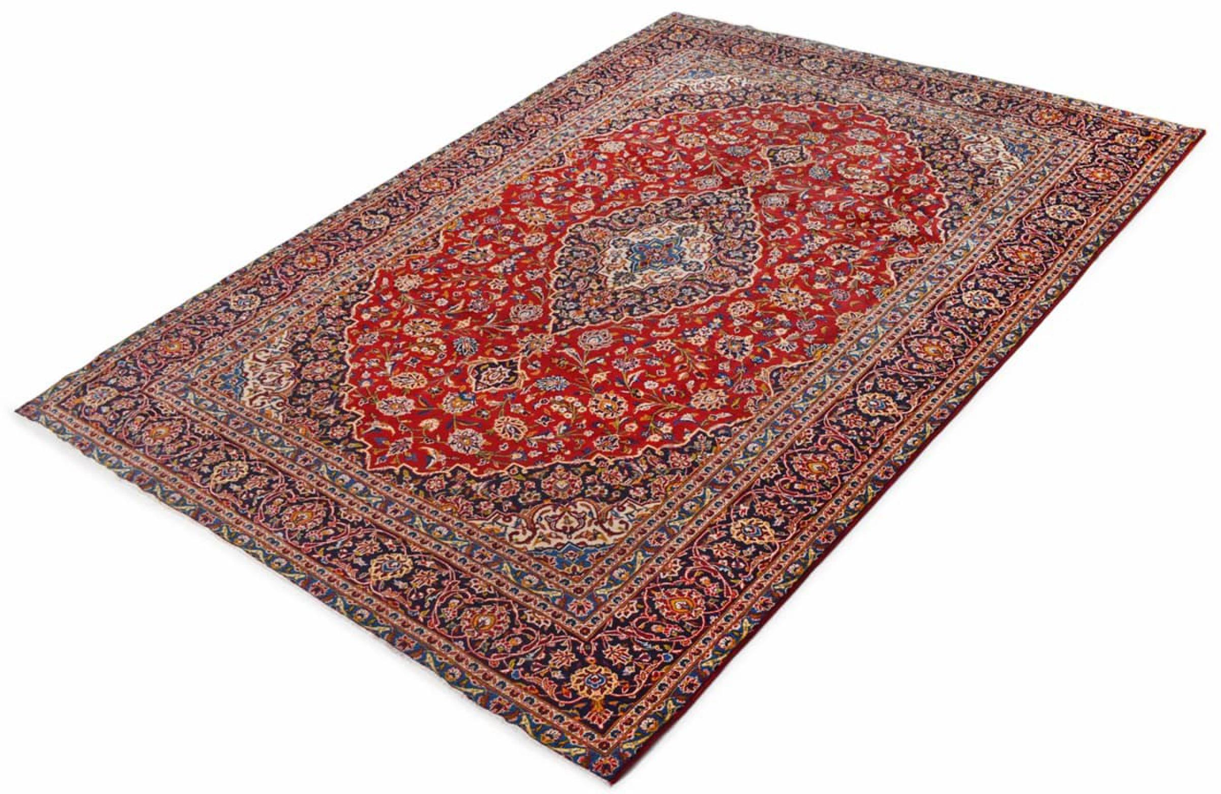 Ten dywan z Kashan (Keshan) ma bardzo tradycyjny i typowy perski wzór z pięknymi ornamentami. Dywany Kashan cieszą się dużą popularnością ze względu na ich wyjątkowo elegancki design. Dywany te pochodzą z Kaszanu, miasta leżącego na starożytnym Jedwabnym Szlaku. Ten dywan został ręcznie tkany z wysokiej jakości wełny owczej i będzie jedyną w swoim rodzaju atrakcją w Twoim domu.