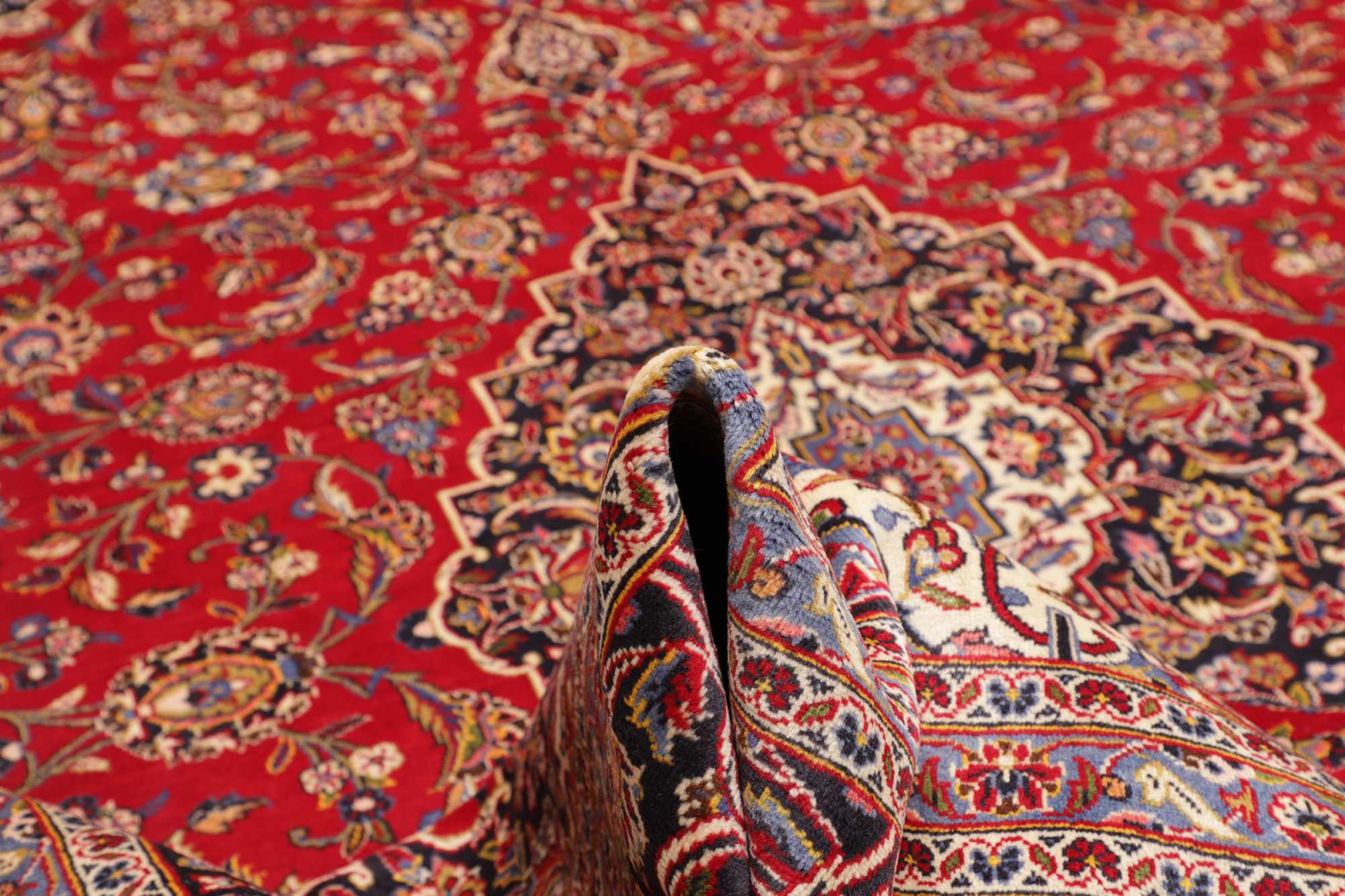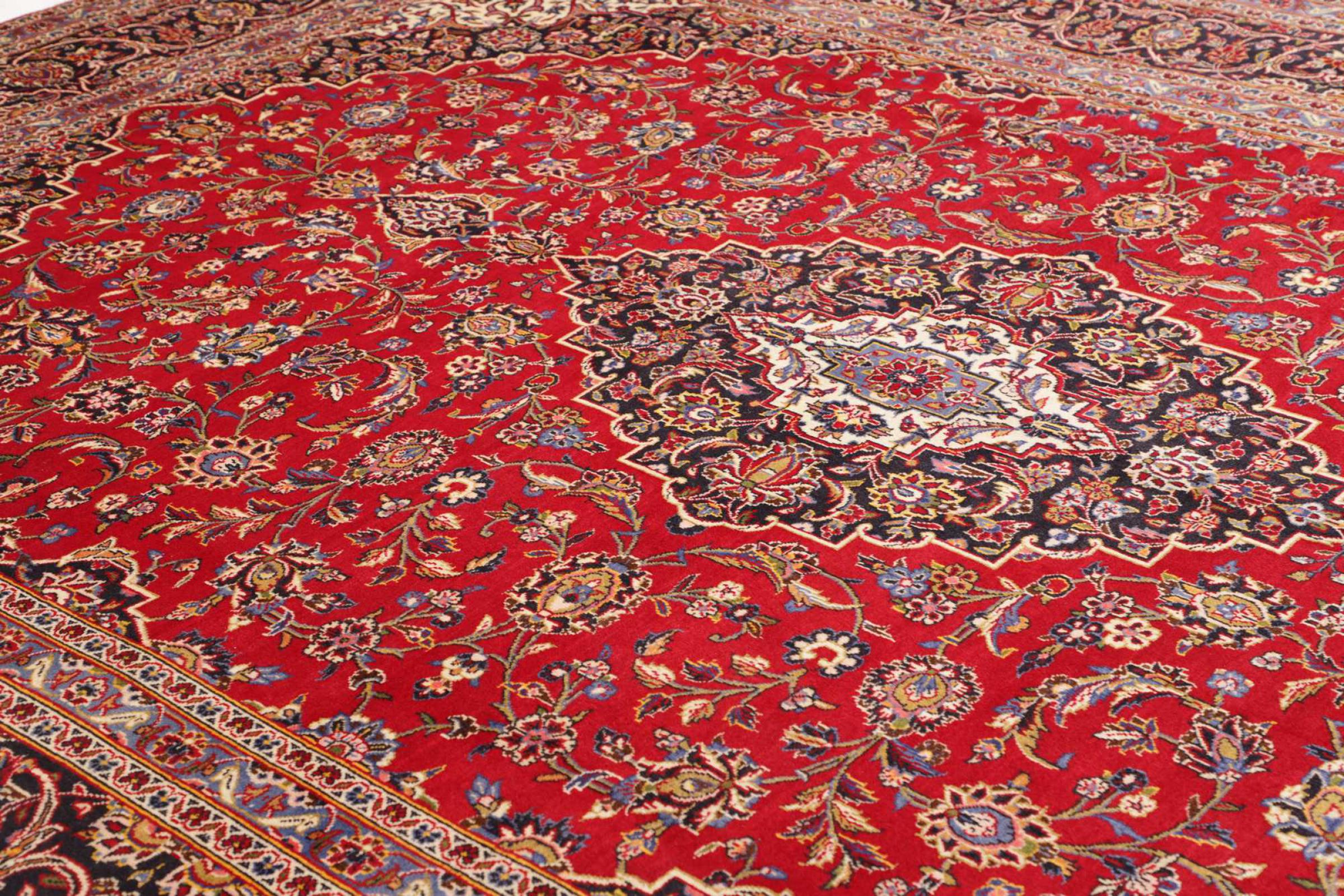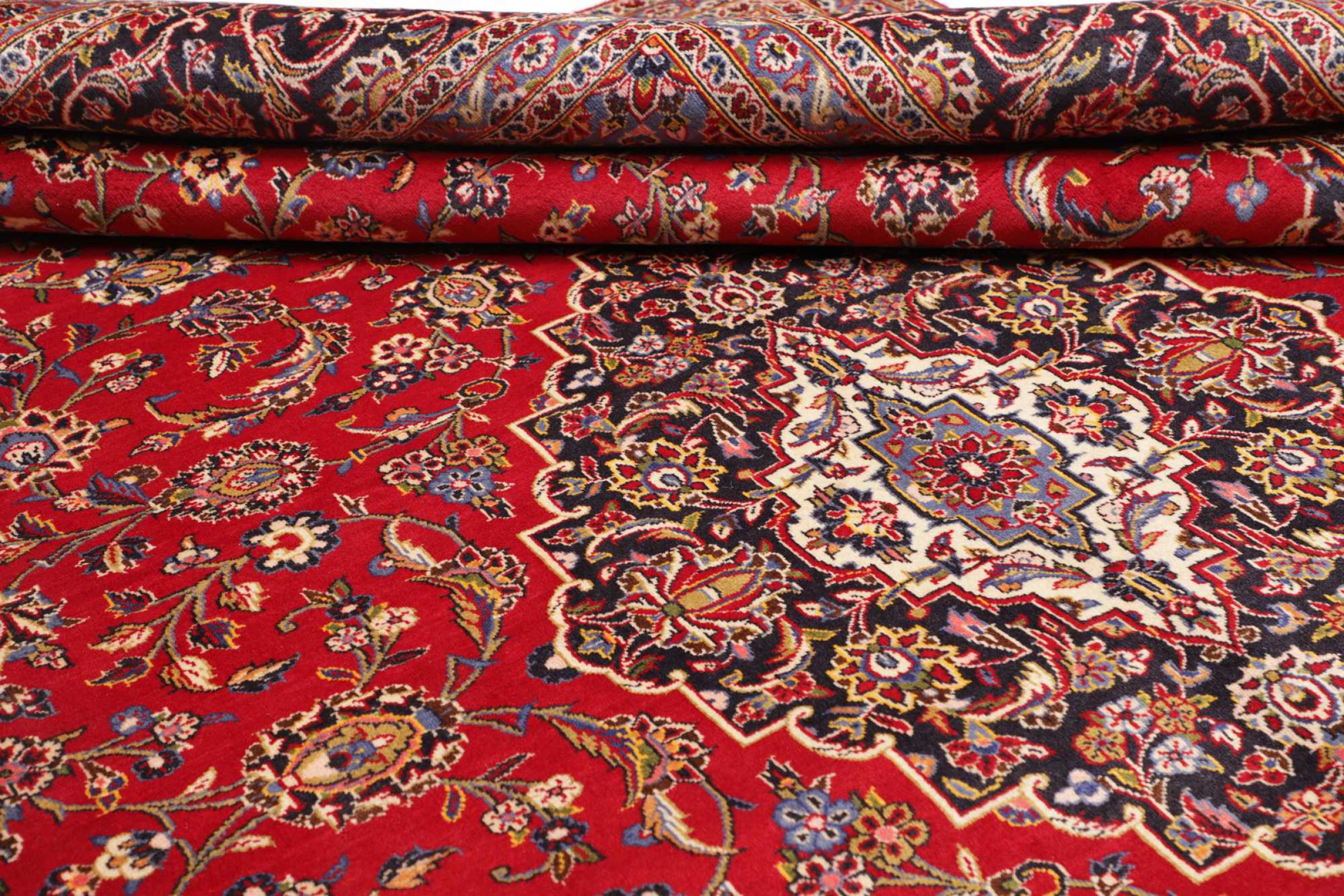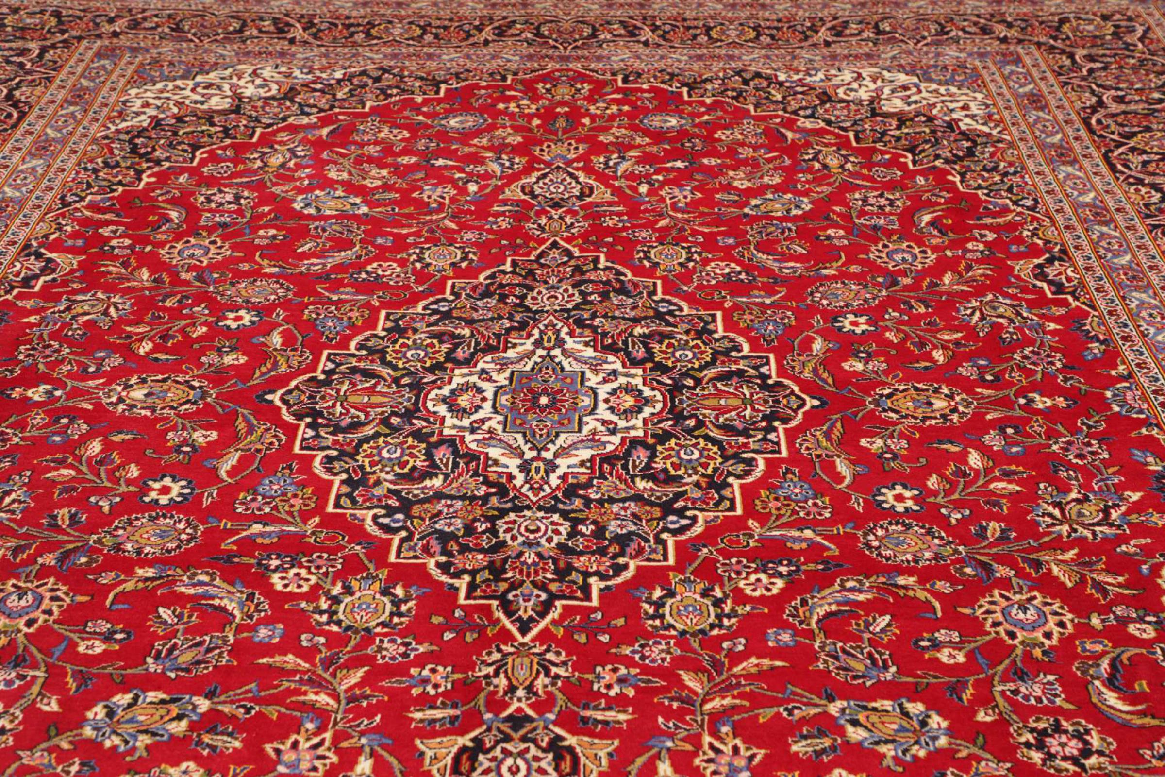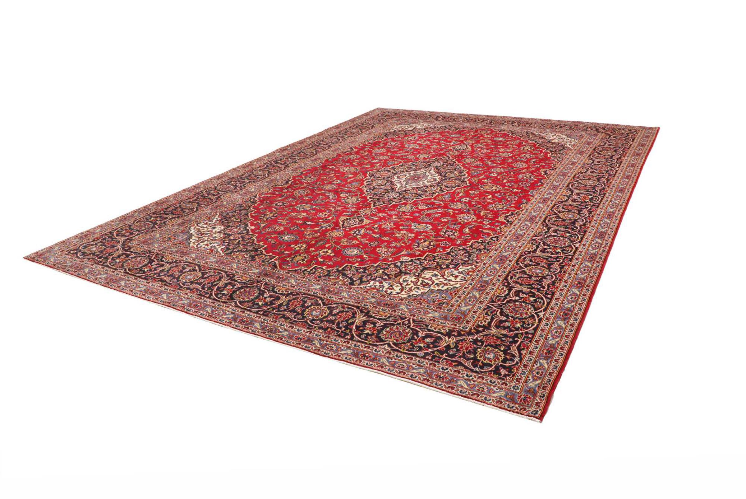 Ten dywan z Kashan (Keshan) ma bardzo tradycyjny i typowy perski wzór z pięknymi ornamentami. Dywany Kashan cieszą się dużą popularnością ze względu na ich wyjątkowo elegancki design. Dywany te pochodzą z Kaszanu, miasta leżącego na starożytnym Jedwabnym Szlaku. Ten dywan został ręcznie tkany z wysokiej jakości wełny owczej i będzie jedyną w swoim rodzaju atrakcją w Twoim domu.