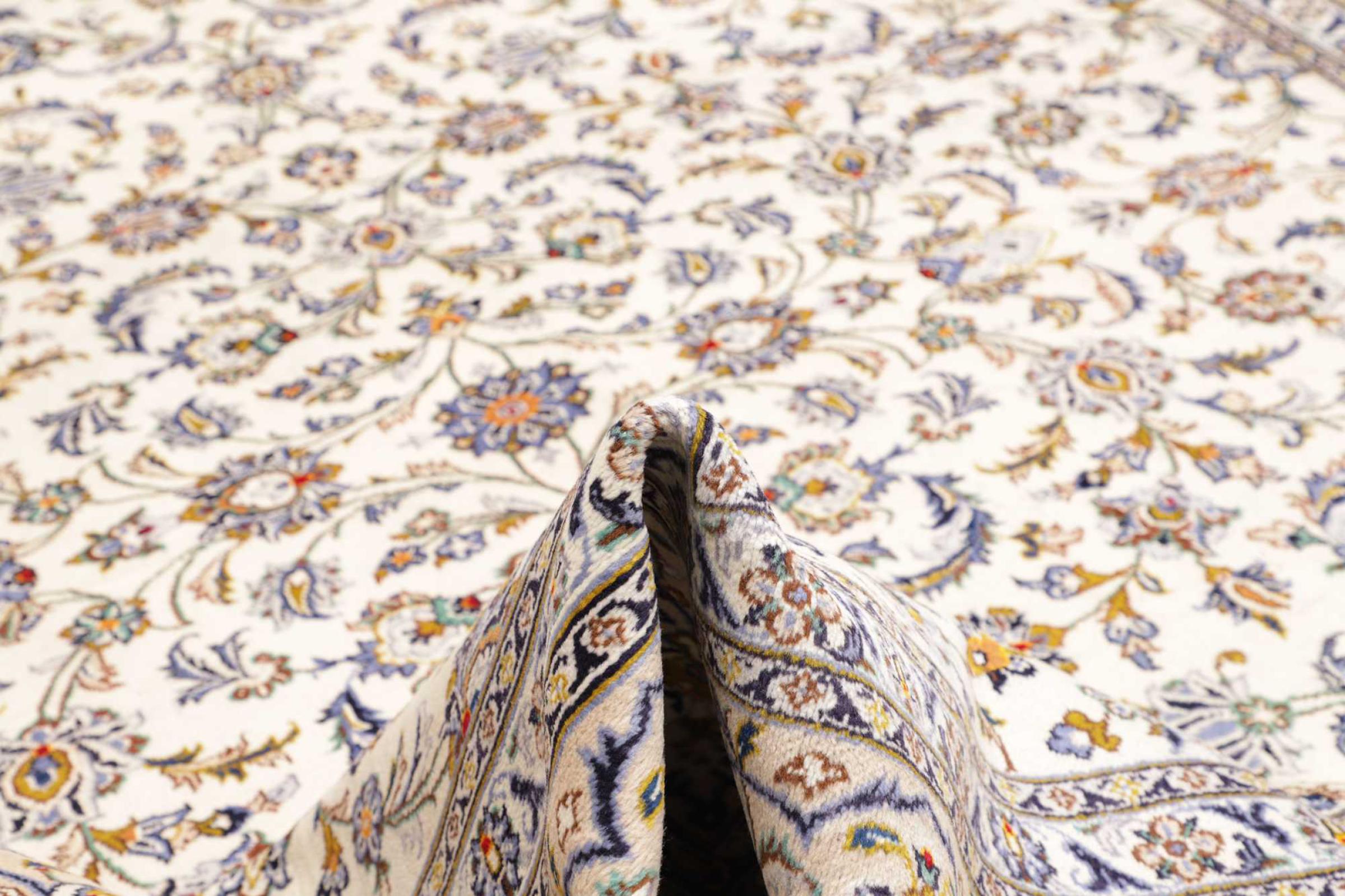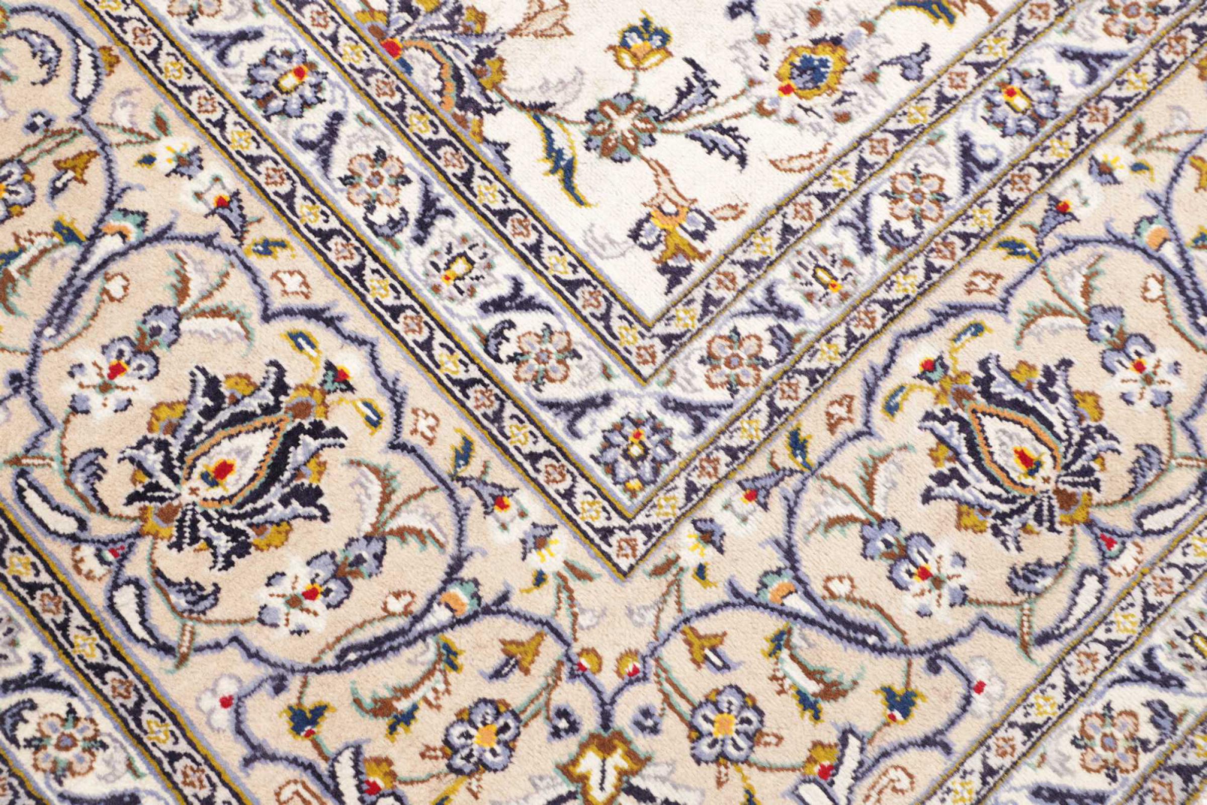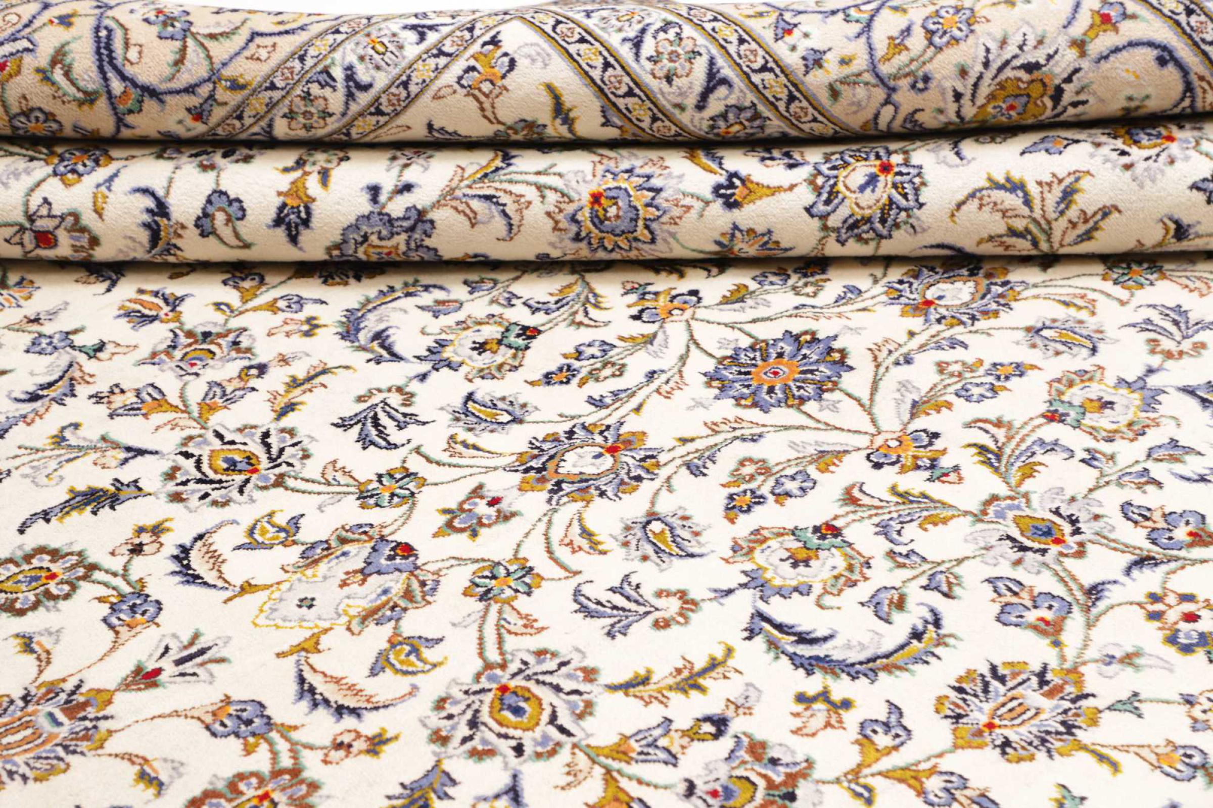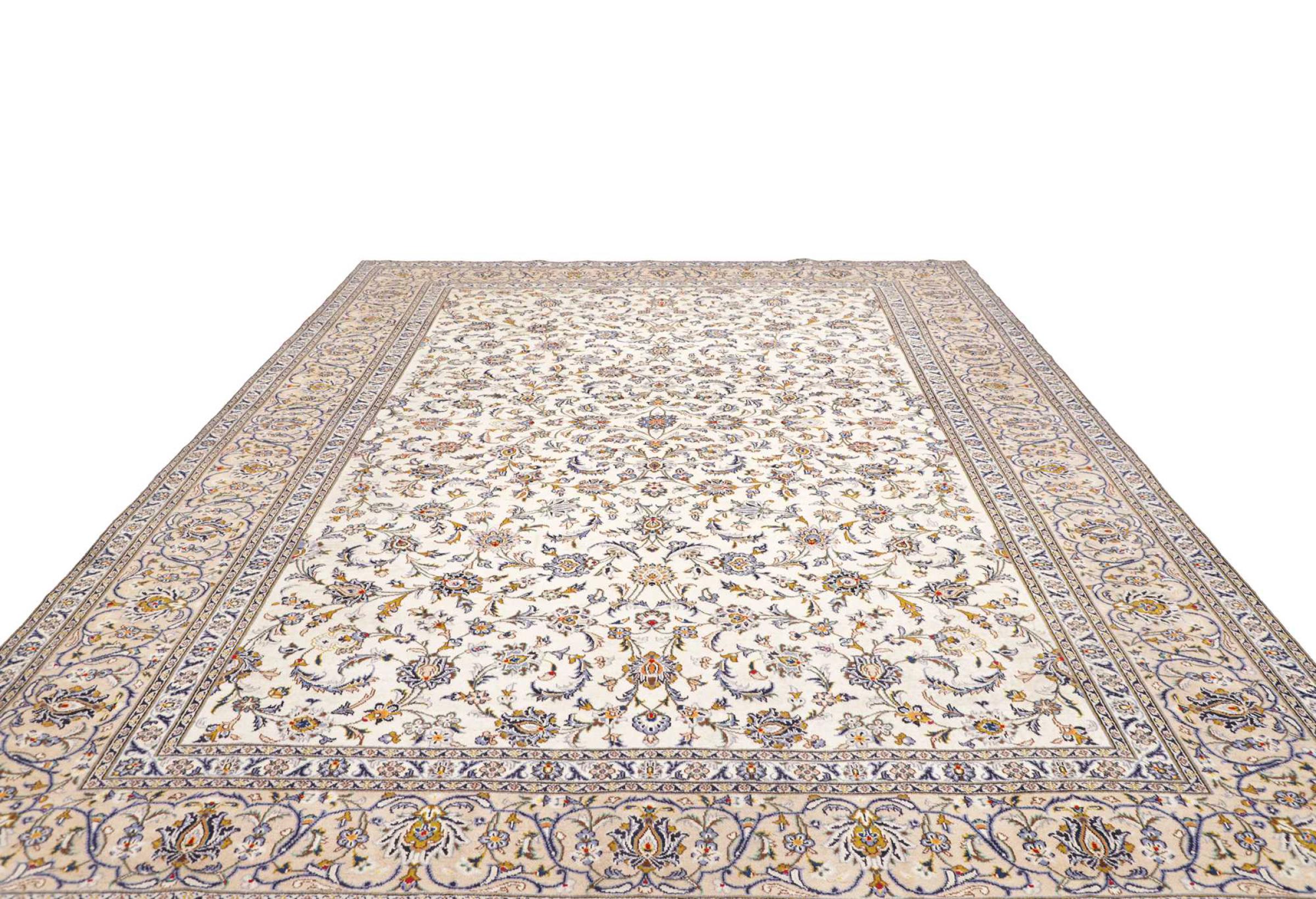 Ten dywan z Kashan (Keshan) ma bardzo tradycyjny i typowy perski wzór z pięknymi ornamentami. Dywany Kashan cieszą się dużą popularnością ze względu na ich wyjątkowo elegancki design. Dywany te pochodzą z Kaszanu, miasta leżącego na starożytnym Jedwabnym Szlaku. Ten dywan został ręcznie tkany z wysokiej jakości wełny owczej i będzie jedyną w swoim rodzaju atrakcją w Twoim domu.