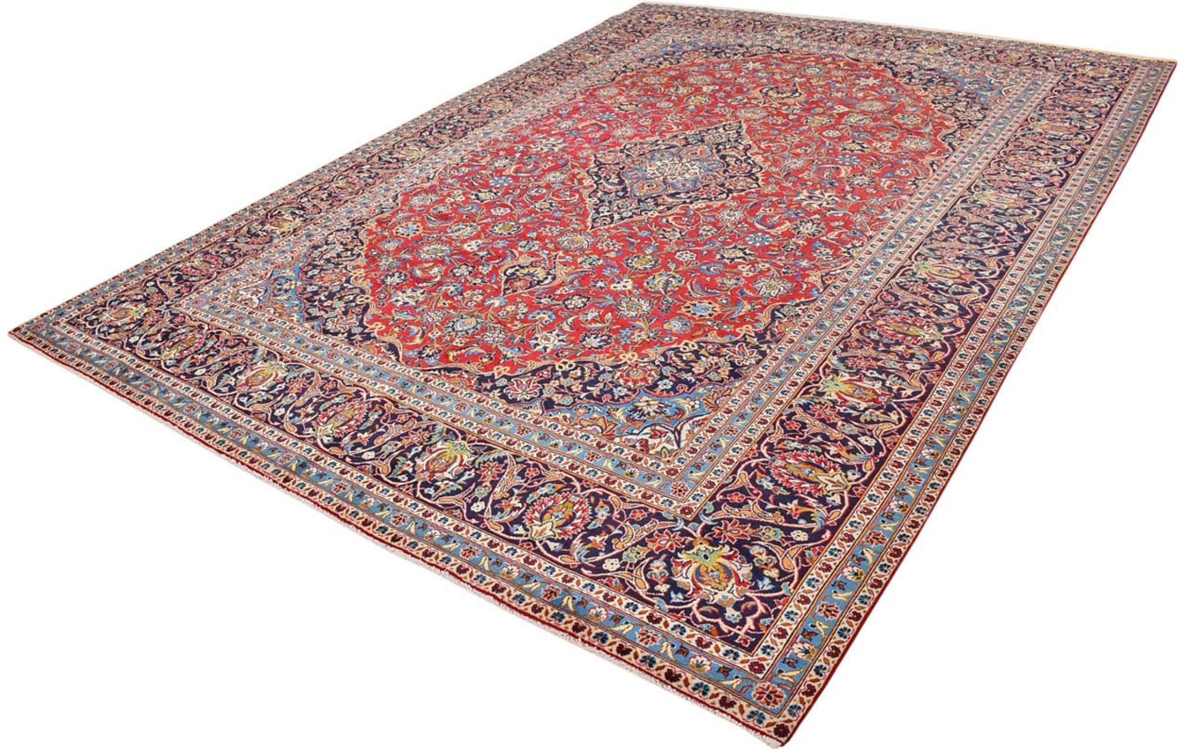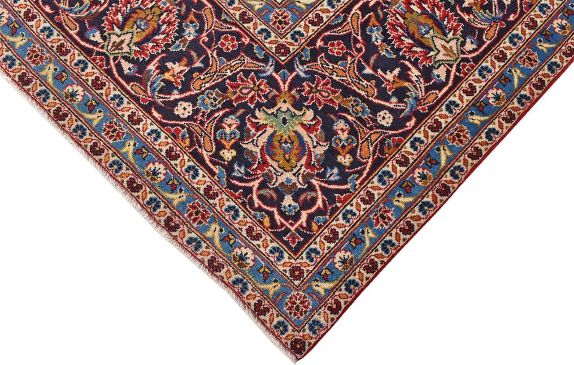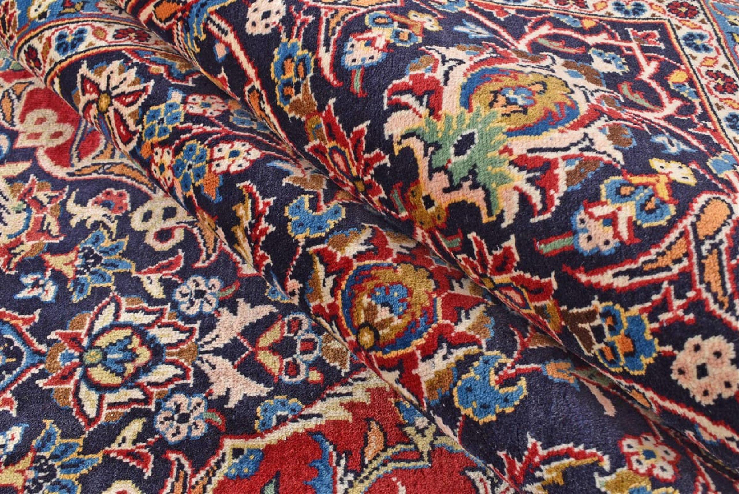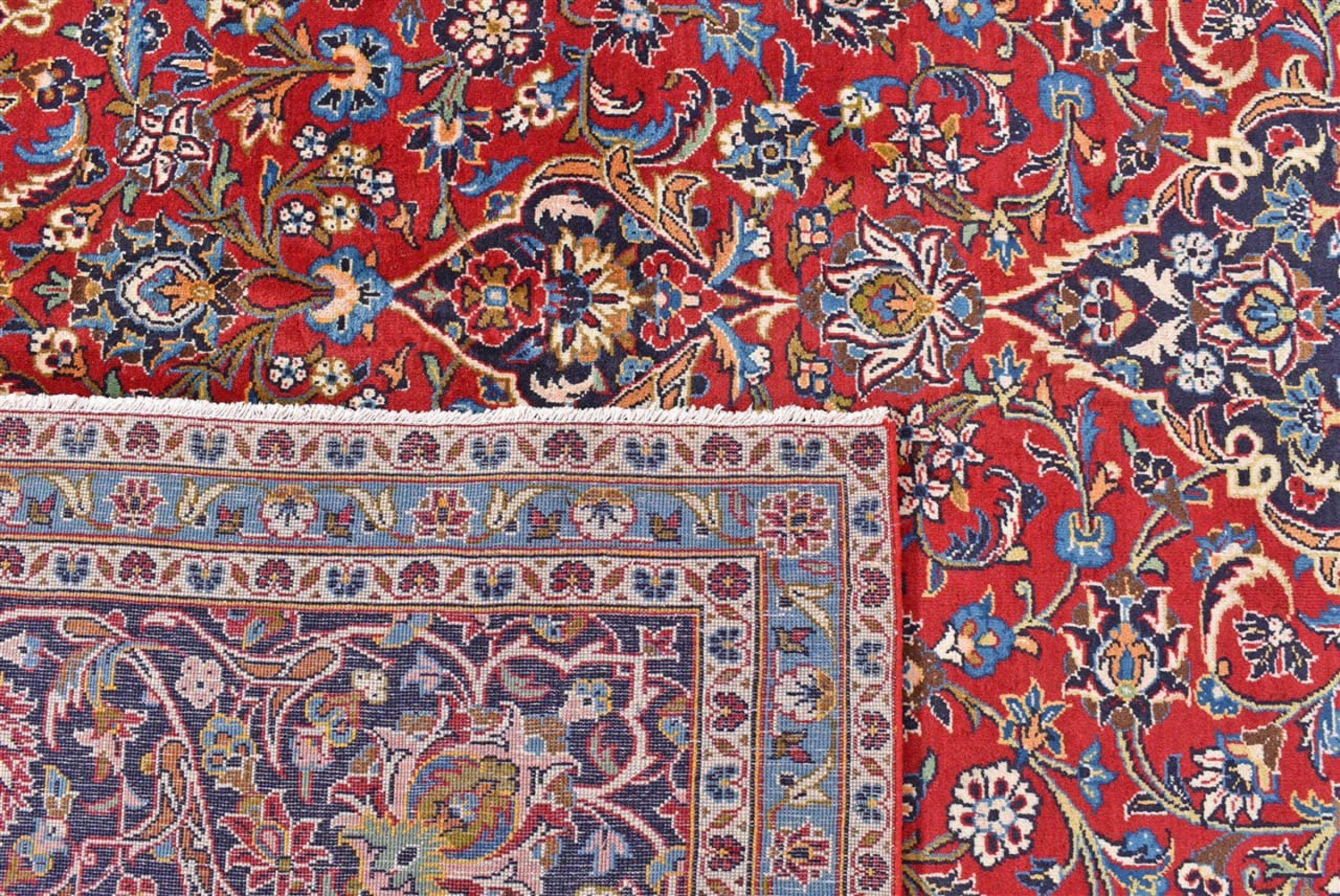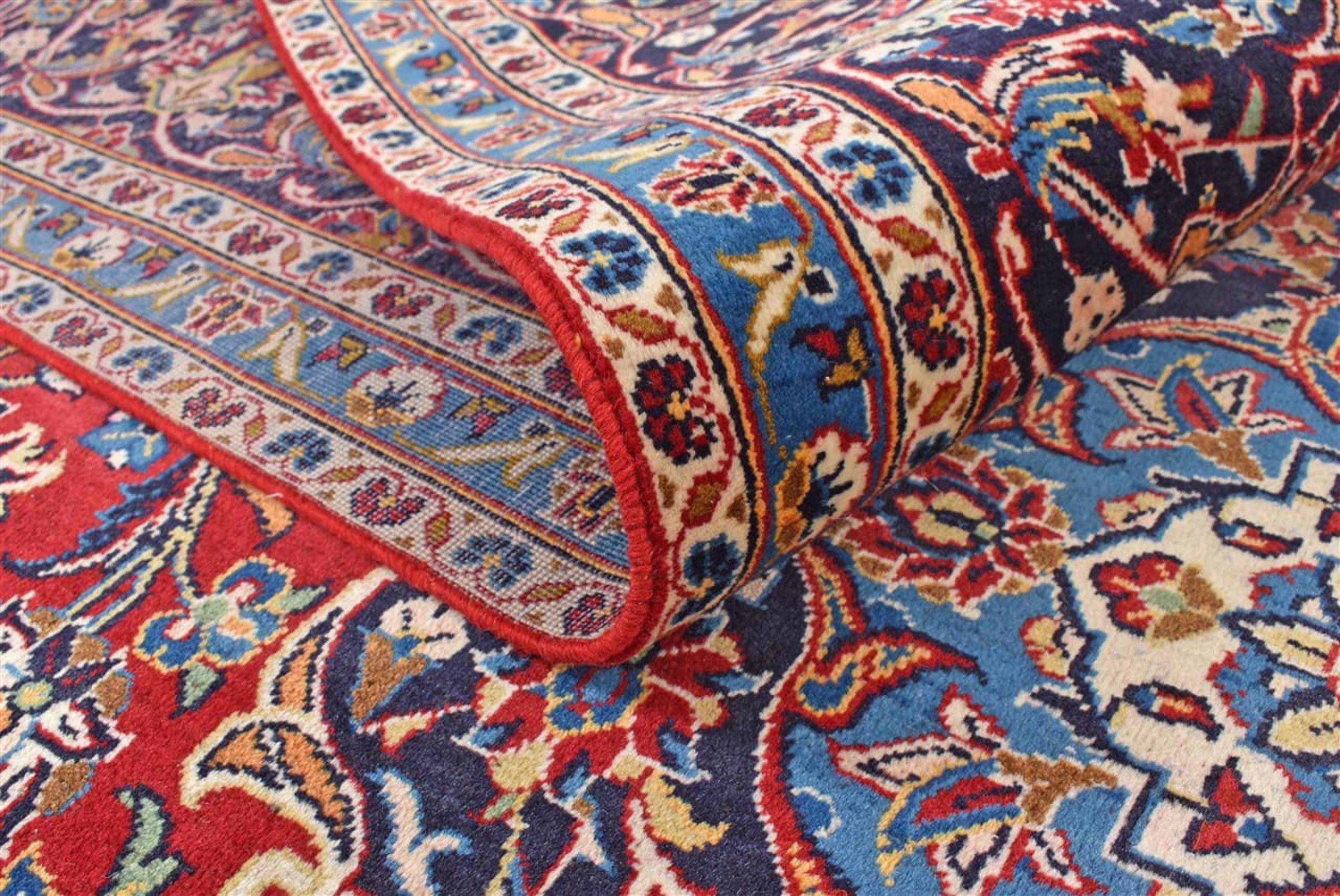Ten dywan z Kashan (Keshan) ma bardzo tradycyjny i typowy perski wzór z pięknymi ornamentami. Dywany Kashan cieszą się dużą popularnością ze względu na ich wyjątkowo elegancki design. Dywany te pochodzą z Kaszanu, miasta leżącego na starożytnym Jedwabnym Szlaku. Ten dywan został ręcznie tkany z wysokiej jakości wełny owczej i będzie jedyną w swoim rodzaju atrakcją w Twoim domu.