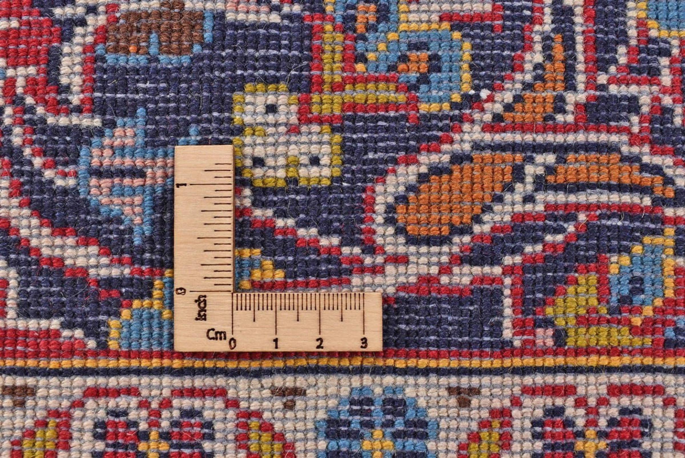 Dywan ten wykonany jest z ręcznie formowanej wełny owczej najwyższej jakości. Zwłaszcza w Iranie (była Persja), Afganistanie i Pakistanie wełna jest nadal ręcznie skręcana, zanim rozpocznie się faktyczne wiązanie dywanu. Wełna sprawdziła się jako naturalny i niezwykle wytrzymały materiał na przestrzeni wieków. Ma m.in. właściwości antybrudzące i termoizolacyjne. Jednocześnie wełna jest nieporównywalnie miękka i ma naturalny połysk.