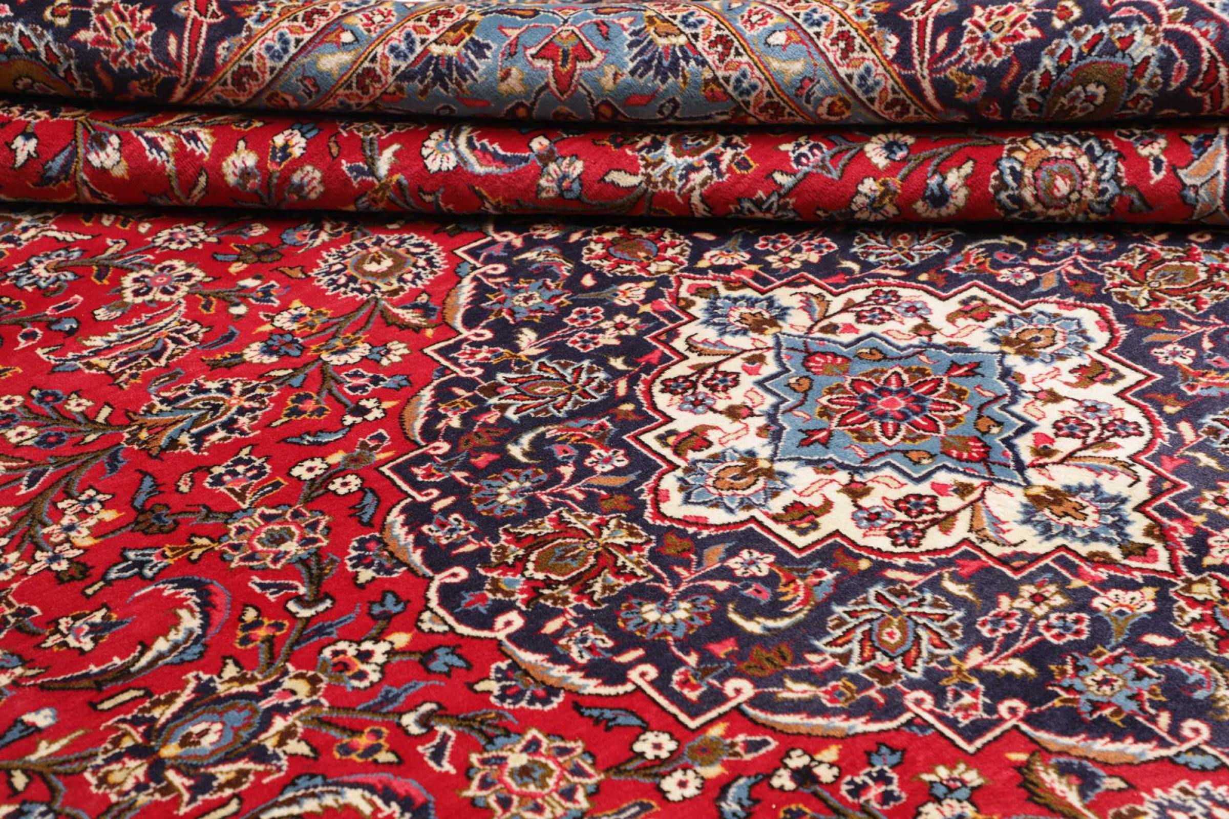 Ten dywan z Kashan (Keshan) ma bardzo tradycyjny i typowy perski wzór z pięknymi ornamentami. Dywany Kashan cieszą się dużą popularnością ze względu na ich wyjątkowo elegancki design. Dywany te pochodzą z Kaszanu, miasta leżącego na starożytnym Jedwabnym Szlaku. Ten dywan został ręcznie tkany z wysokiej jakości wełny owczej i będzie jedyną w swoim rodzaju atrakcją w Twoim domu.