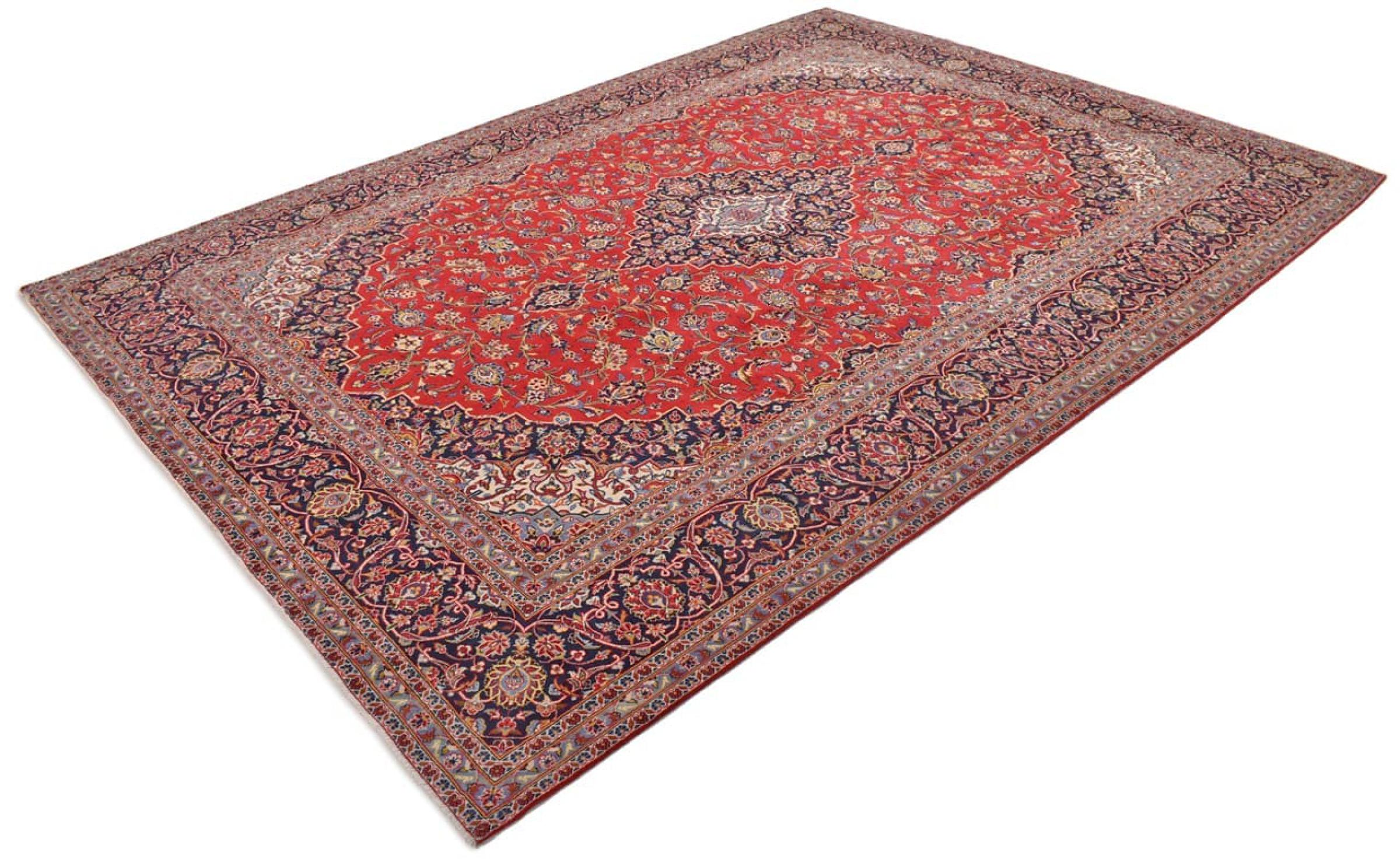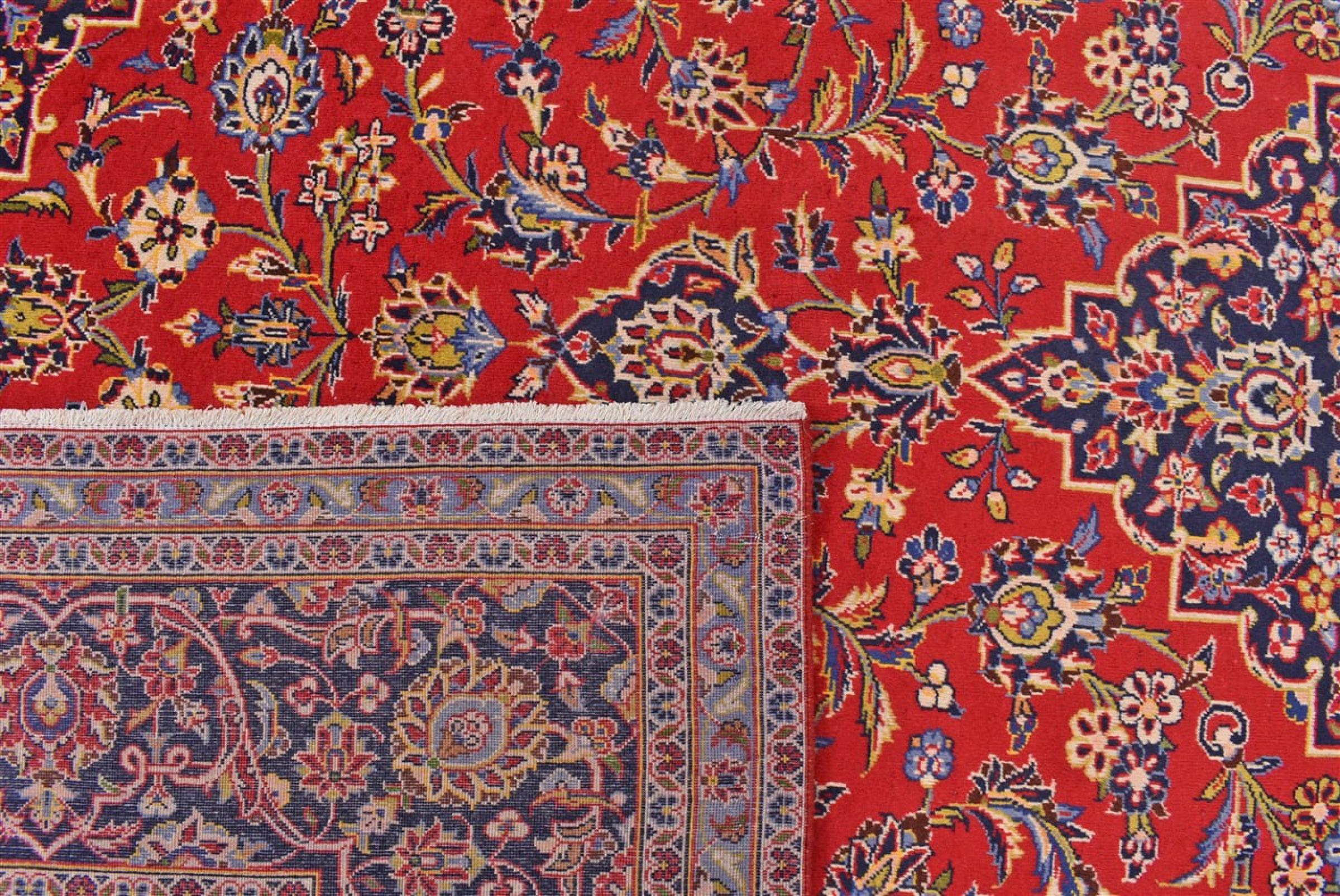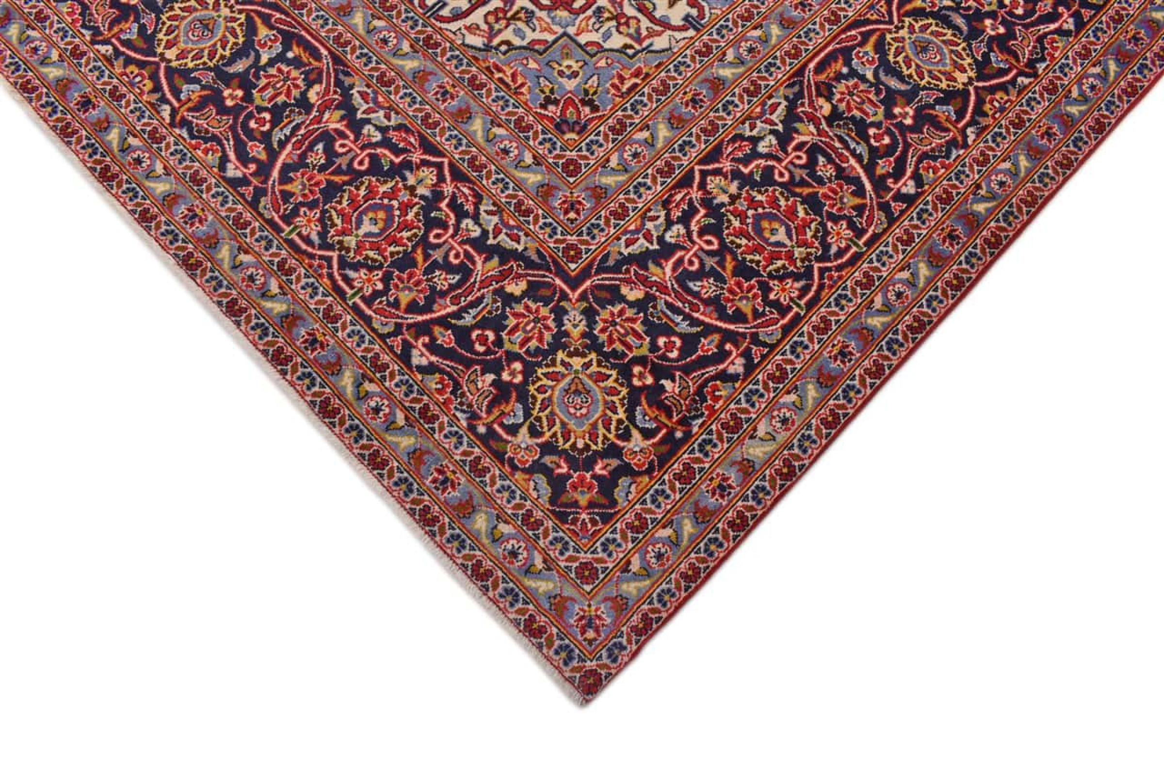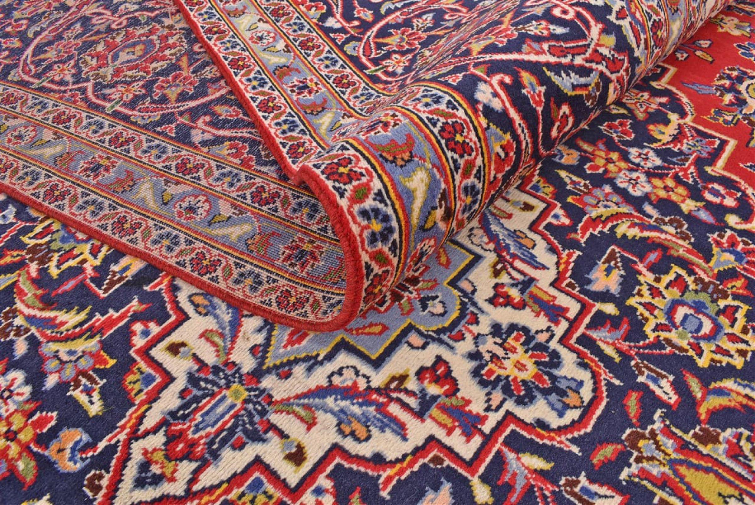 Ten dywan z Kashan (Keshan) ma bardzo tradycyjny i typowy perski wzór z pięknymi ornamentami. Dywany Kashan cieszą się dużą popularnością ze względu na ich wyjątkowo elegancki design. Dywany te pochodzą z Kaszanu, miasta leżącego na starożytnym Jedwabnym Szlaku. Ten dywan został ręcznie tkany z wysokiej jakości wełny owczej i będzie jedyną w swoim rodzaju atrakcją w Twoim domu.