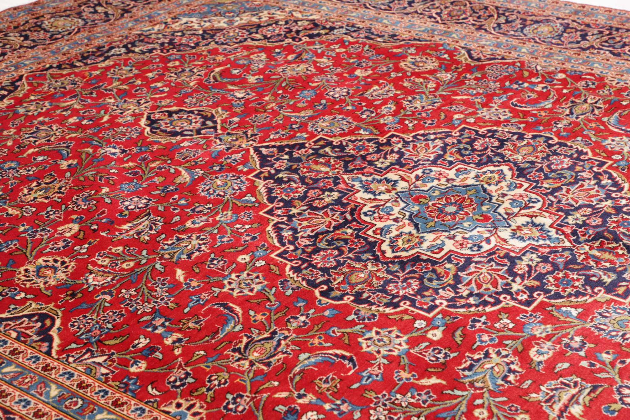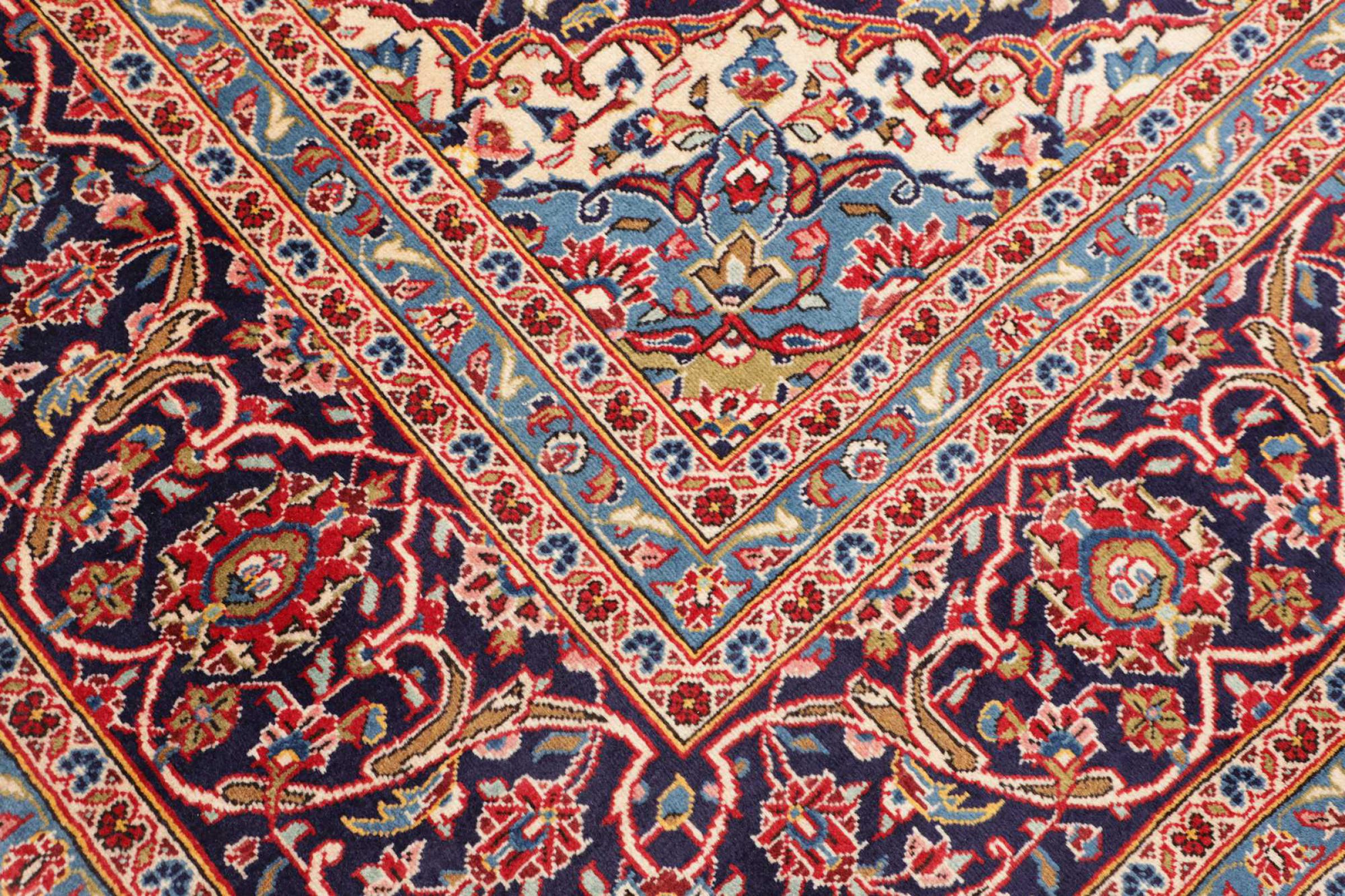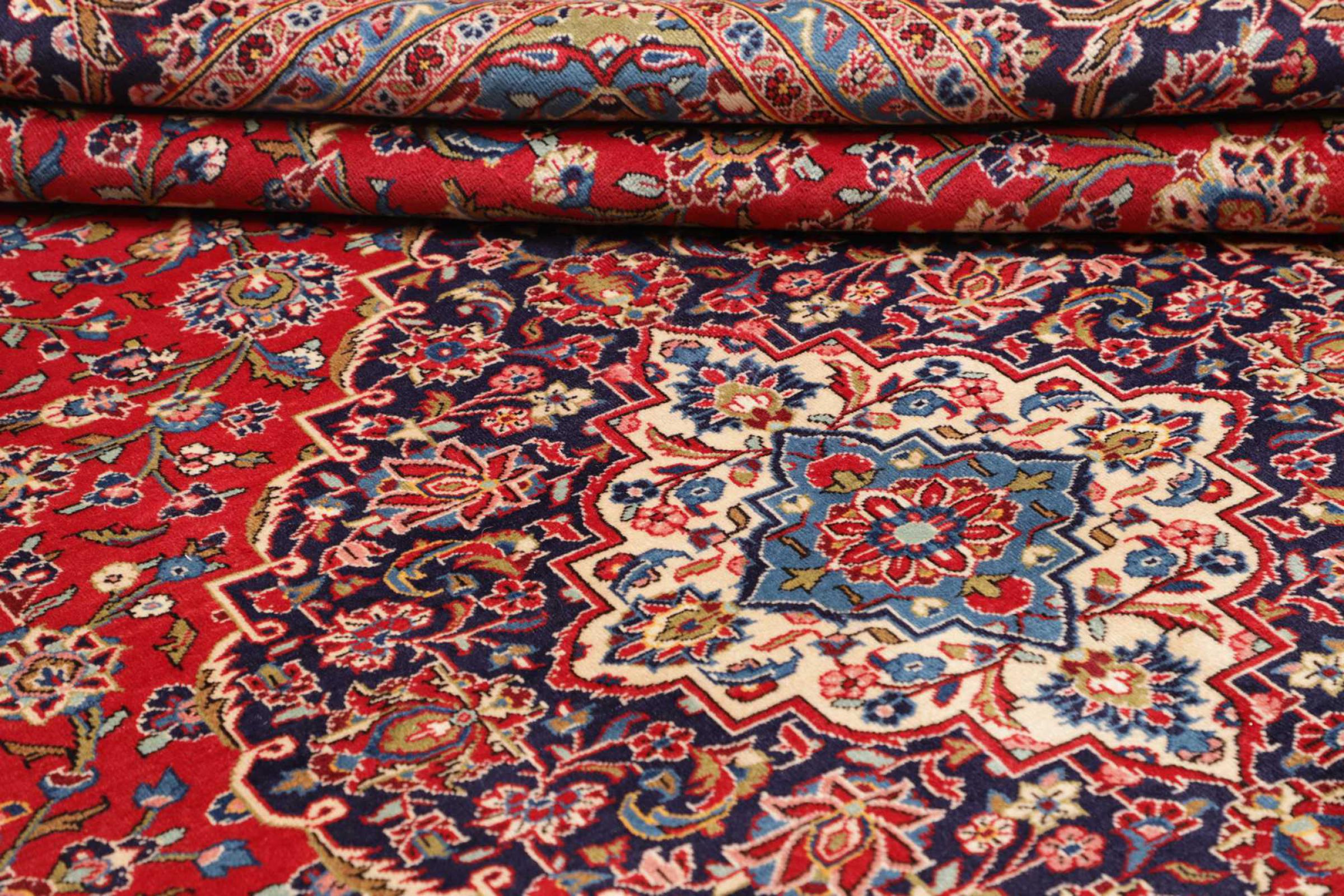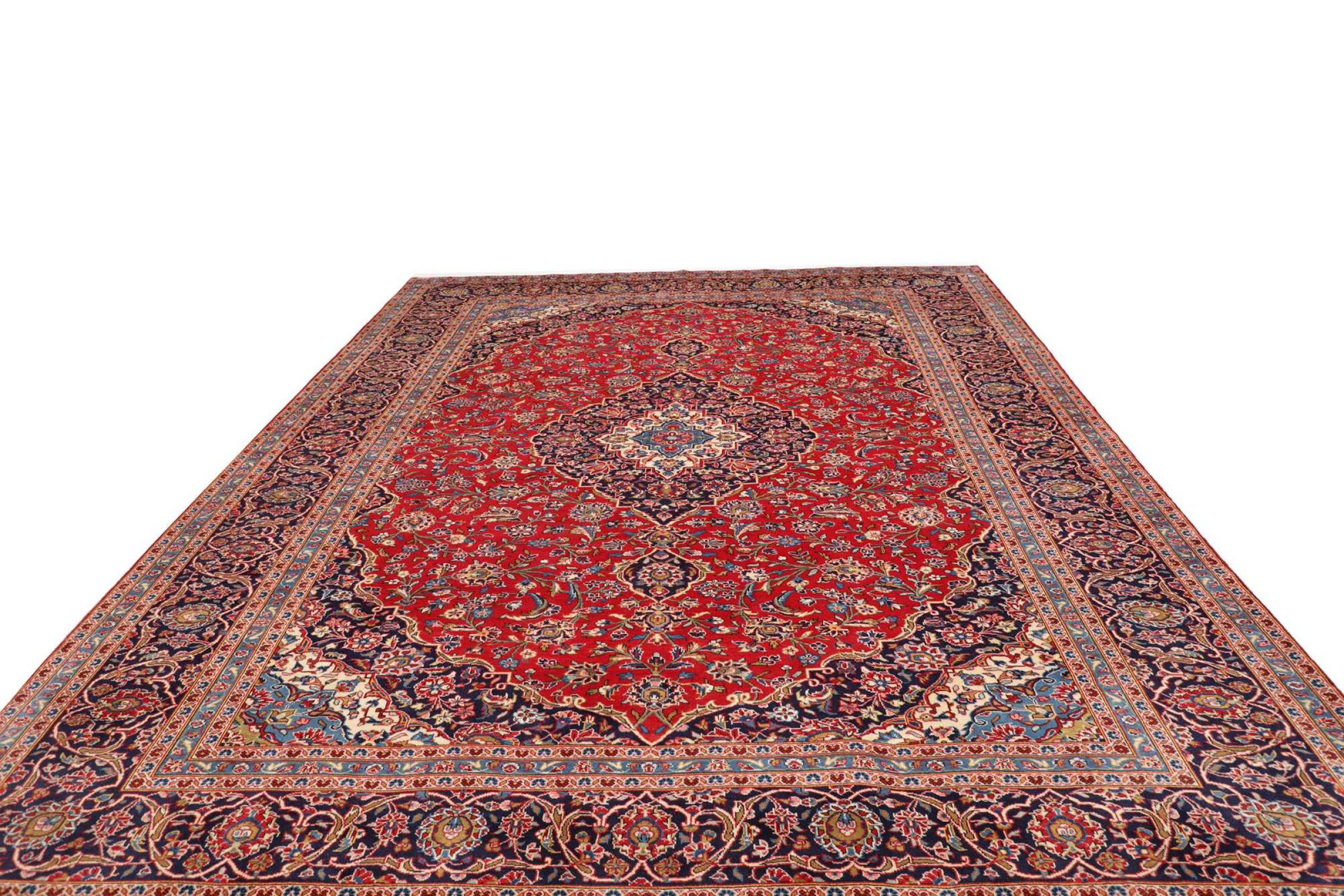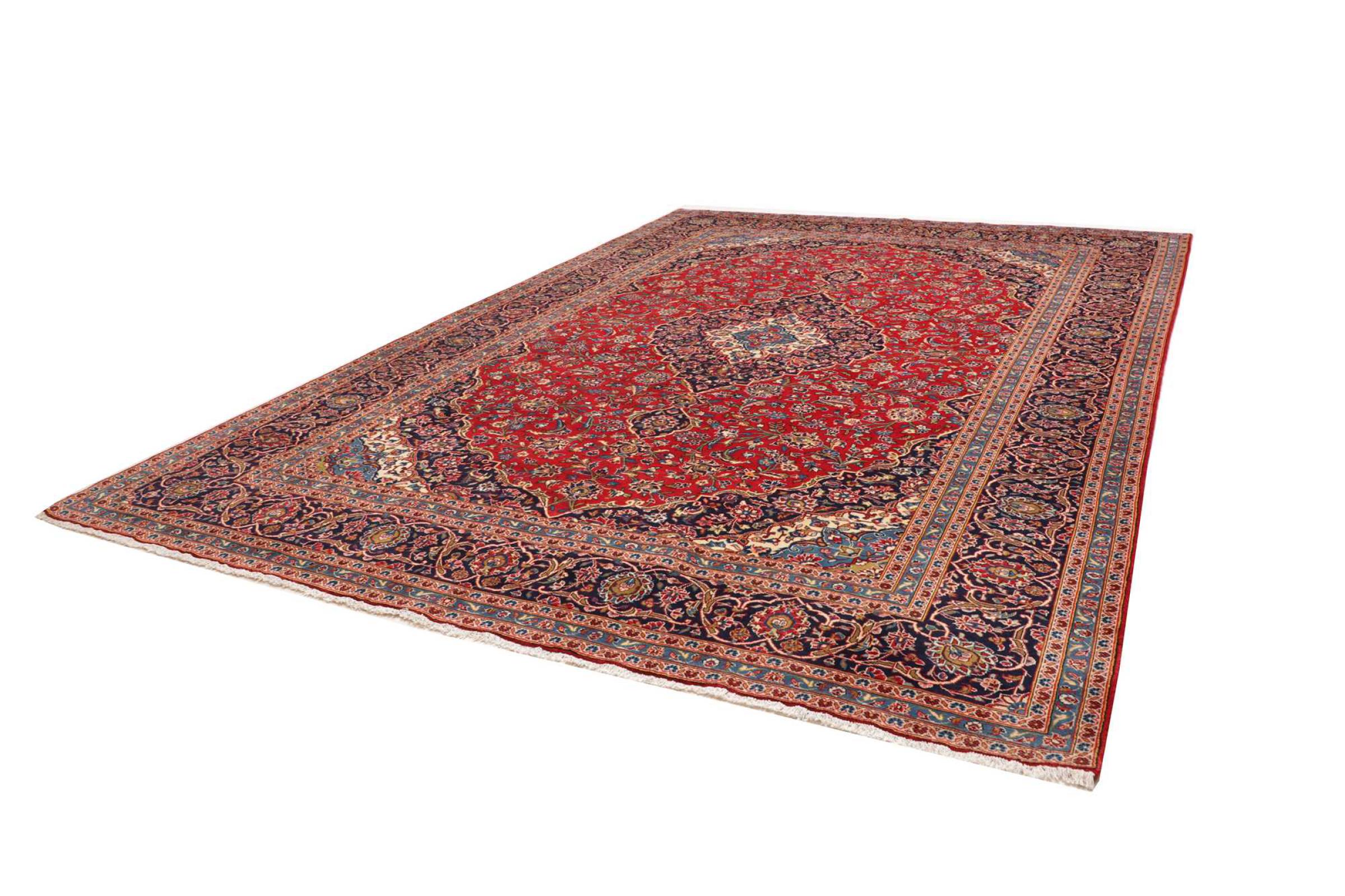 Ten dywan z Kashan (Keshan) ma bardzo tradycyjny i typowy perski wzór z pięknymi ornamentami. Dywany Kashan cieszą się dużą popularnością ze względu na ich wyjątkowo elegancki design. Dywany te pochodzą z Kaszanu, miasta leżącego na starożytnym Jedwabnym Szlaku. Ten dywan został ręcznie tkany z wysokiej jakości wełny owczej i będzie jedyną w swoim rodzaju atrakcją w Twoim domu.