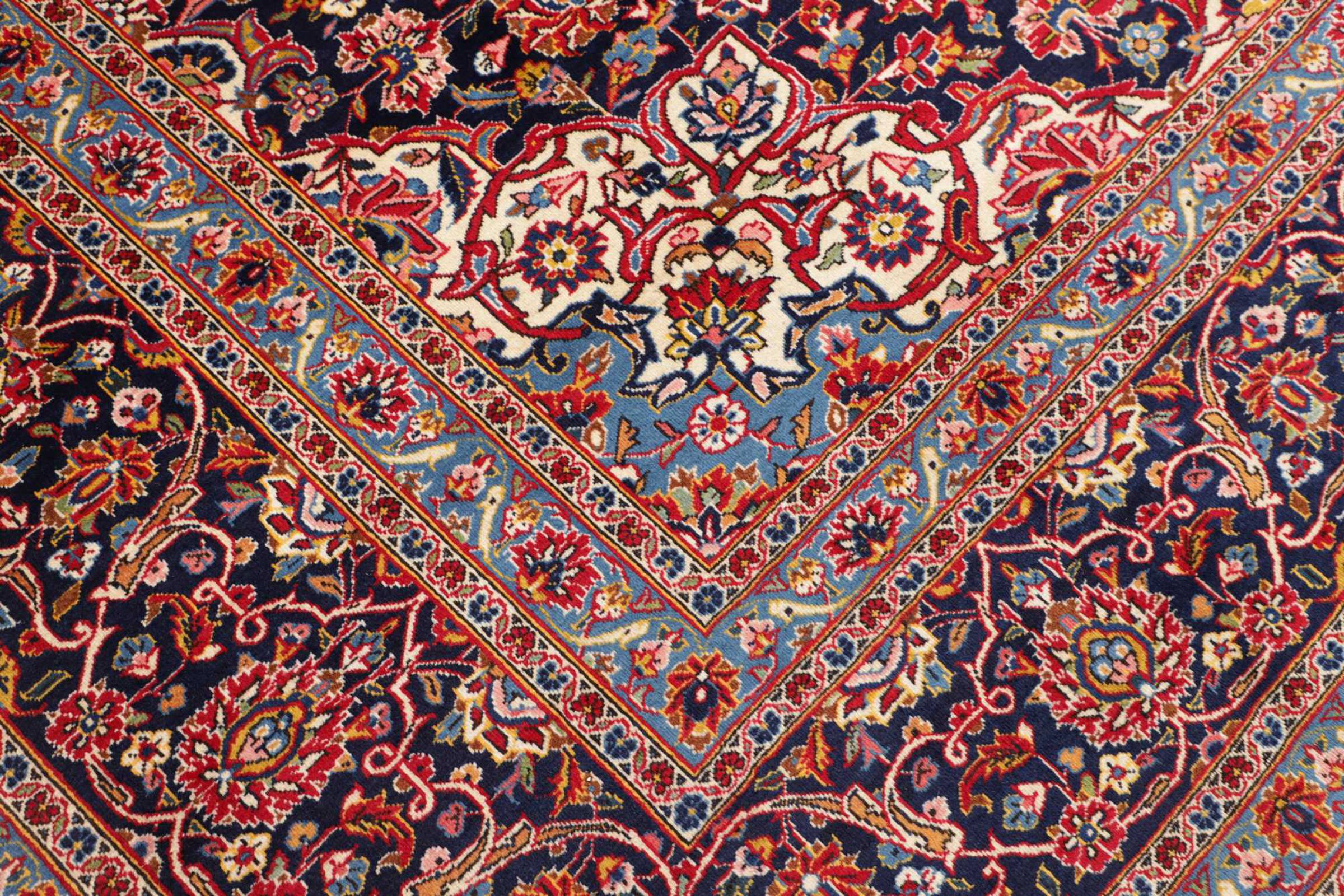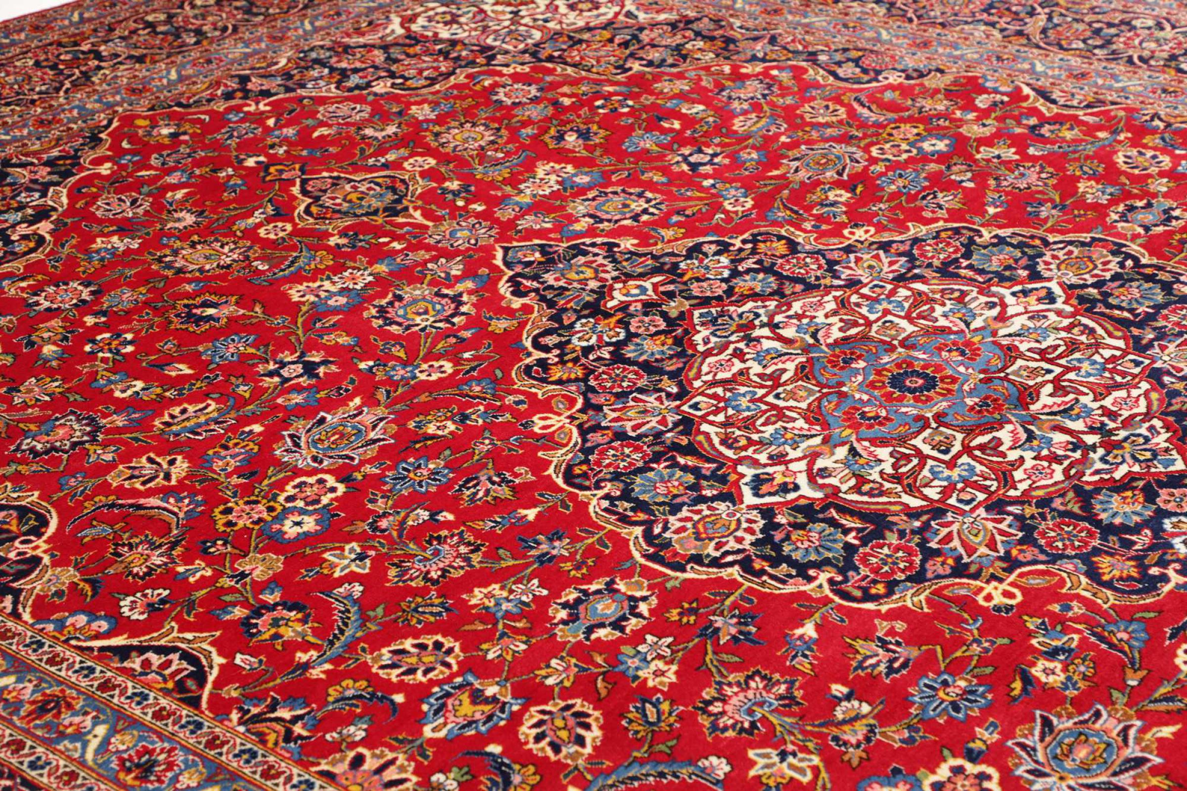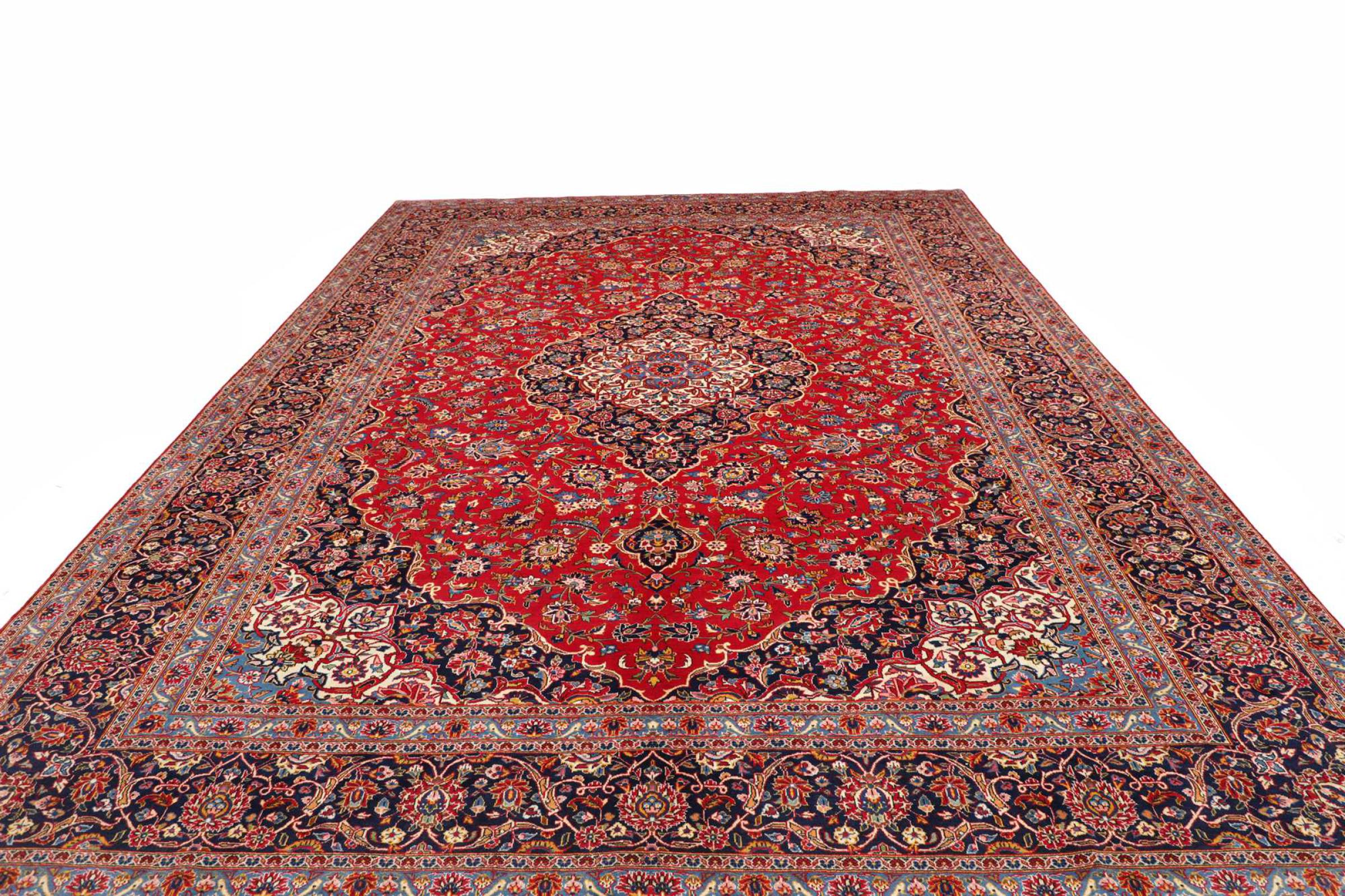 Ten dywan z Kashan (Keshan) ma bardzo tradycyjny i typowy perski wzór z pięknymi ornamentami. Dywany Kashan cieszą się dużą popularnością ze względu na ich wyjątkowo elegancki design. Dywany te pochodzą z Kaszanu, miasta leżącego na starożytnym Jedwabnym Szlaku. Ten dywan został ręcznie tkany z wysokiej jakości wełny owczej i będzie jedyną w swoim rodzaju atrakcją w Twoim domu.