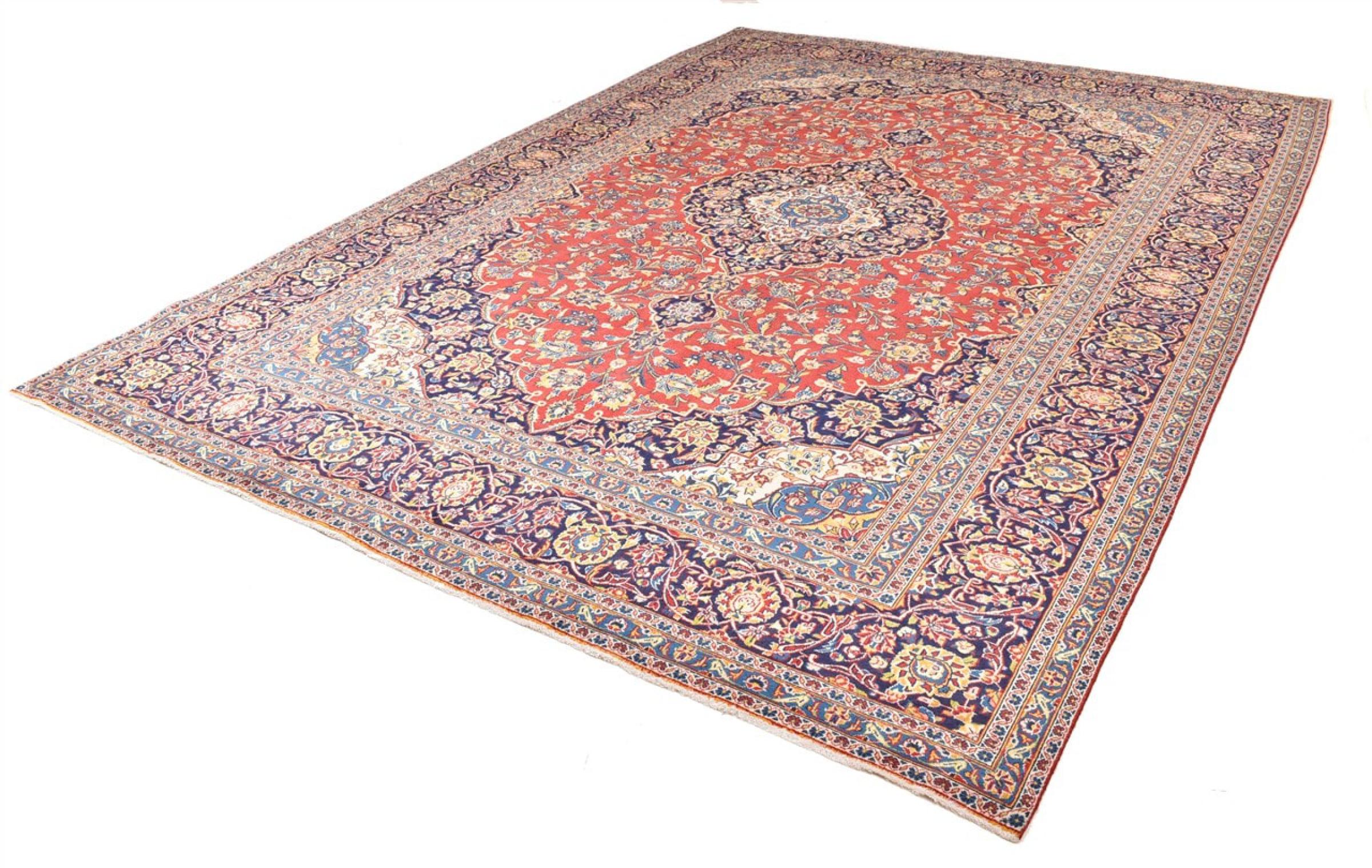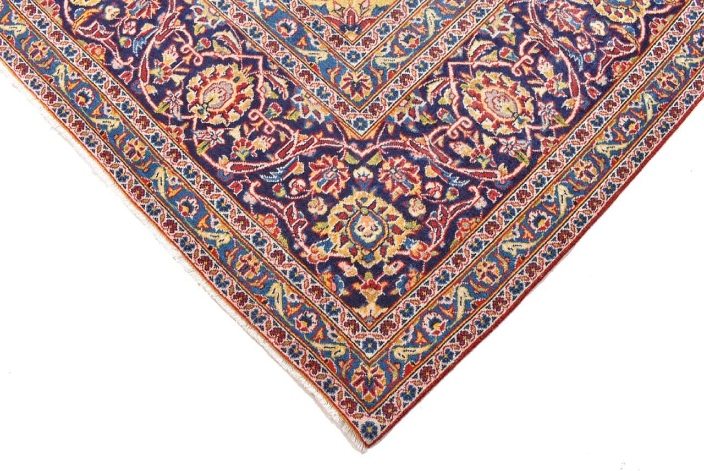 Ten dywan z Kashan (Keshan) ma bardzo tradycyjny i typowy perski wzór z pięknymi ornamentami. Dywany Kashan cieszą się dużą popularnością ze względu na ich wyjątkowo elegancki design. Dywany te pochodzą z Kaszanu, miasta leżącego na starożytnym Jedwabnym Szlaku. Ten dywan został ręcznie tkany z wysokiej jakości wełny owczej i będzie jedyną w swoim rodzaju atrakcją w Twoim domu.