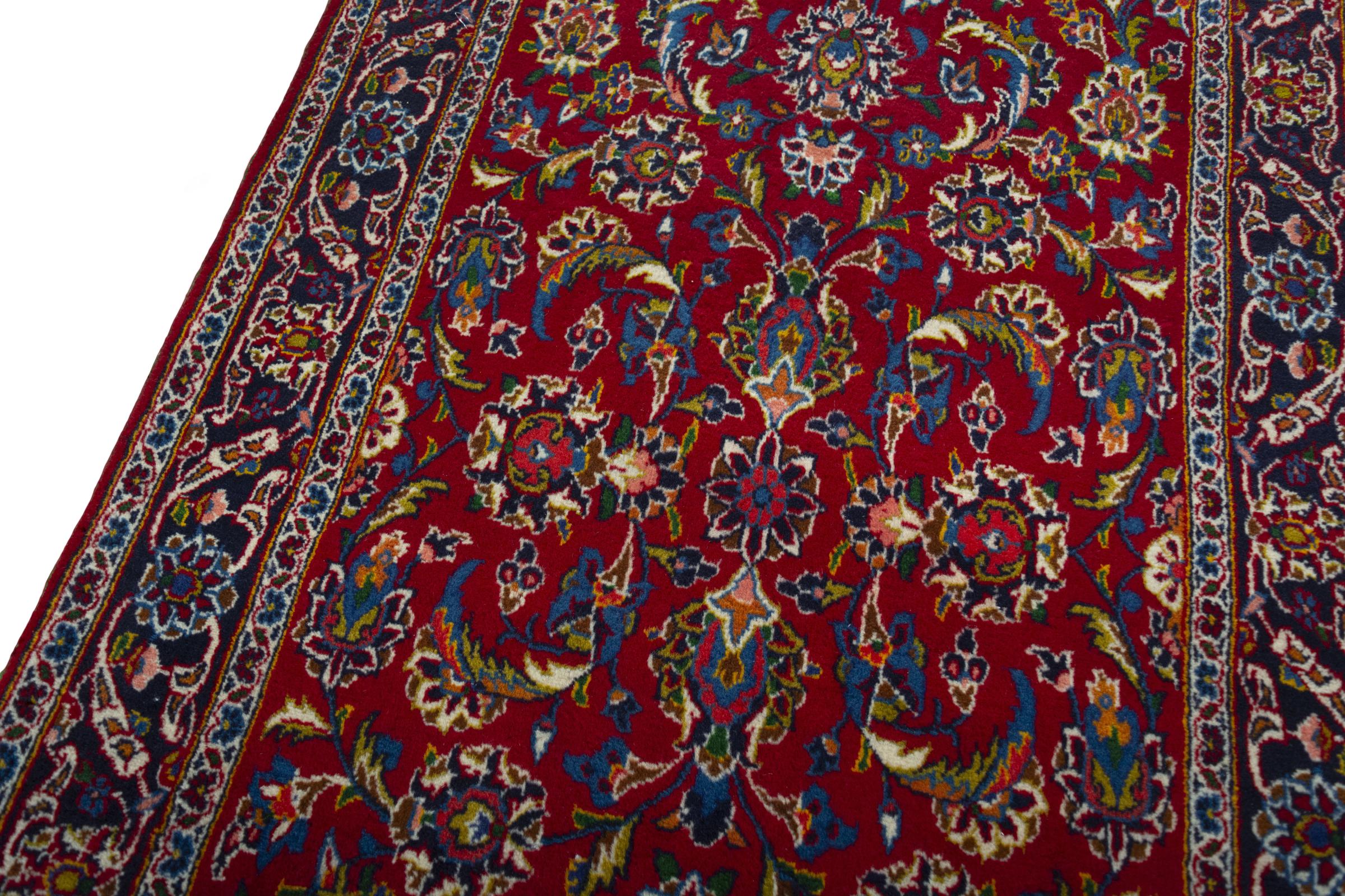Ten dywan z Kashan (Keshan) ma bardzo tradycyjny i typowy perski wzór z pięknymi ornamentami. Dywany Kashan cieszą się dużą popularnością ze względu na ich wyjątkowo elegancki design. Dywany te pochodzą z Kaszanu, miasta leżącego na starożytnym Jedwabnym Szlaku. Ten dywan został ręcznie tkany z wysokiej jakości wełny owczej i będzie jedyną w swoim rodzaju atrakcją w Twoim domu.