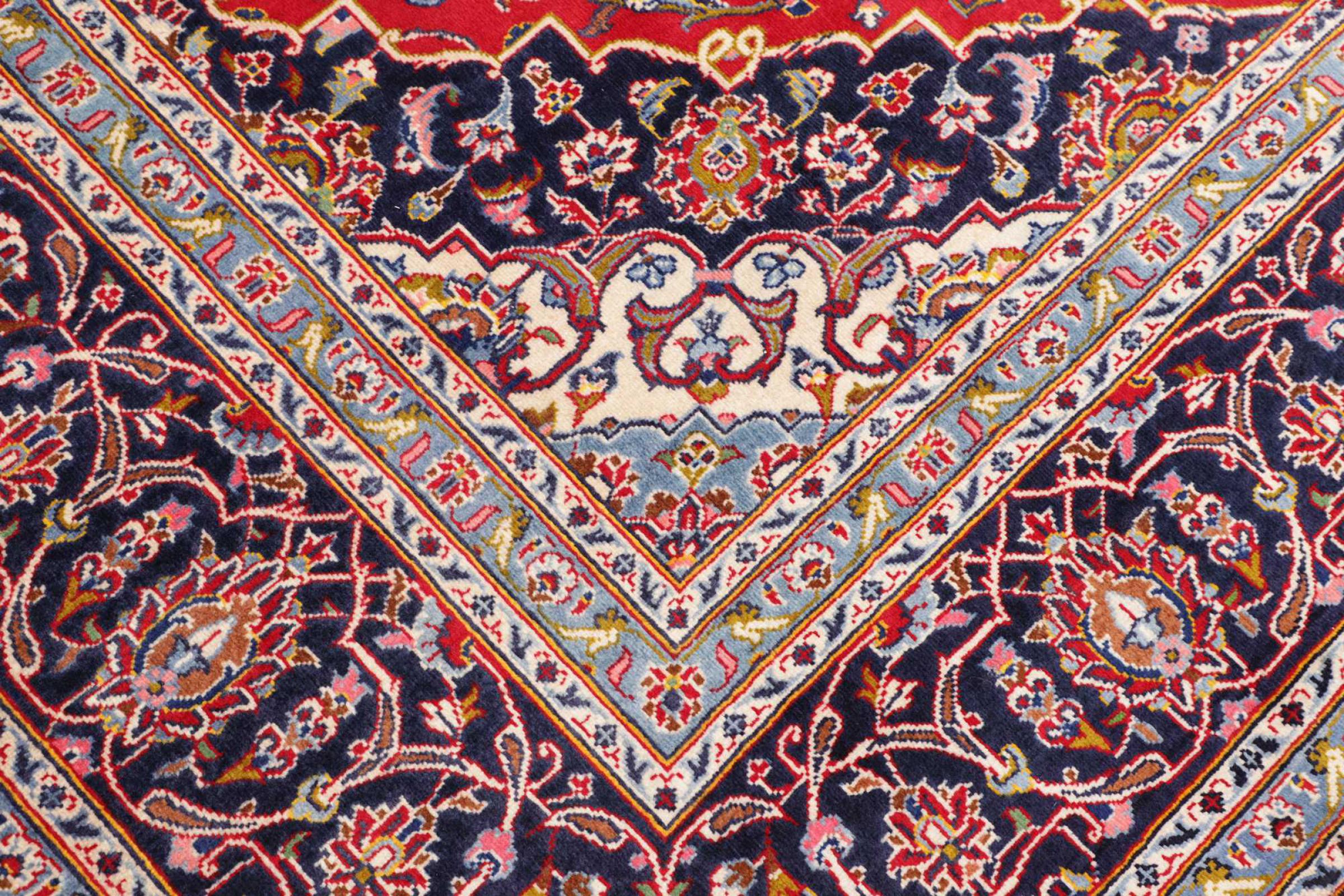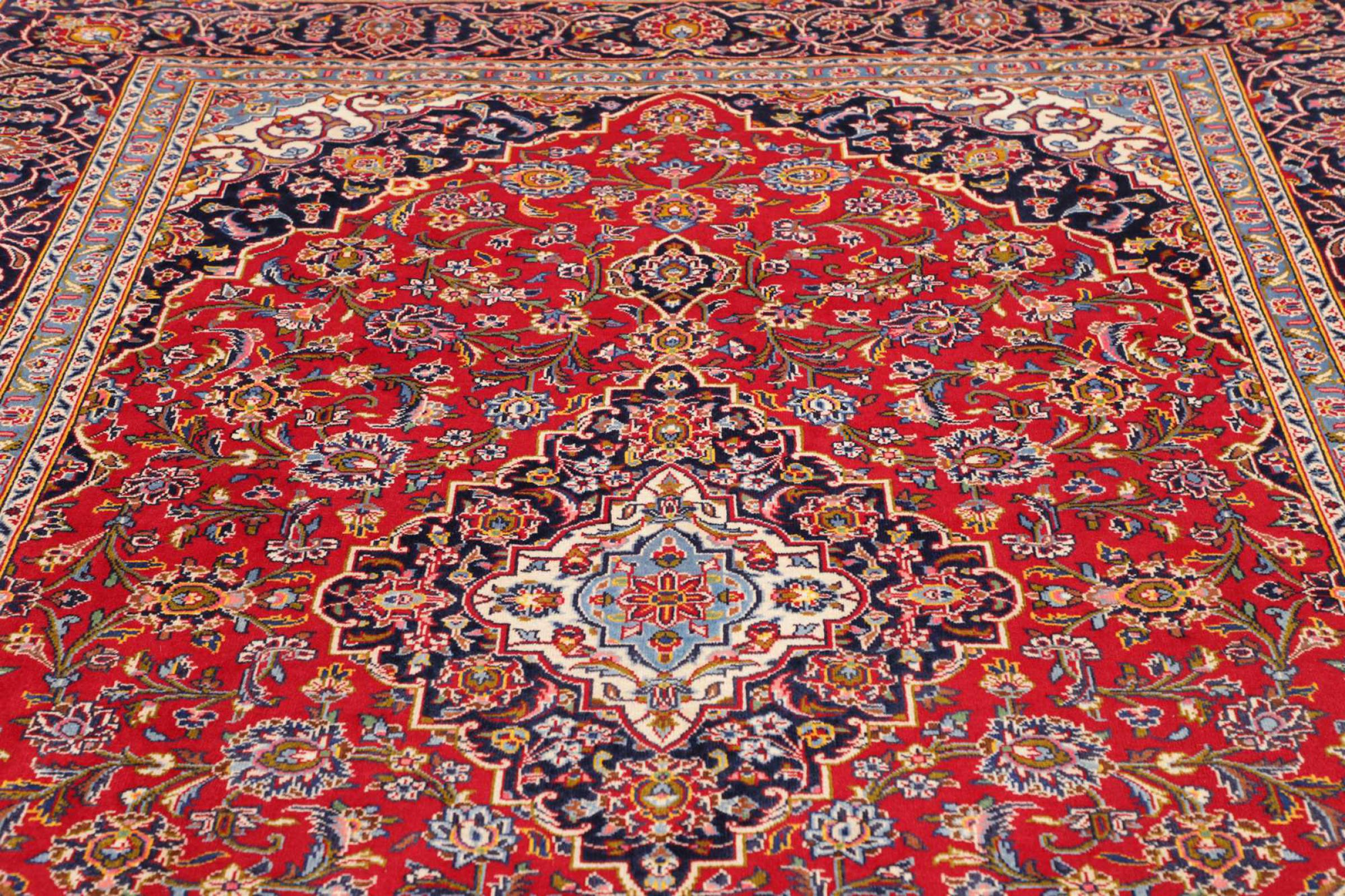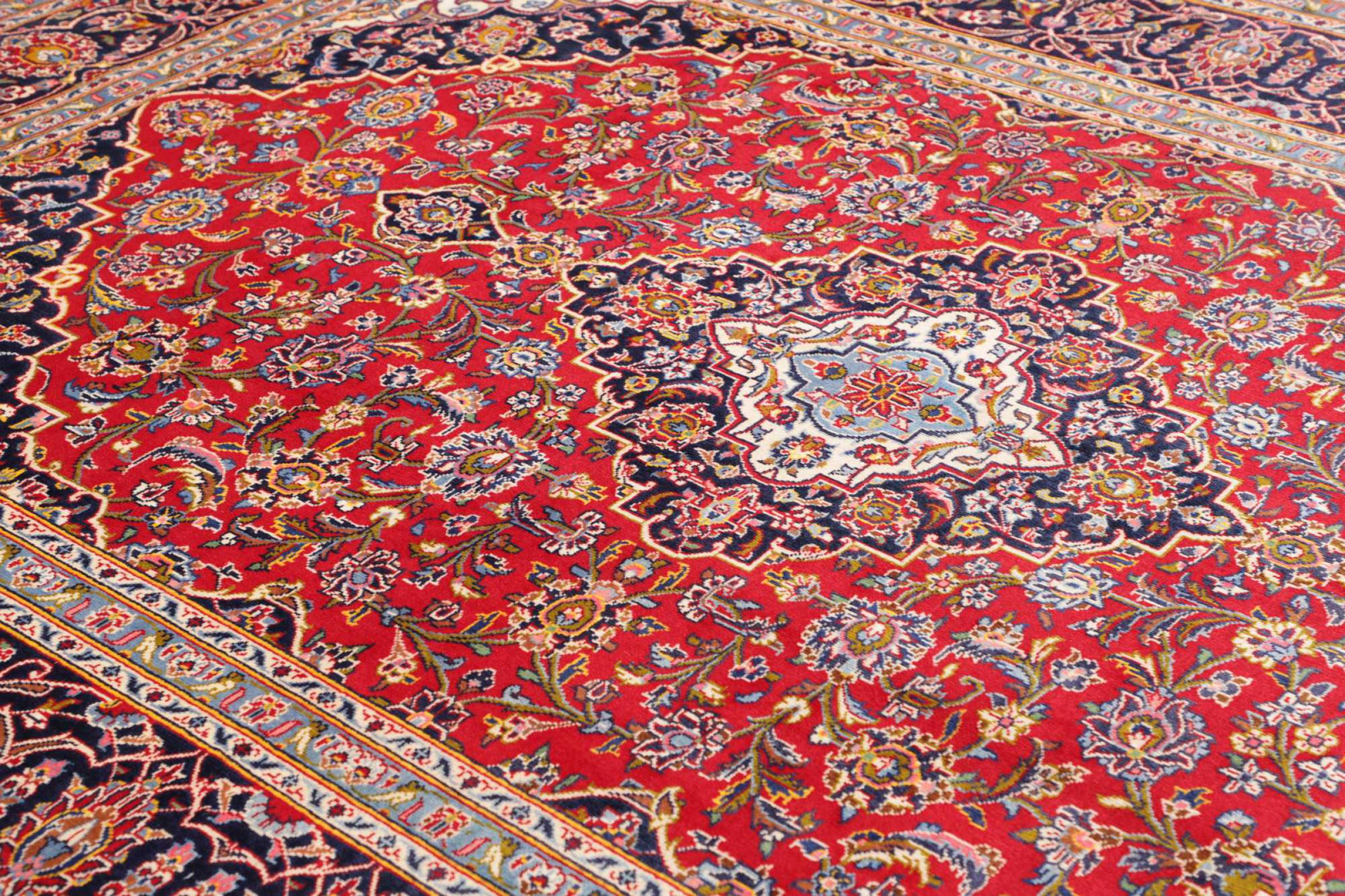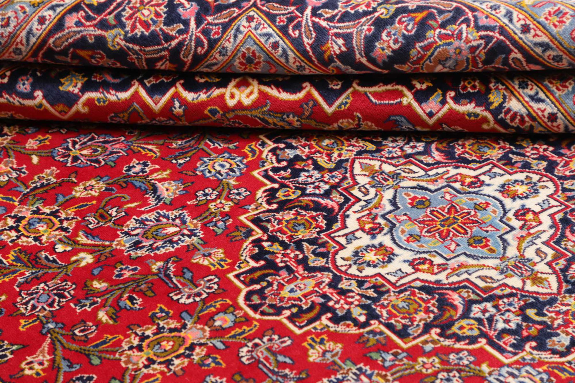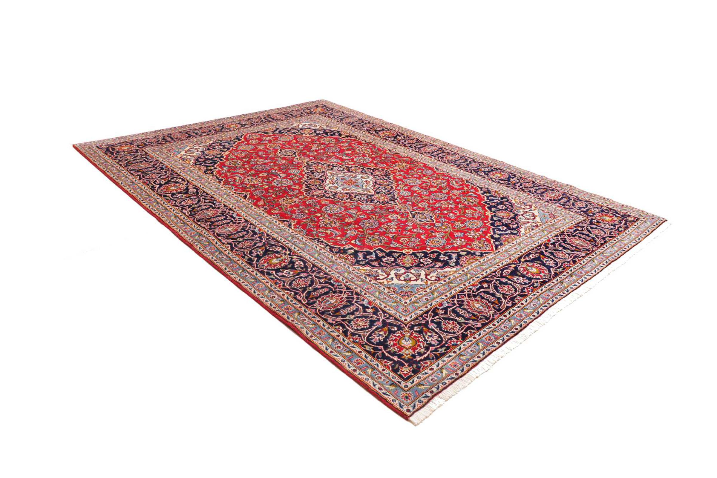 Ten dywan z Kashan (Keshan) ma bardzo tradycyjny i typowy perski wzór z pięknymi ornamentami. Dywany Kashan cieszą się dużą popularnością ze względu na ich wyjątkowo elegancki design. Dywany te pochodzą z Kaszanu, miasta leżącego na starożytnym Jedwabnym Szlaku. Ten dywan został ręcznie tkany z wysokiej jakości wełny owczej i będzie jedyną w swoim rodzaju atrakcją w Twoim domu.