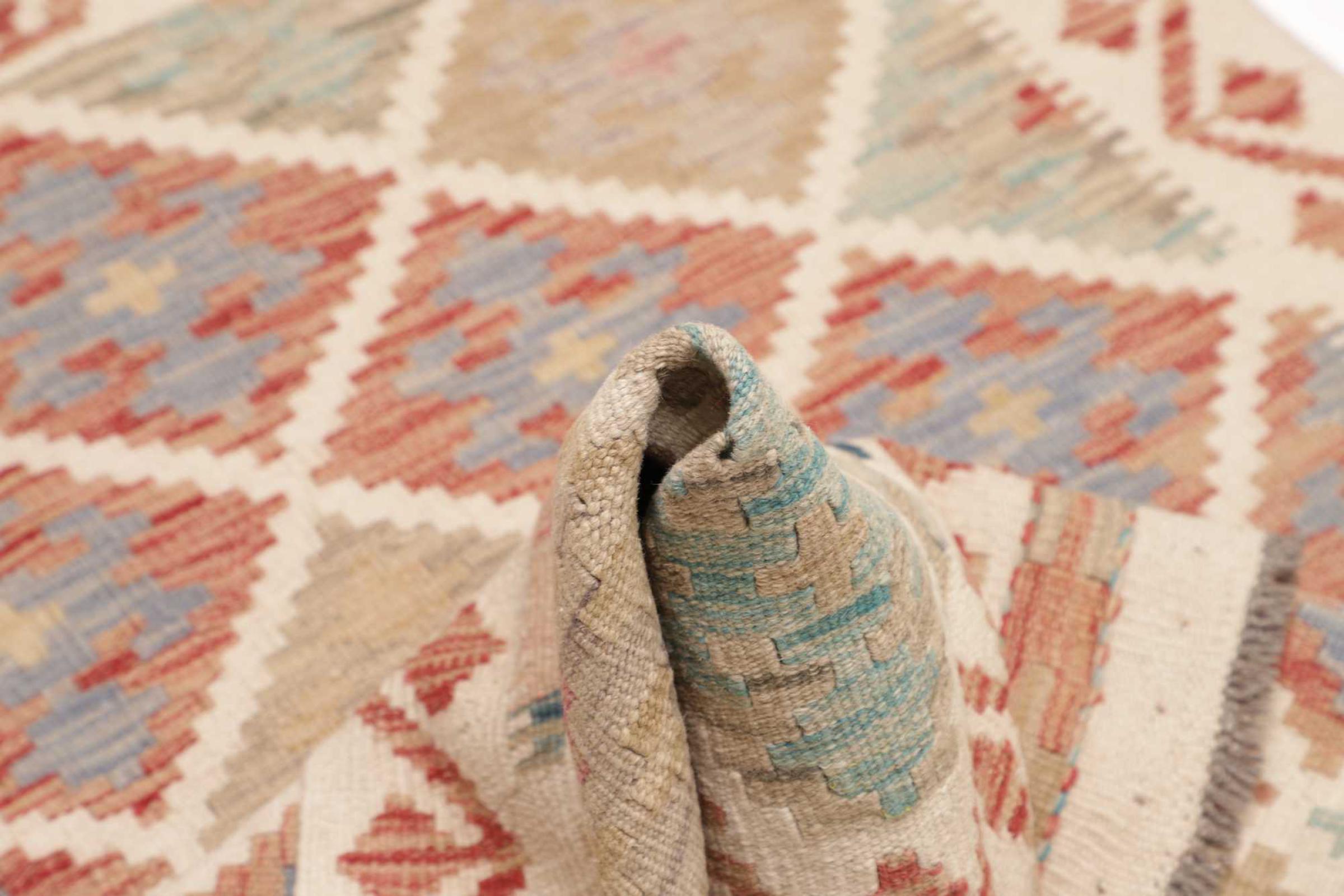 Ten ręcznie tkany kilim afgański jest piękny dzięki wielopłaszczyznowym kolorom i charakterystycznemu wzorowi. Została utkana ręcznie w Afganistanie ze 100% owczej wełny. Jest niewątpliwie bardziej wytrzymały i trwalszy niż dywany tkane maszynowo. Ponadto kilim ten ma swój własny charakter. Wyjątkowy element dla Ciebie i Twojego domu, którego już nigdy nie znajdziesz.