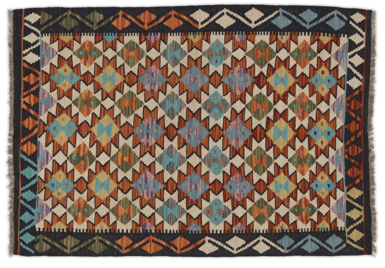 Ten ręcznie tkany kilim afgański jest piękny dzięki wielopłaszczyznowym kolorom i charakterystycznemu wzorowi. Została utkana ręcznie w Afganistanie ze 100% owczej wełny. Jest niewątpliwie bardziej wytrzymały i trwalszy niż dywany tkane maszynowo. Ponadto kilim ten ma swój własny charakter. Wyjątkowy element dla Ciebie i Twojego domu, którego już nigdy nie znajdziesz.
