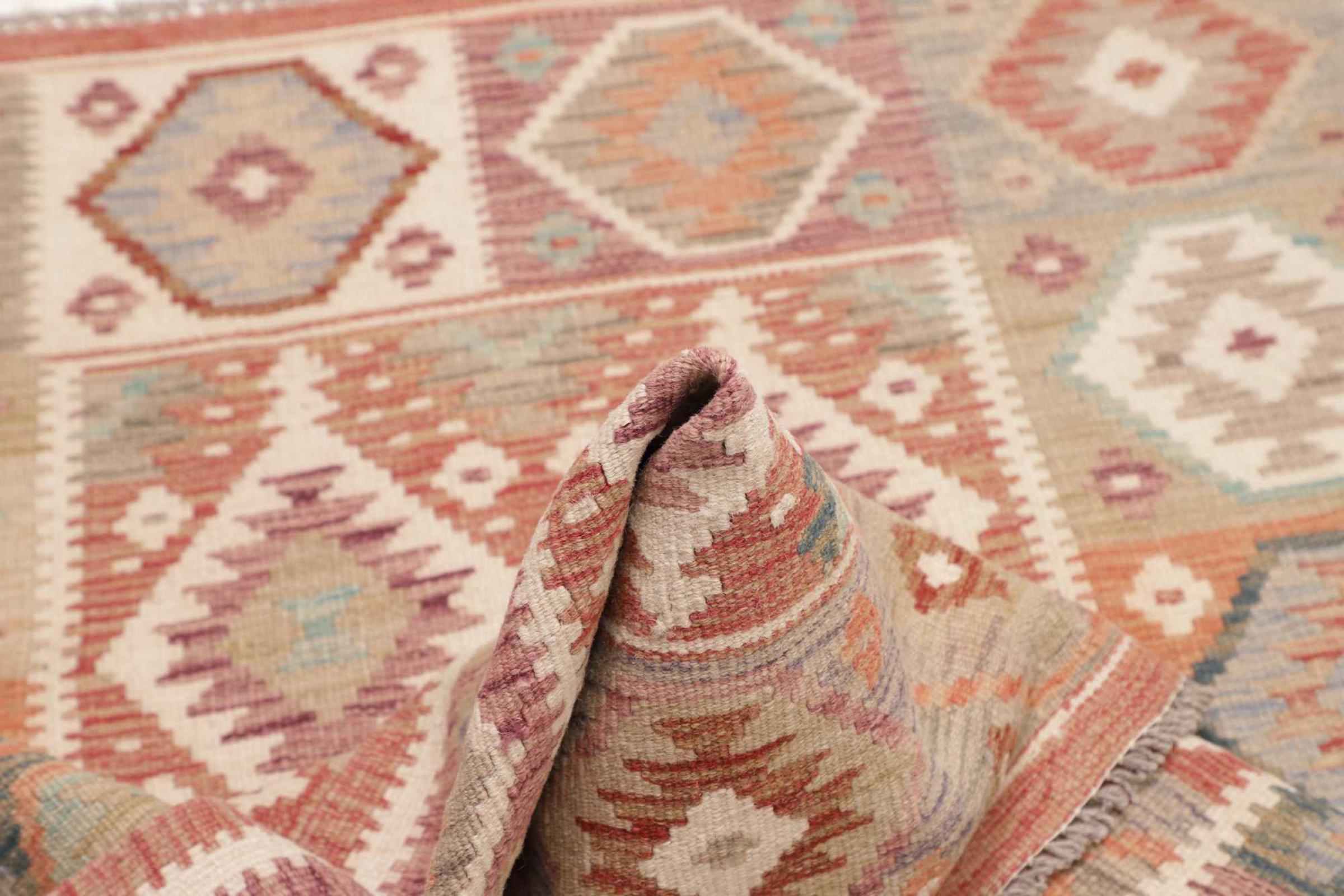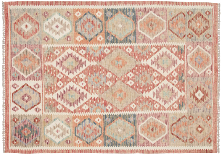 Ten ręcznie tkany kilim afgański jest piękny dzięki wielopłaszczyznowym kolorom i charakterystycznemu wzorowi. Została utkana ręcznie w Afganistanie ze 100% owczej wełny. Jest niewątpliwie bardziej wytrzymały i trwalszy niż dywany tkane maszynowo. Ponadto kilim ten ma swój własny charakter. Wyjątkowy element dla Ciebie i Twojego domu, którego już nigdy nie znajdziesz.