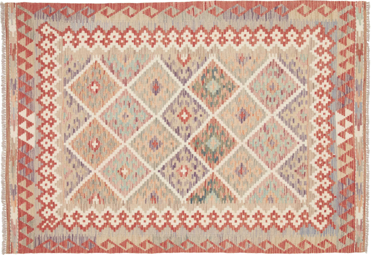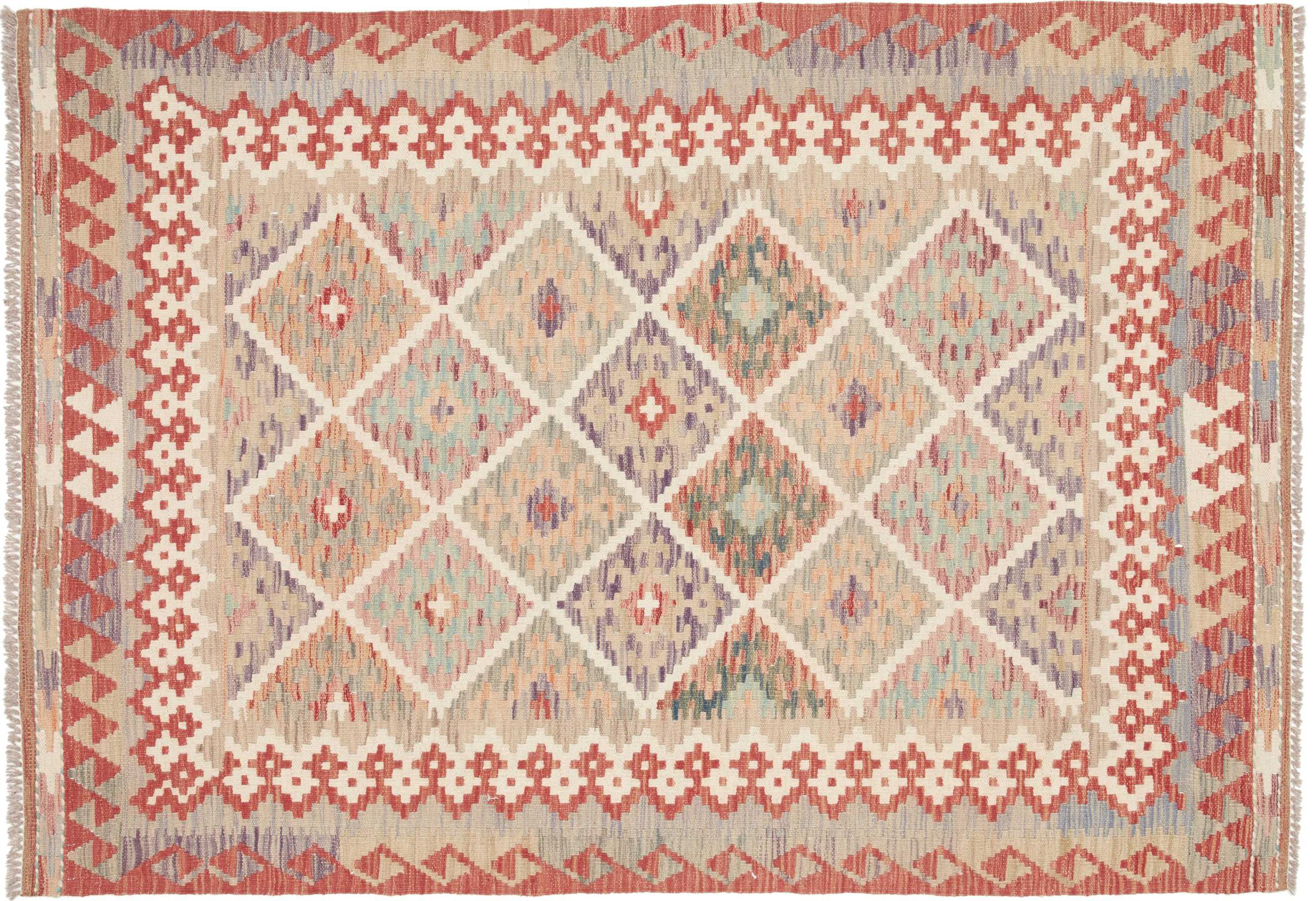 Ten ręcznie tkany kilim afgański jest piękny dzięki wielopłaszczyznowym kolorom i charakterystycznemu wzorowi. Została utkana ręcznie w Afganistanie ze 100% owczej wełny. Jest niewątpliwie bardziej wytrzymały i trwalszy niż dywany tkane maszynowo. Ponadto kilim ten ma swój własny charakter. Wyjątkowy element dla Ciebie i Twojego domu, którego już nigdy nie znajdziesz.