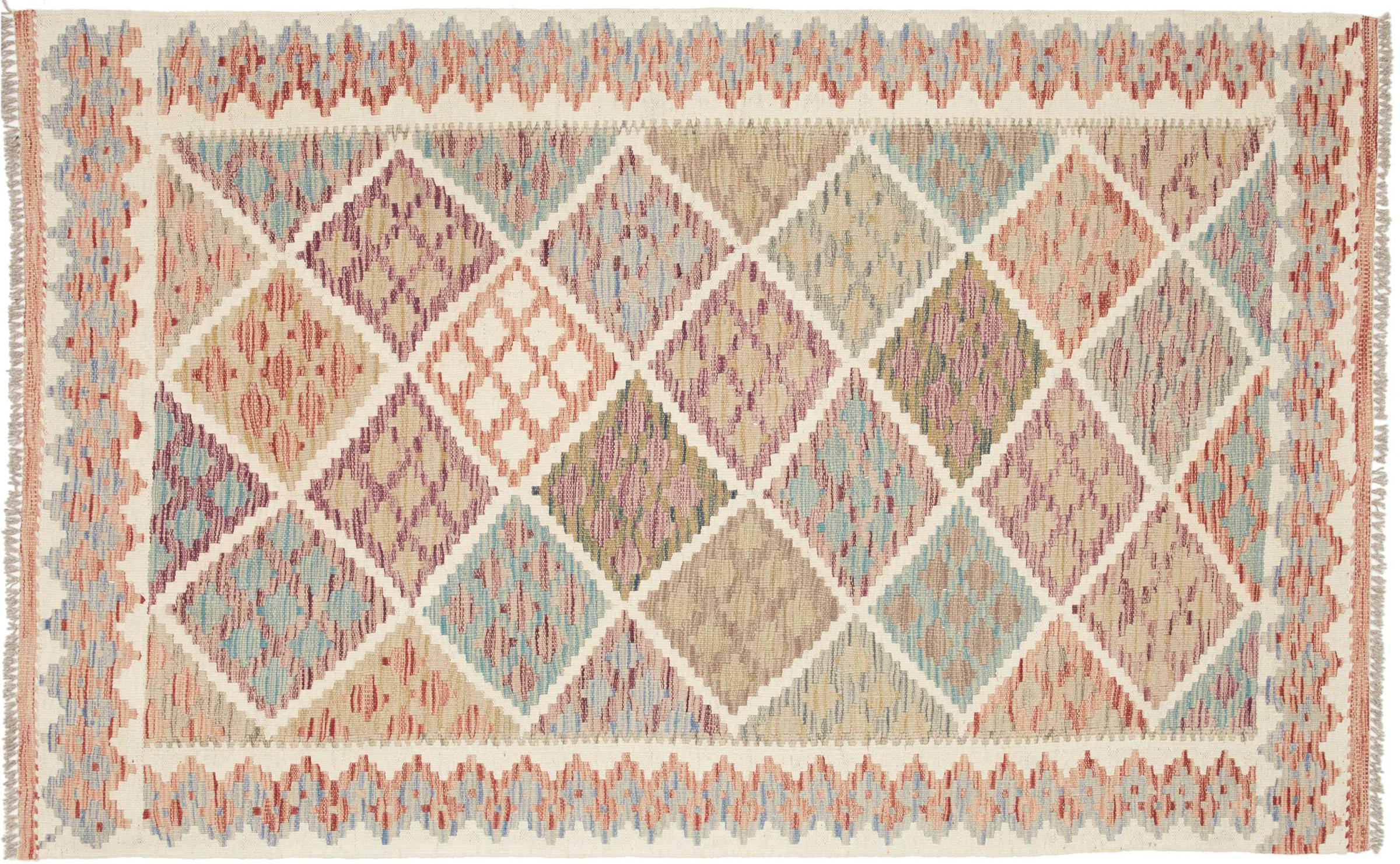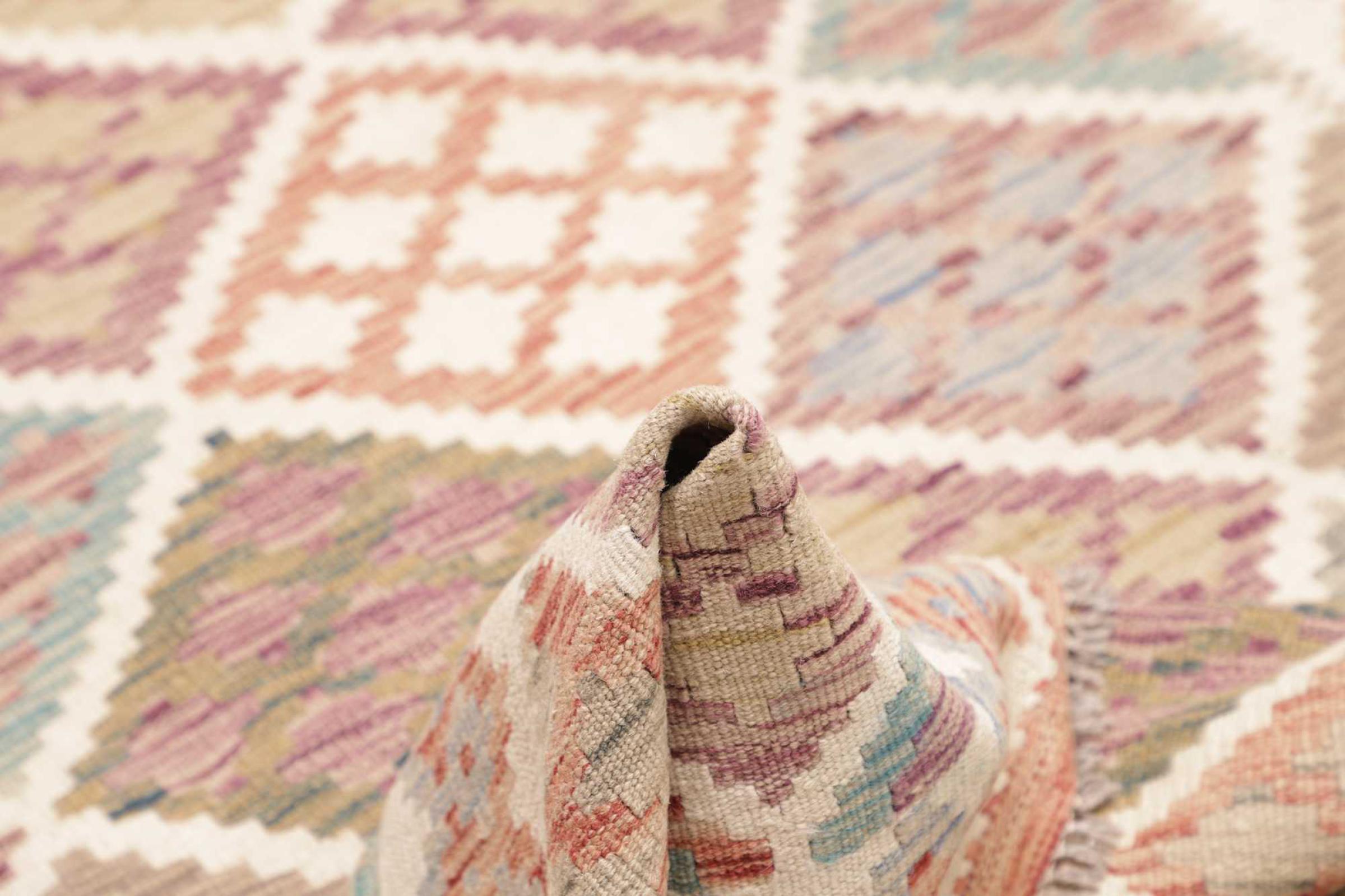 Ten ręcznie tkany kilim afgański jest piękny dzięki wielopłaszczyznowym kolorom i charakterystycznemu wzorowi. Została utkana ręcznie w Afganistanie ze 100% owczej wełny. Jest niewątpliwie bardziej wytrzymały i trwalszy niż dywany tkane maszynowo. Ponadto kilim ten ma swój własny charakter. Wyjątkowy element dla Ciebie i Twojego domu, którego już nigdy nie znajdziesz.