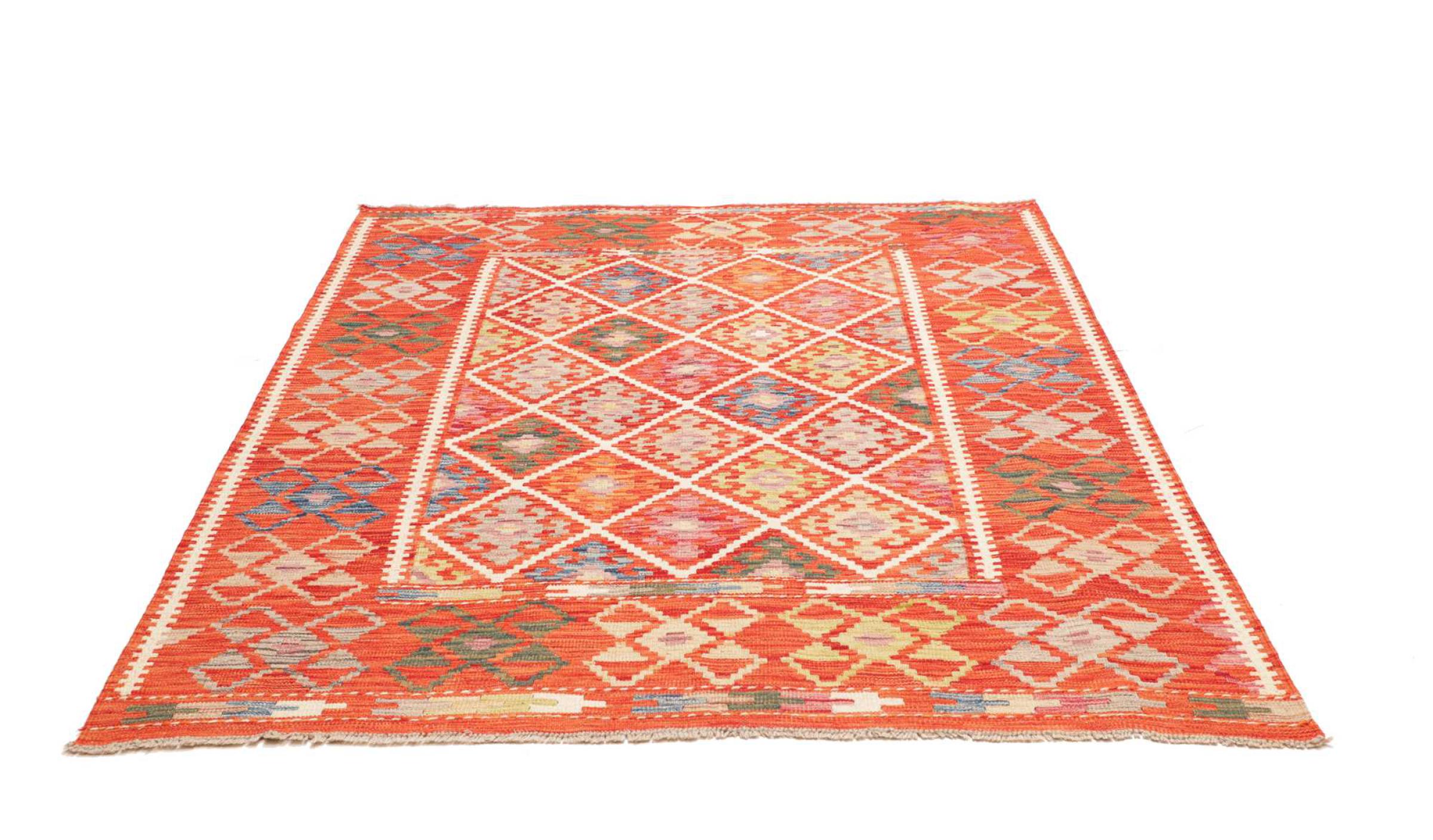 Ten ręcznie tkany kilim afgański jest piękny dzięki wielopłaszczyznowym kolorom i charakterystycznemu wzorowi. Została utkana ręcznie w Afganistanie ze 100% owczej wełny. Jest niewątpliwie bardziej wytrzymały i trwalszy niż dywany tkane maszynowo. Ponadto kilim ten ma swój własny charakter. Wyjątkowy element dla Ciebie i Twojego domu, którego już nigdy nie znajdziesz.