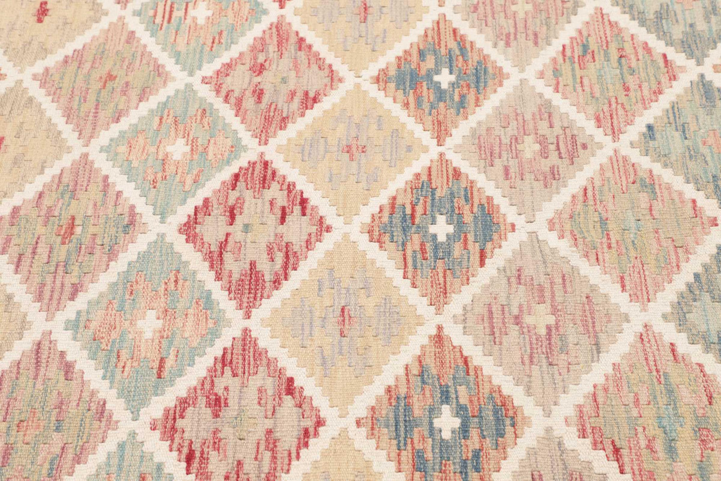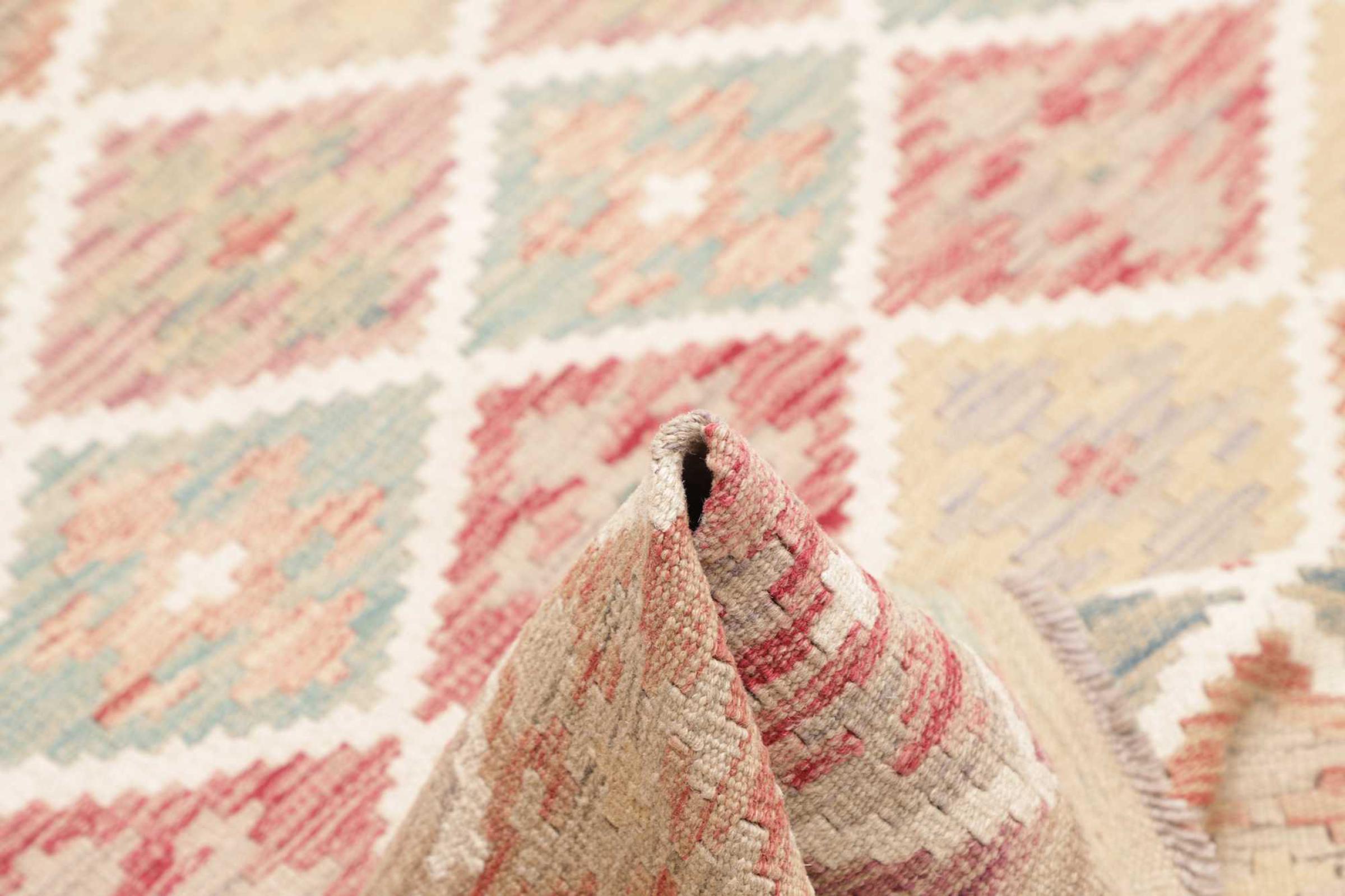 Ten ręcznie tkany kilim afgański jest piękny dzięki wielopłaszczyznowym kolorom i charakterystycznemu wzorowi. Została utkana ręcznie w Afganistanie ze 100% owczej wełny. Jest niewątpliwie bardziej wytrzymały i trwalszy niż dywany tkane maszynowo. Ponadto kilim ten ma swój własny charakter. Wyjątkowy element dla Ciebie i Twojego domu, którego już nigdy nie znajdziesz.