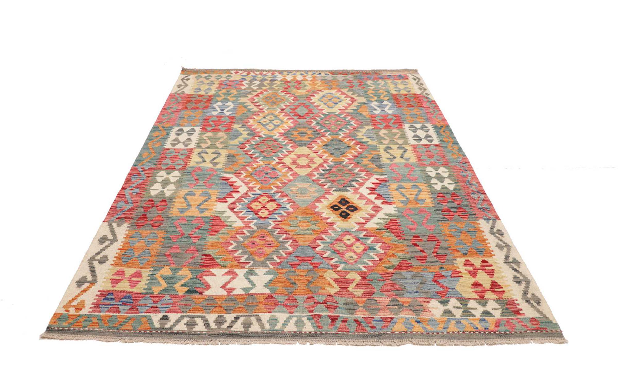 Ten ręcznie tkany kilim afgański jest piękny dzięki wielopłaszczyznowym kolorom i charakterystycznemu wzorowi. Została utkana ręcznie w Afganistanie ze 100% owczej wełny. Jest niewątpliwie bardziej wytrzymały i trwalszy niż dywany tkane maszynowo. Ponadto kilim ten ma swój własny charakter. Wyjątkowy element dla Ciebie i Twojego domu, którego już nigdy nie znajdziesz.