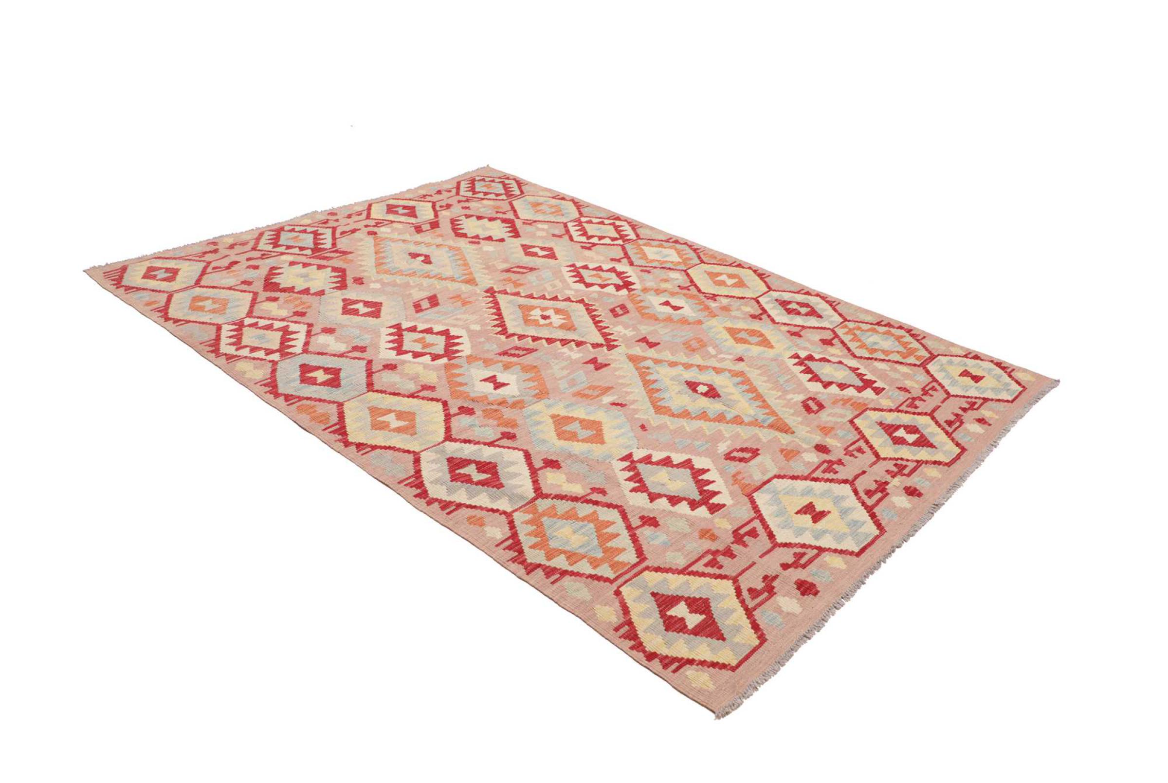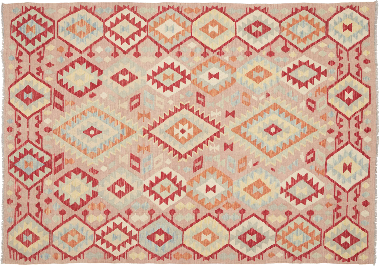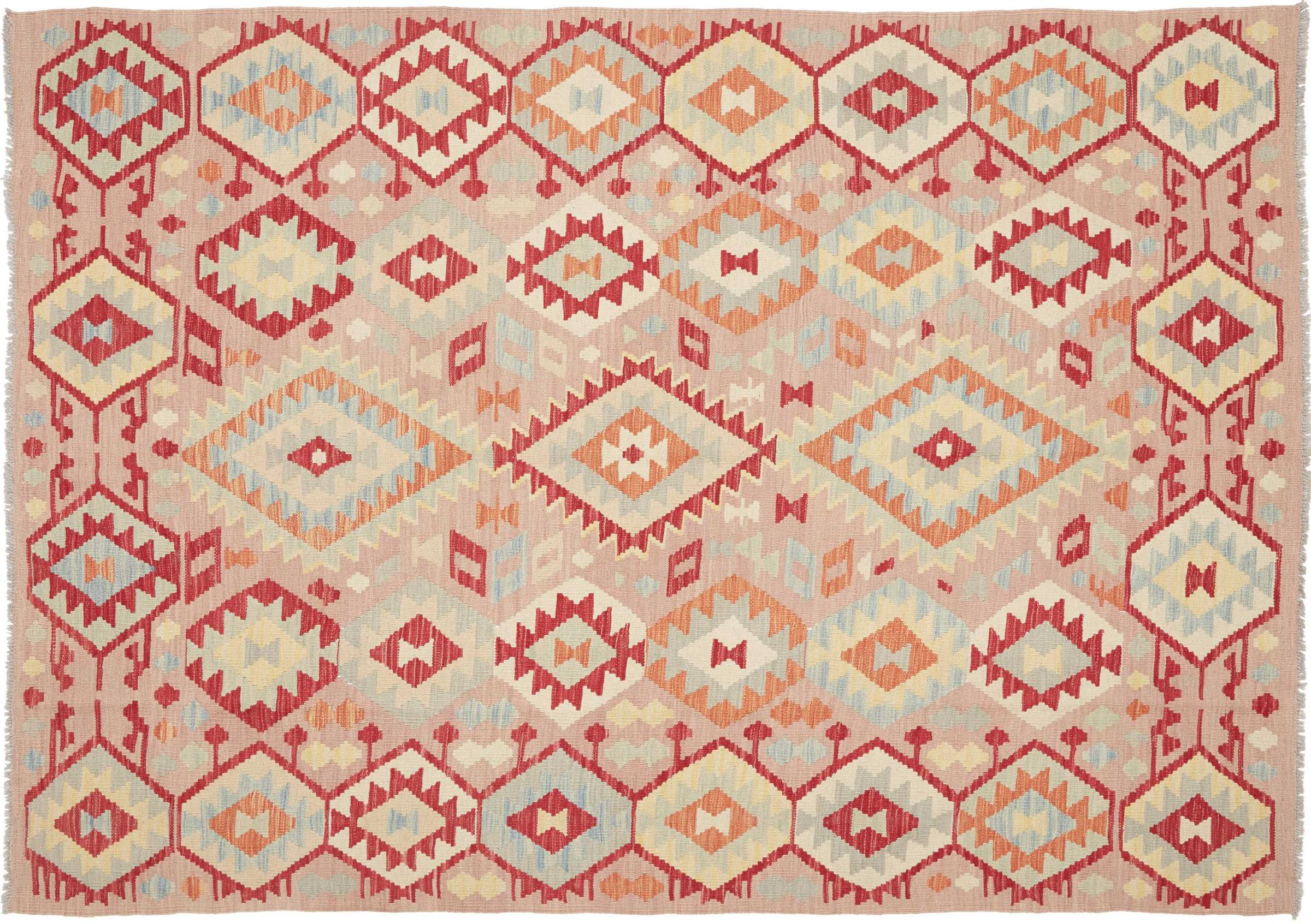 Ten ręcznie tkany kilim afgański jest piękny dzięki wielopłaszczyznowym kolorom i charakterystycznemu wzorowi. Została utkana ręcznie w Afganistanie ze 100% owczej wełny. Jest niewątpliwie bardziej wytrzymały i trwalszy niż dywany tkane maszynowo. Ponadto kilim ten ma swój własny charakter. Wyjątkowy element dla Ciebie i Twojego domu, którego już nigdy nie znajdziesz.