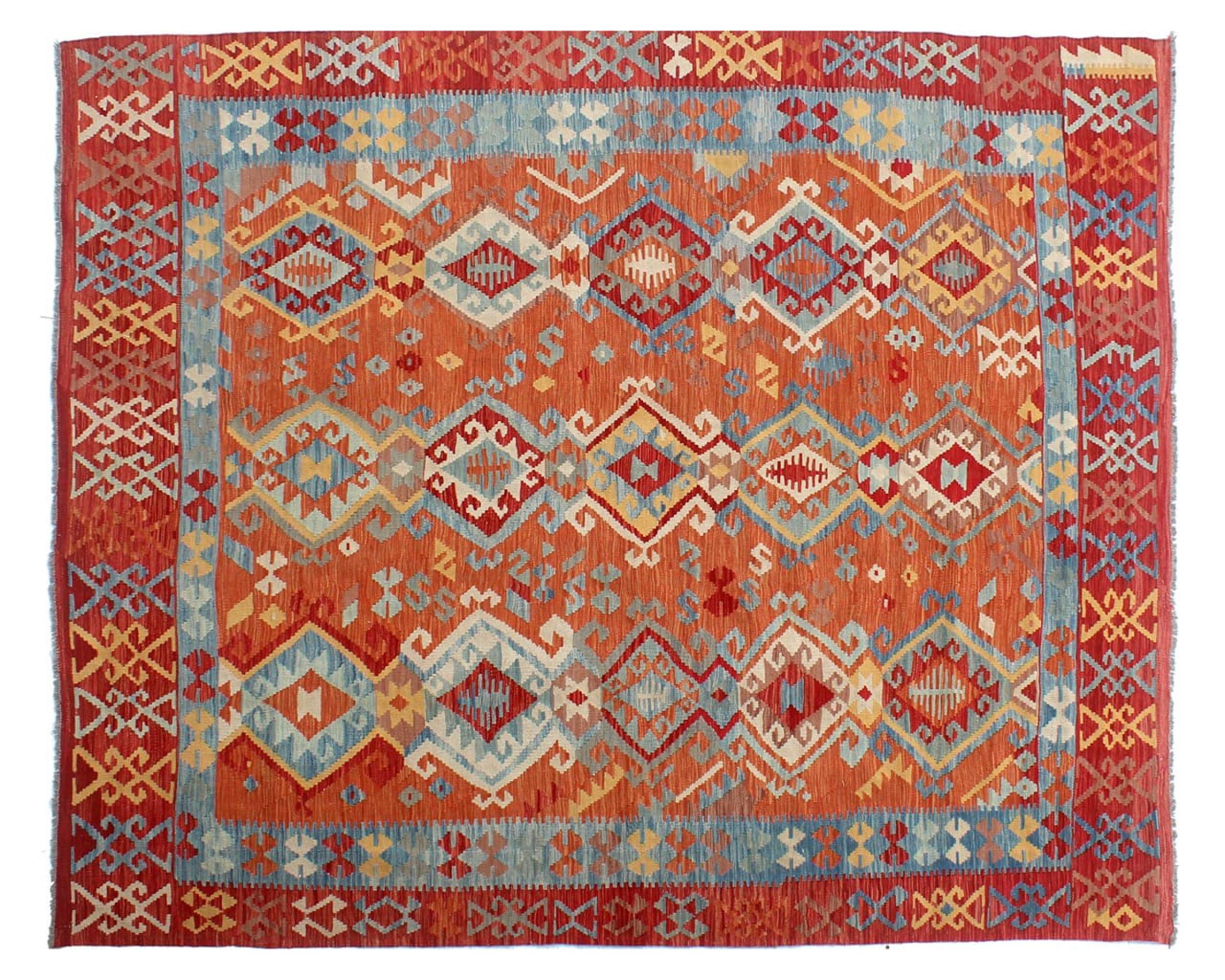 Ten ręcznie tkany kilim afgański jest piękny dzięki wielopłaszczyznowym kolorom i charakterystycznemu wzorowi. Została utkana ręcznie w Afganistanie ze 100% owczej wełny. Jest niewątpliwie bardziej wytrzymały i trwalszy niż dywany tkane maszynowo. Ponadto kilim ten ma swój własny charakter. Wyjątkowy element dla Ciebie i Twojego domu, którego już nigdy nie znajdziesz.