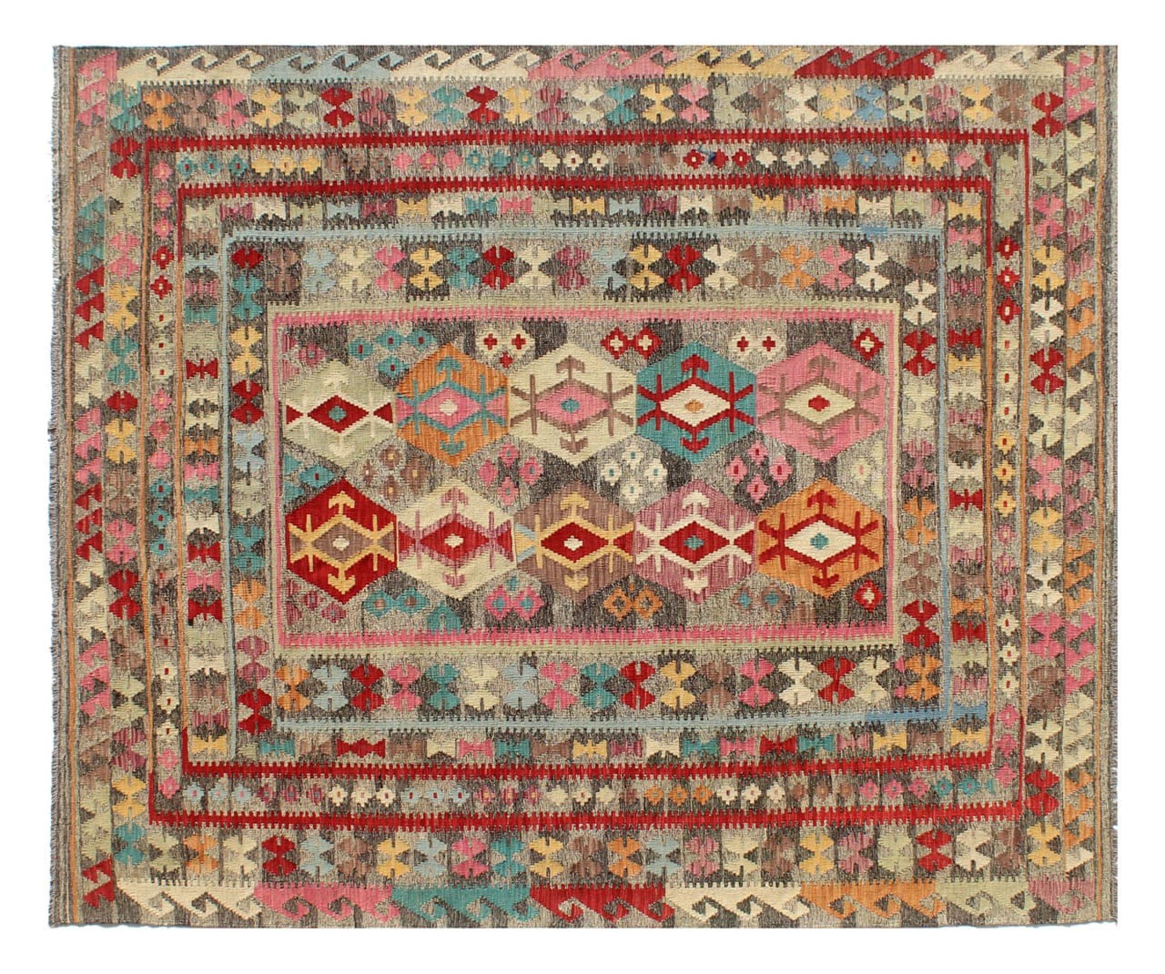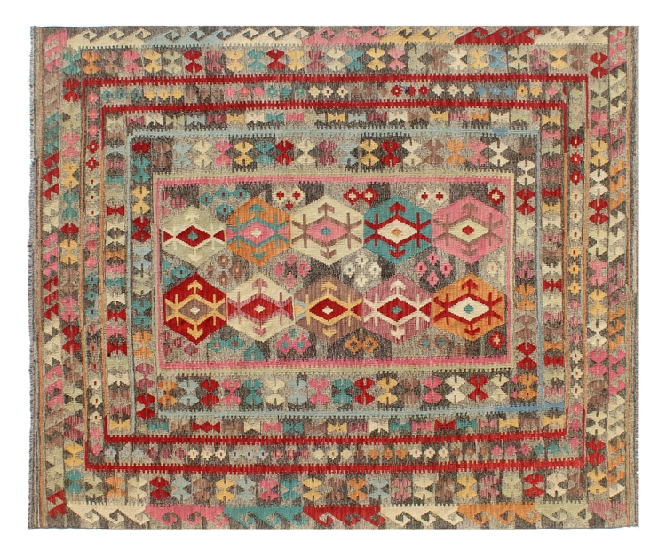 Ten ręcznie tkany kilim afgański jest piękny dzięki wielopłaszczyznowym kolorom i charakterystycznemu wzorowi. Została utkana ręcznie w Afganistanie ze 100% owczej wełny. Jest niewątpliwie bardziej wytrzymały i trwalszy niż dywany tkane maszynowo. Ponadto kilim ten ma swój własny charakter. Wyjątkowy element dla Ciebie i Twojego domu, którego już nigdy nie znajdziesz.