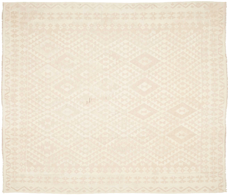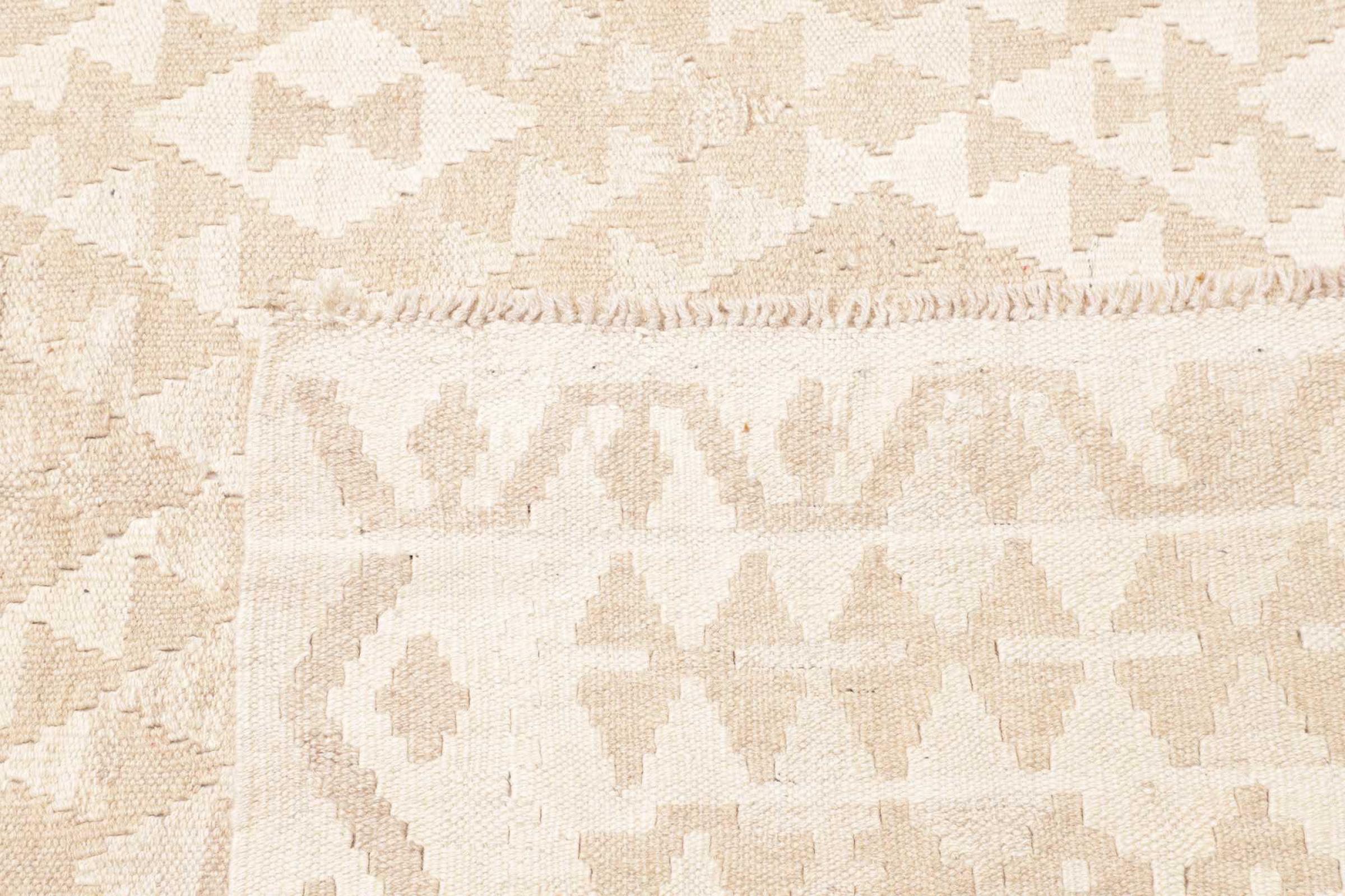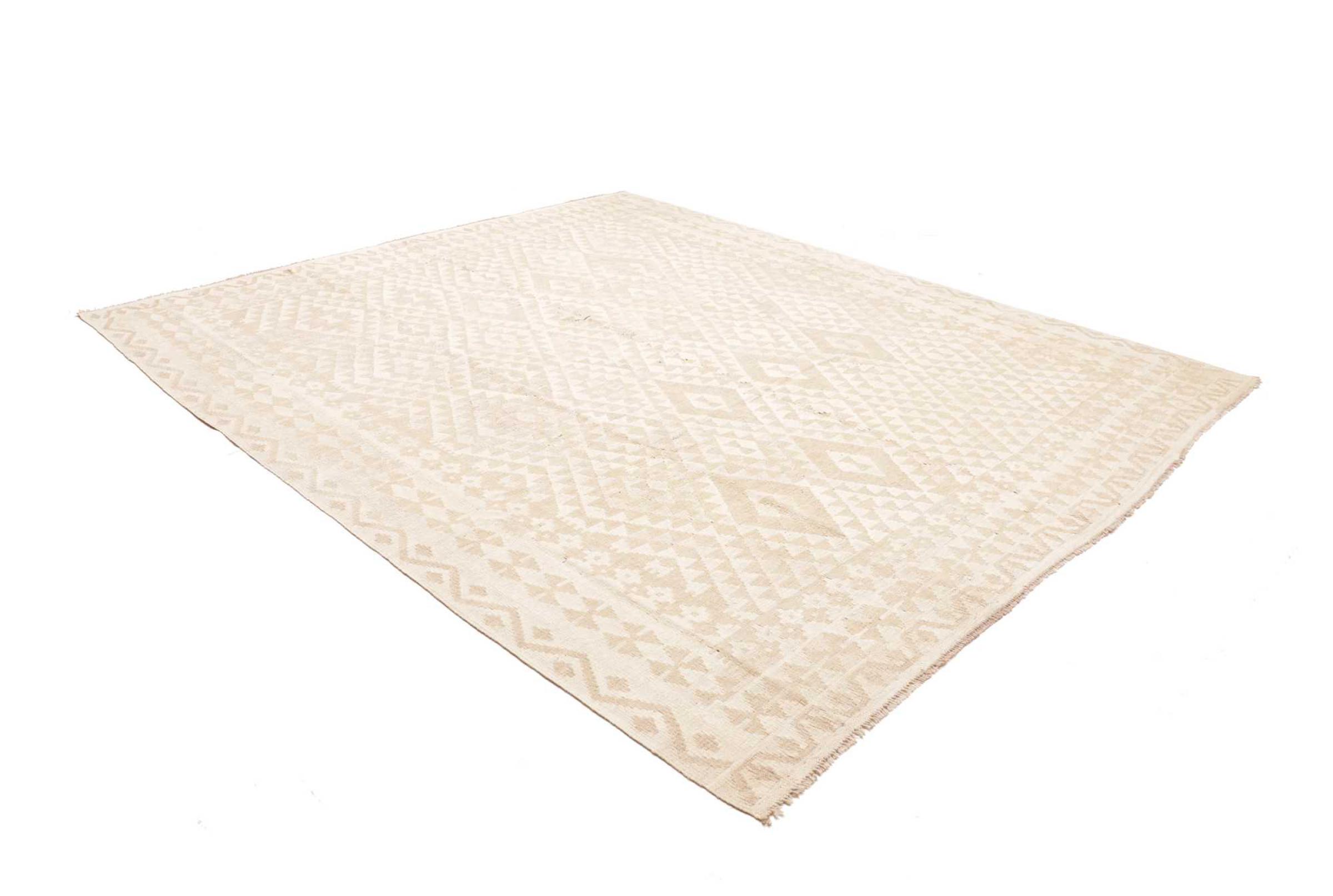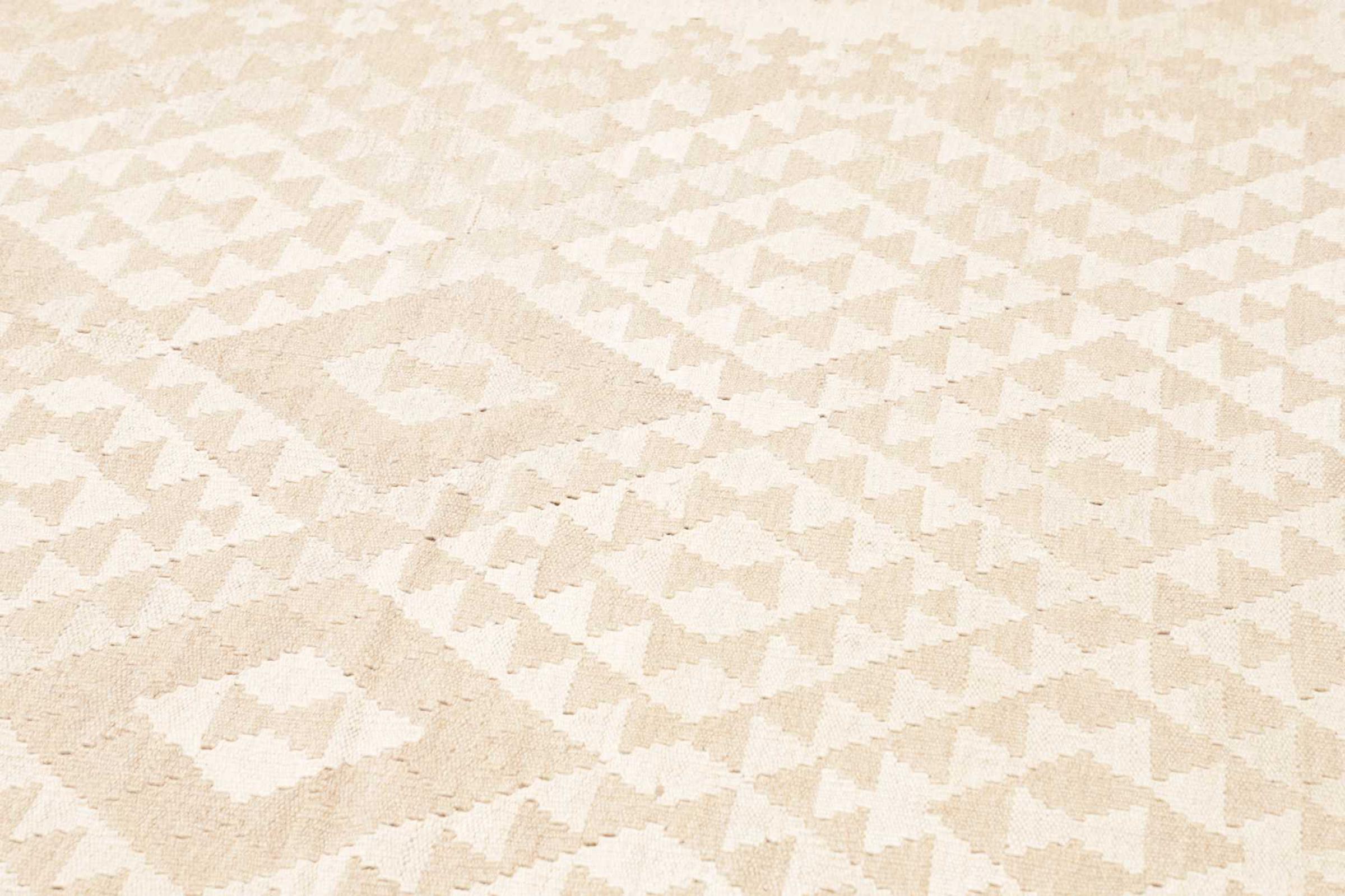 Ten dywan został wykonany ręcznie na krosnach jako płaski splot. Flatweave to termin używany do opisu dywanów, które nie mają kupki. Jak obiecuje nazwa, te dywany są tkane i nie splatane. W ten sposób powstaje płaski dywan o ustrukturyzowanej powierzchni. Płaskie fale nie są tak miękkie i zazwyczaj cieńsze niż dywany węzełkowe. Jednocześnie są one znacznie mniej skomplikowane w produkcji i zazwyczaj mogą być układane z obu stron (z przodu i z tyłu). Ich wzory są zazwyczaj geometryczne, co jest uwarunkowane tkaniną.