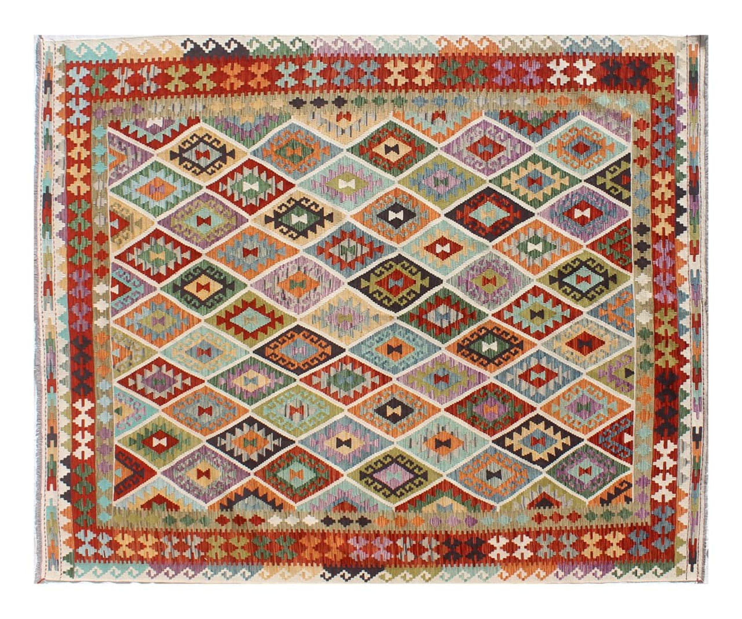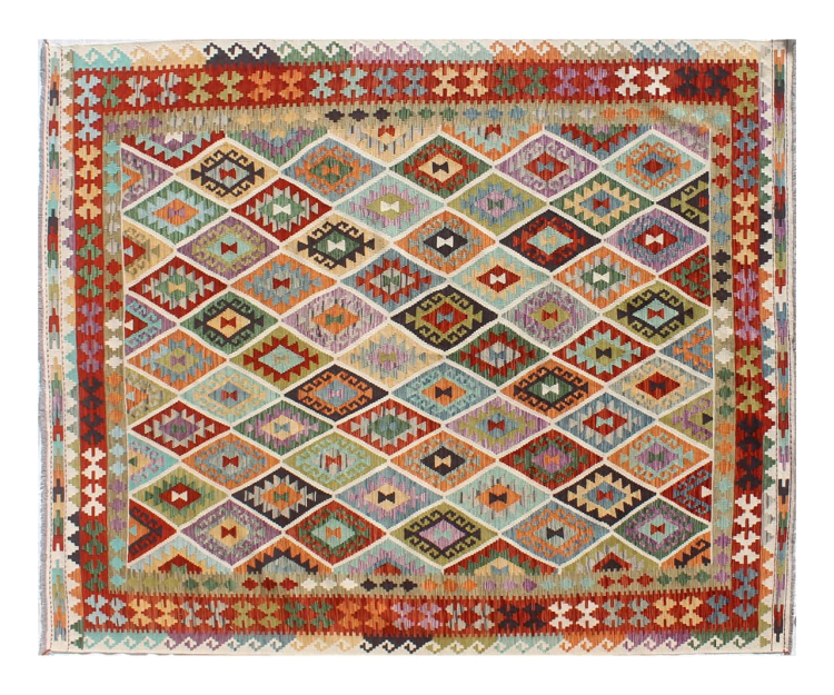 Ten ręcznie tkany kilim afgański jest piękny dzięki wielopłaszczyznowym kolorom i charakterystycznemu wzorowi. Została utkana ręcznie w Afganistanie ze 100% owczej wełny. Jest niewątpliwie bardziej wytrzymały i trwalszy niż dywany tkane maszynowo. Ponadto kilim ten ma swój własny charakter. Wyjątkowy element dla Ciebie i Twojego domu, którego już nigdy nie znajdziesz.