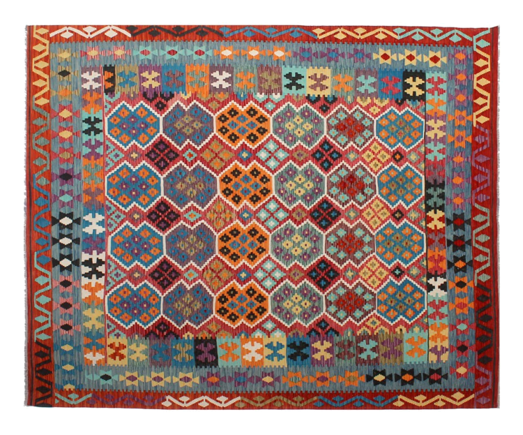 Ten ręcznie tkany kilim afgański jest piękny dzięki wielopłaszczyznowym kolorom i charakterystycznemu wzorowi. Została utkana ręcznie w Afganistanie ze 100% owczej wełny. Jest niewątpliwie bardziej wytrzymały i trwalszy niż dywany tkane maszynowo. Ponadto kilim ten ma swój własny charakter. Wyjątkowy element dla Ciebie i Twojego domu, którego już nigdy nie znajdziesz.