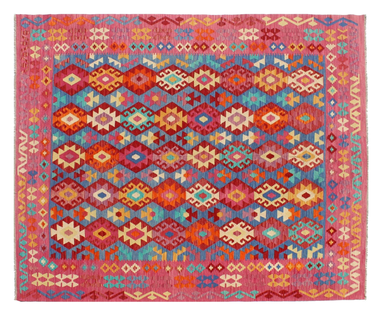 Ten ręcznie tkany kilim afgański jest piękny dzięki wielopłaszczyznowym kolorom i charakterystycznemu wzorowi. Została utkana ręcznie w Afganistanie ze 100% owczej wełny. Jest niewątpliwie bardziej wytrzymały i trwalszy niż dywany tkane maszynowo. Ponadto kilim ten ma swój własny charakter. Wyjątkowy element dla Ciebie i Twojego domu, którego już nigdy nie znajdziesz.
