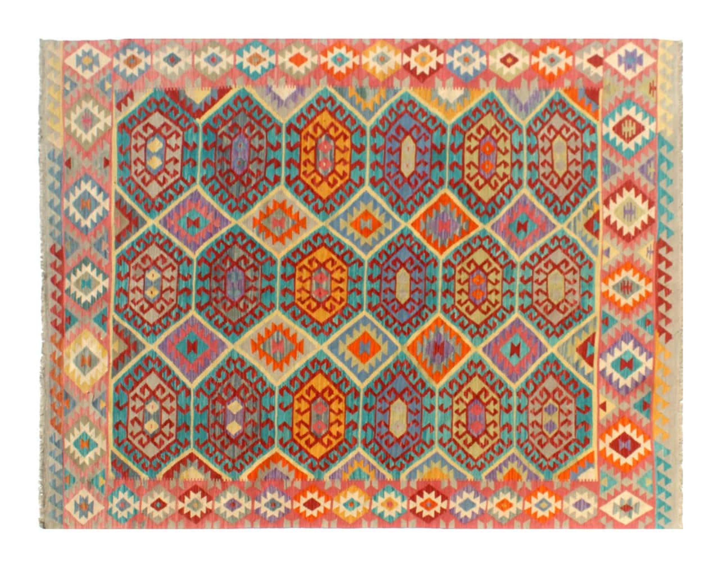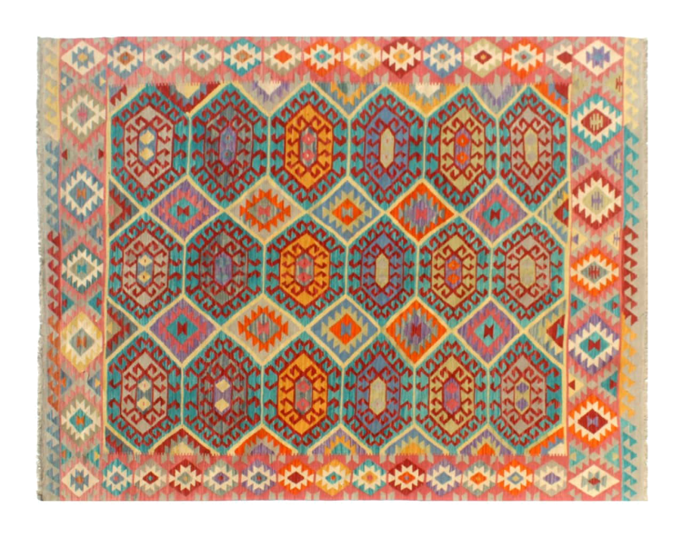 Ten ręcznie tkany kilim afgański jest piękny dzięki wielopłaszczyznowym kolorom i charakterystycznemu wzorowi. Została utkana ręcznie w Afganistanie ze 100% owczej wełny. Jest niewątpliwie bardziej wytrzymały i trwalszy niż dywany tkane maszynowo. Ponadto kilim ten ma swój własny charakter. Wyjątkowy element dla Ciebie i Twojego domu, którego już nigdy nie znajdziesz.