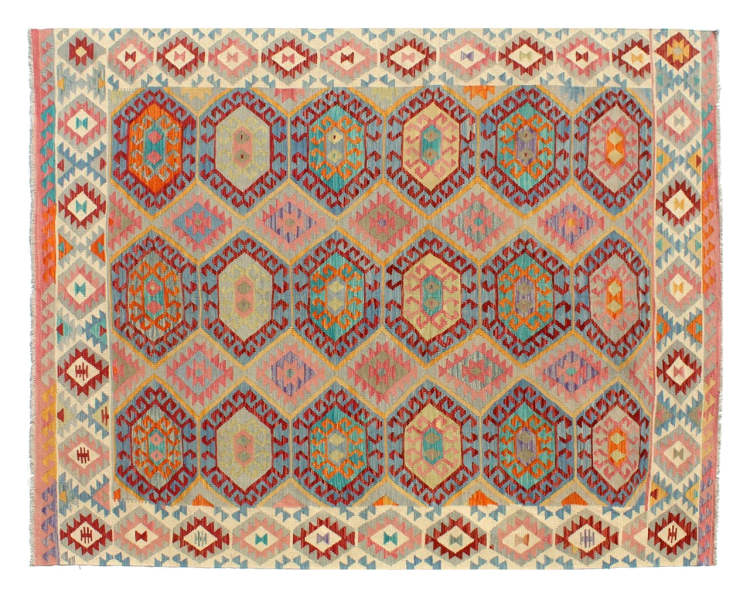 Ten ręcznie tkany kilim afgański jest piękny dzięki wielopłaszczyznowym kolorom i charakterystycznemu wzorowi. Została utkana ręcznie w Afganistanie ze 100% owczej wełny. Jest niewątpliwie bardziej wytrzymały i trwalszy niż dywany tkane maszynowo. Ponadto kilim ten ma swój własny charakter. Wyjątkowy element dla Ciebie i Twojego domu, którego już nigdy nie znajdziesz.