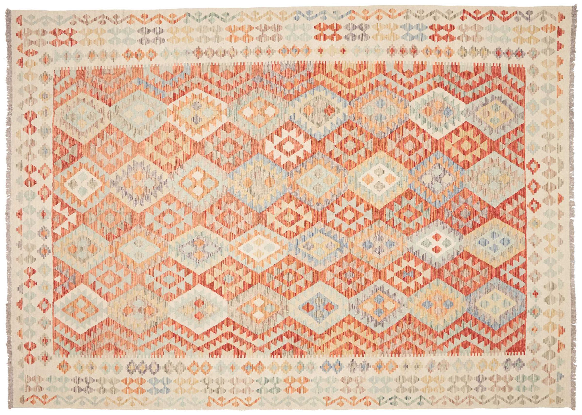 Ten ręcznie tkany kilim afgański jest piękny dzięki wielopłaszczyznowym kolorom i charakterystycznemu wzorowi. Została utkana ręcznie w Afganistanie ze 100% owczej wełny. Jest niewątpliwie bardziej wytrzymały i trwalszy niż dywany tkane maszynowo. Ponadto kilim ten ma swój własny charakter. Wyjątkowy element dla Ciebie i Twojego domu, którego już nigdy nie znajdziesz.
