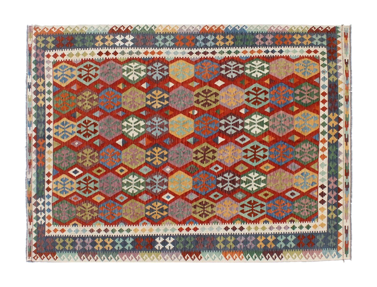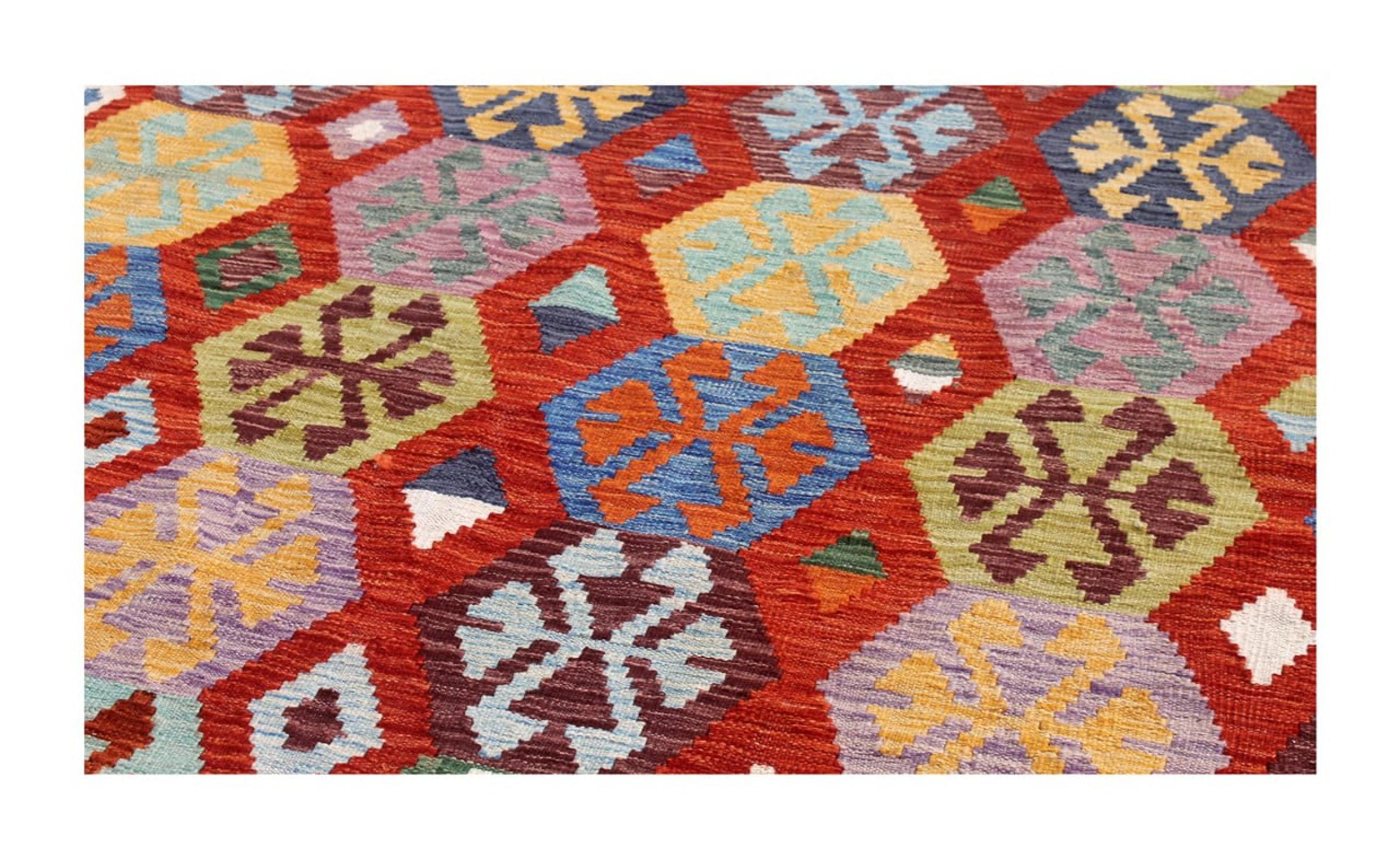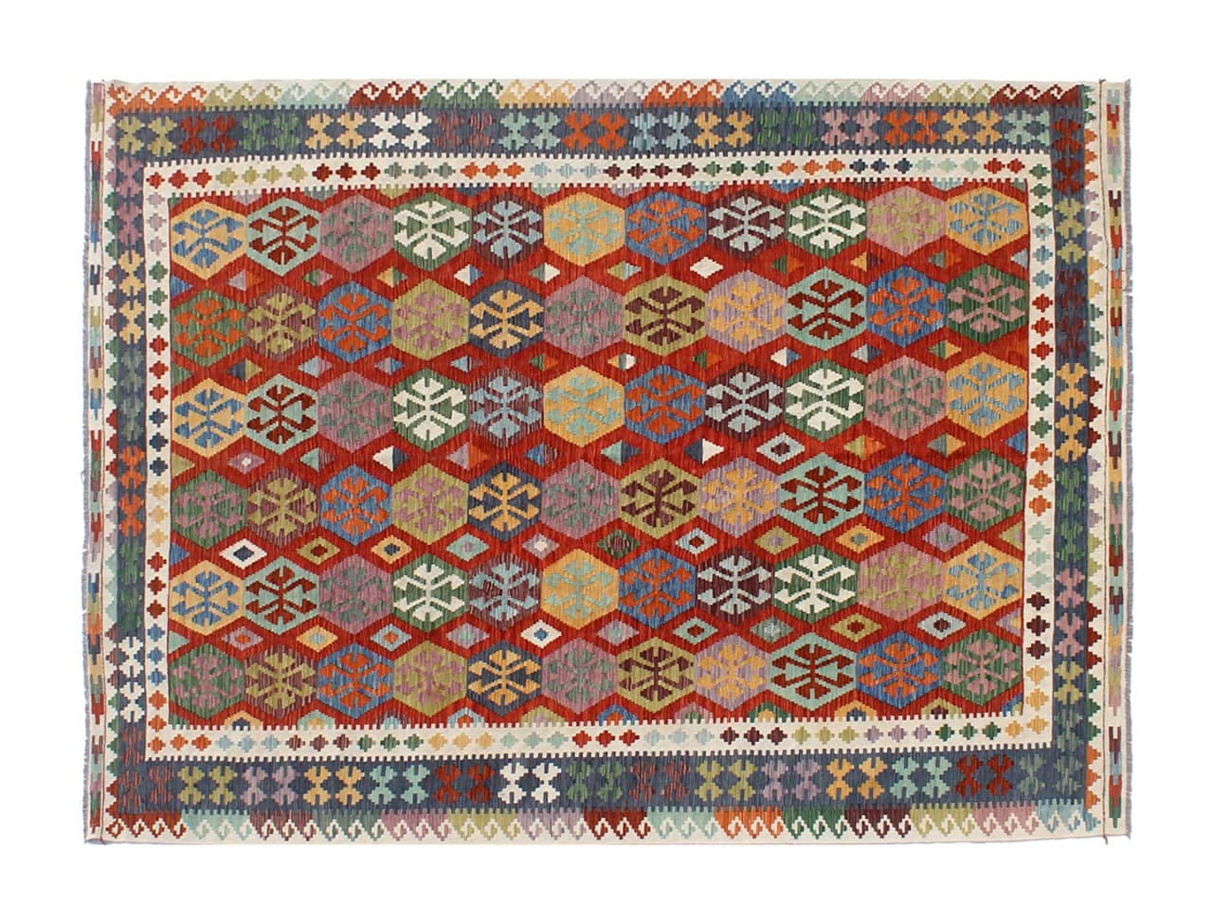 Ten ręcznie tkany kilim afgański jest piękny dzięki wielopłaszczyznowym kolorom i charakterystycznemu wzorowi. Została utkana ręcznie w Afganistanie ze 100% owczej wełny. Jest niewątpliwie bardziej wytrzymały i trwalszy niż dywany tkane maszynowo. Ponadto kilim ten ma swój własny charakter. Wyjątkowy element dla Ciebie i Twojego domu, którego już nigdy nie znajdziesz.