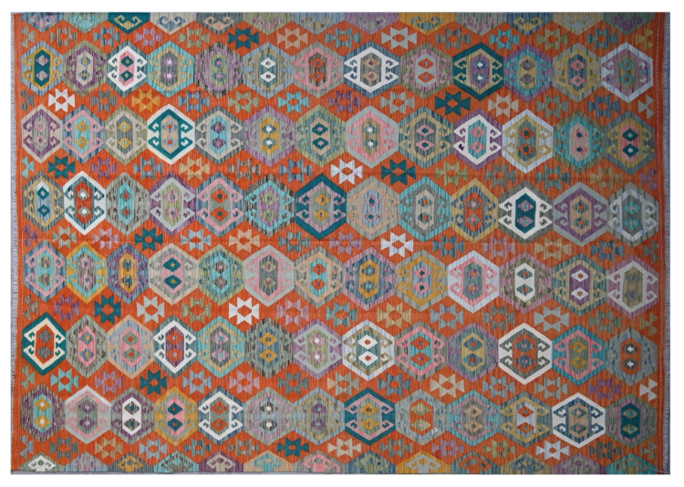Ten ręcznie tkany kilim afgański jest piękny dzięki wielopłaszczyznowym kolorom i charakterystycznemu wzorowi. Została utkana ręcznie w Afganistanie ze 100% owczej wełny. Jest niewątpliwie bardziej wytrzymały i trwalszy niż dywany tkane maszynowo. Ponadto kilim ten ma swój własny charakter. Wyjątkowy element dla Ciebie i Twojego domu, którego już nigdy nie znajdziesz.
