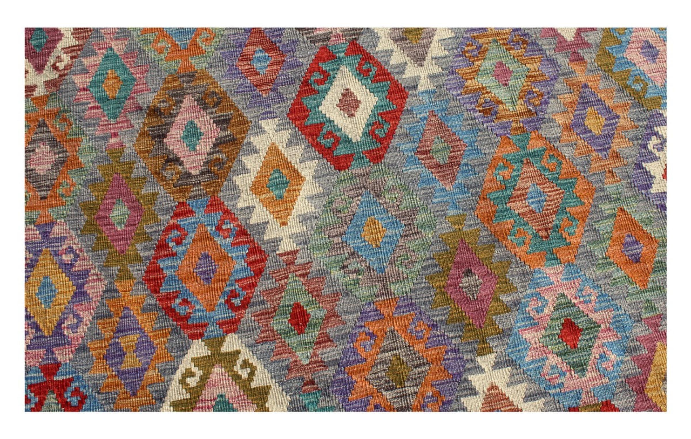Ten ręcznie tkany kilim afgański jest piękny dzięki wielopłaszczyznowym kolorom i charakterystycznemu wzorowi. Została utkana ręcznie w Afganistanie ze 100% owczej wełny. Jest niewątpliwie bardziej wytrzymały i trwalszy niż dywany tkane maszynowo. Ponadto kilim ten ma swój własny charakter. Wyjątkowy element dla Ciebie i Twojego domu, którego już nigdy nie znajdziesz.