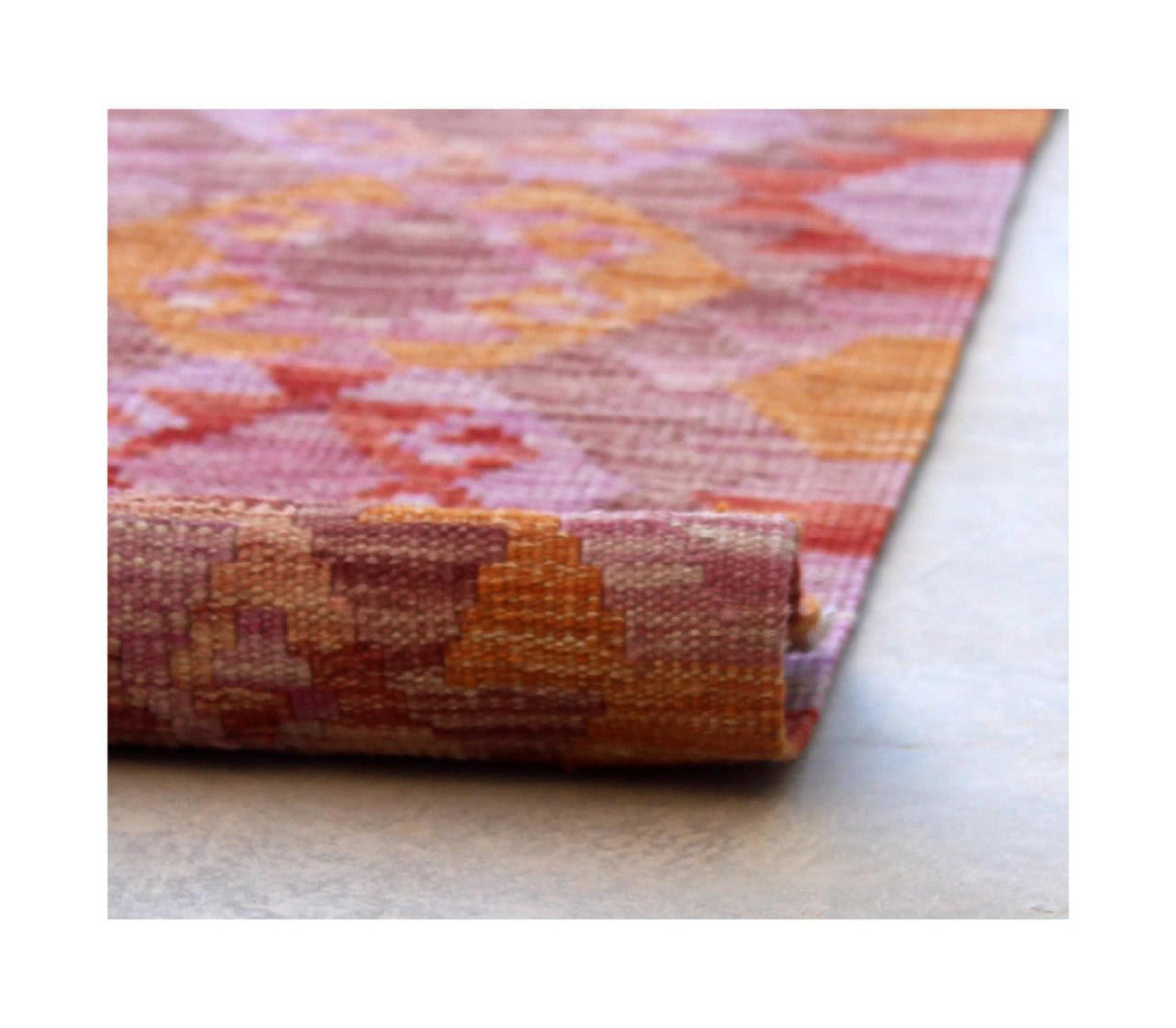 Ten ręcznie tkany kilim afgański jest piękny dzięki wielopłaszczyznowym kolorom i charakterystycznemu wzorowi. Została utkana ręcznie w Afganistanie ze 100% owczej wełny. Jest niewątpliwie bardziej wytrzymały i trwalszy niż dywany tkane maszynowo. Ponadto kilim ten ma swój własny charakter. Wyjątkowy element dla Ciebie i Twojego domu, którego już nigdy nie znajdziesz.