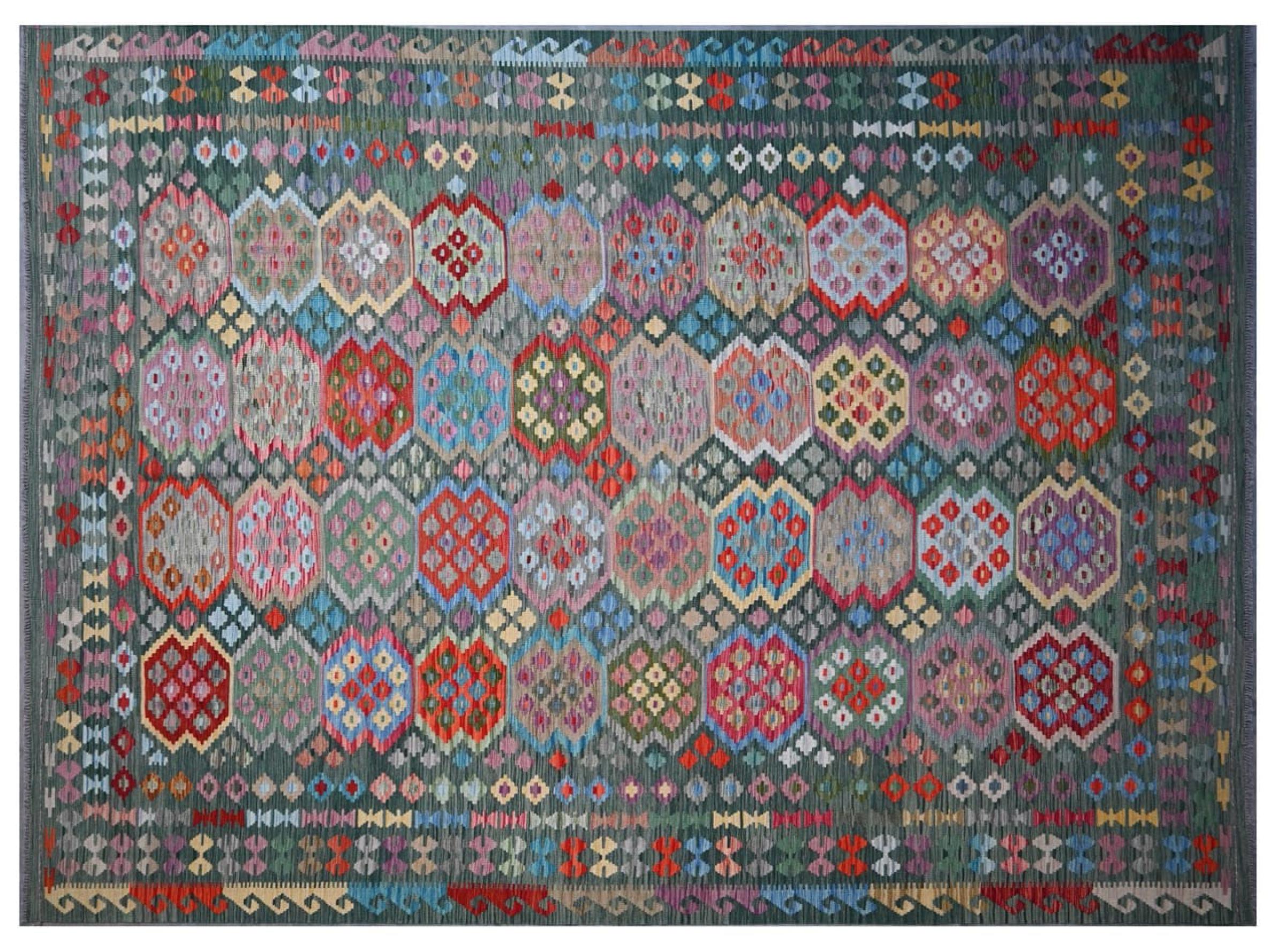 Ten ręcznie tkany kilim afgański jest piękny dzięki wielopłaszczyznowym kolorom i charakterystycznemu wzorowi. Została utkana ręcznie w Afganistanie ze 100% owczej wełny. Jest niewątpliwie bardziej wytrzymały i trwalszy niż dywany tkane maszynowo. Ponadto kilim ten ma swój własny charakter. Wyjątkowy element dla Ciebie i Twojego domu, którego już nigdy nie znajdziesz.
