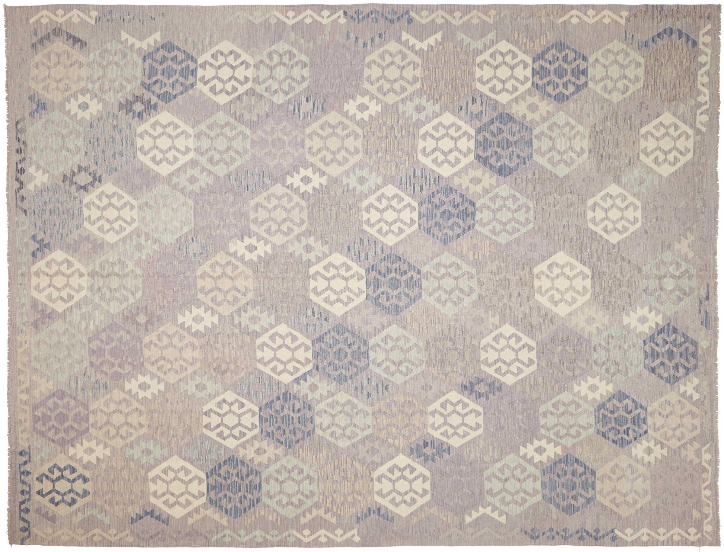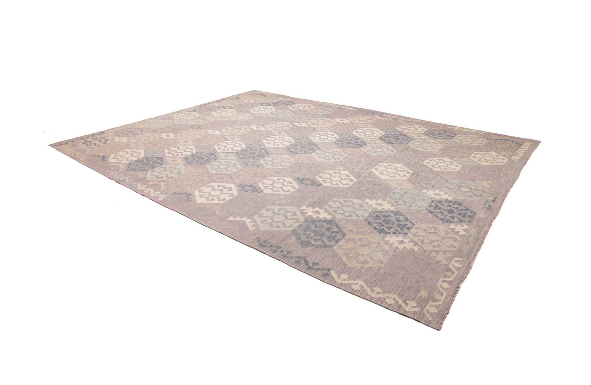 Ten dywan został wykonany ręcznie na krosnach jako płaski splot. Flatweave to termin używany do opisu dywanów, które nie mają kupki. Jak obiecuje nazwa, te dywany są tkane i nie splatane. W ten sposób powstaje płaski dywan o ustrukturyzowanej powierzchni. Płaskie fale nie są tak miękkie i zazwyczaj cieńsze niż dywany węzełkowe. Jednocześnie są one znacznie mniej skomplikowane w produkcji i zazwyczaj mogą być układane z obu stron (z przodu i z tyłu). Ich wzory są zazwyczaj geometryczne, co jest uwarunkowane tkaniną.