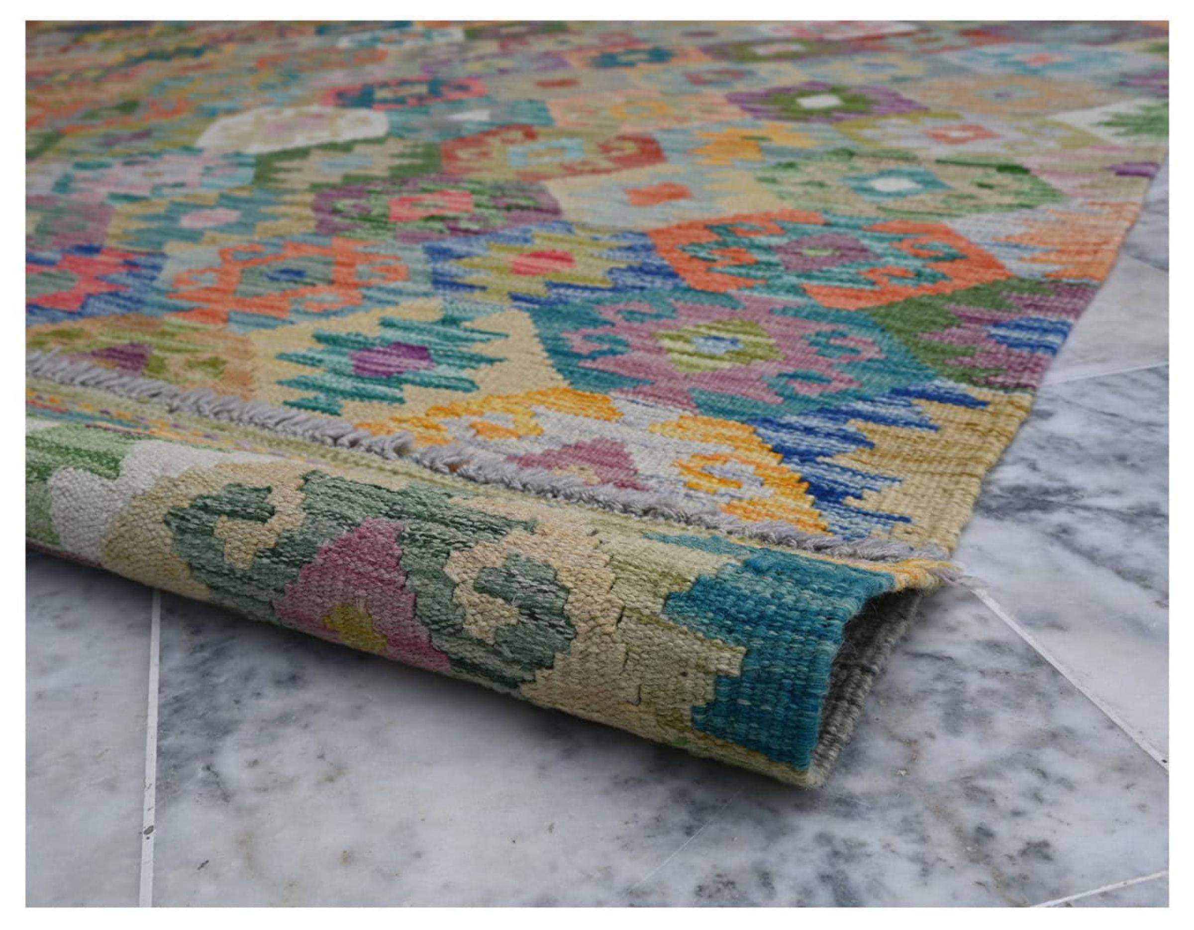 Ten ręcznie tkany kilim afgański jest piękny dzięki wielopłaszczyznowym kolorom i charakterystycznemu wzorowi. Została utkana ręcznie w Afganistanie ze 100% owczej wełny. Jest niewątpliwie bardziej wytrzymały i trwalszy niż dywany tkane maszynowo. Ponadto kilim ten ma swój własny charakter. Wyjątkowy element dla Ciebie i Twojego domu, którego już nigdy nie znajdziesz.