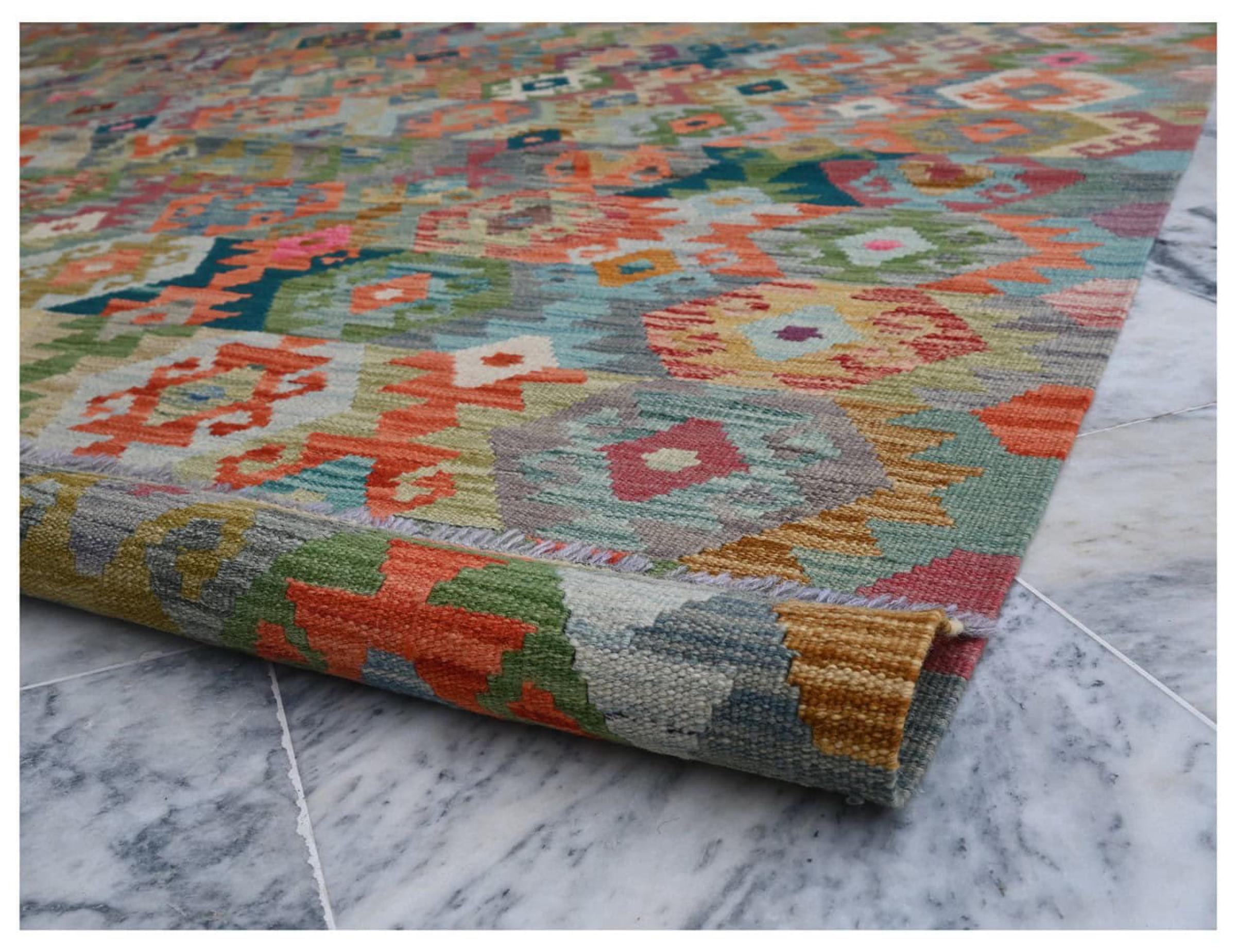 Ten ręcznie tkany kilim afgański jest piękny dzięki wielopłaszczyznowym kolorom i charakterystycznemu wzorowi. Została utkana ręcznie w Afganistanie ze 100% owczej wełny. Jest niewątpliwie bardziej wytrzymały i trwalszy niż dywany tkane maszynowo. Ponadto kilim ten ma swój własny charakter. Wyjątkowy element dla Ciebie i Twojego domu, którego już nigdy nie znajdziesz.
