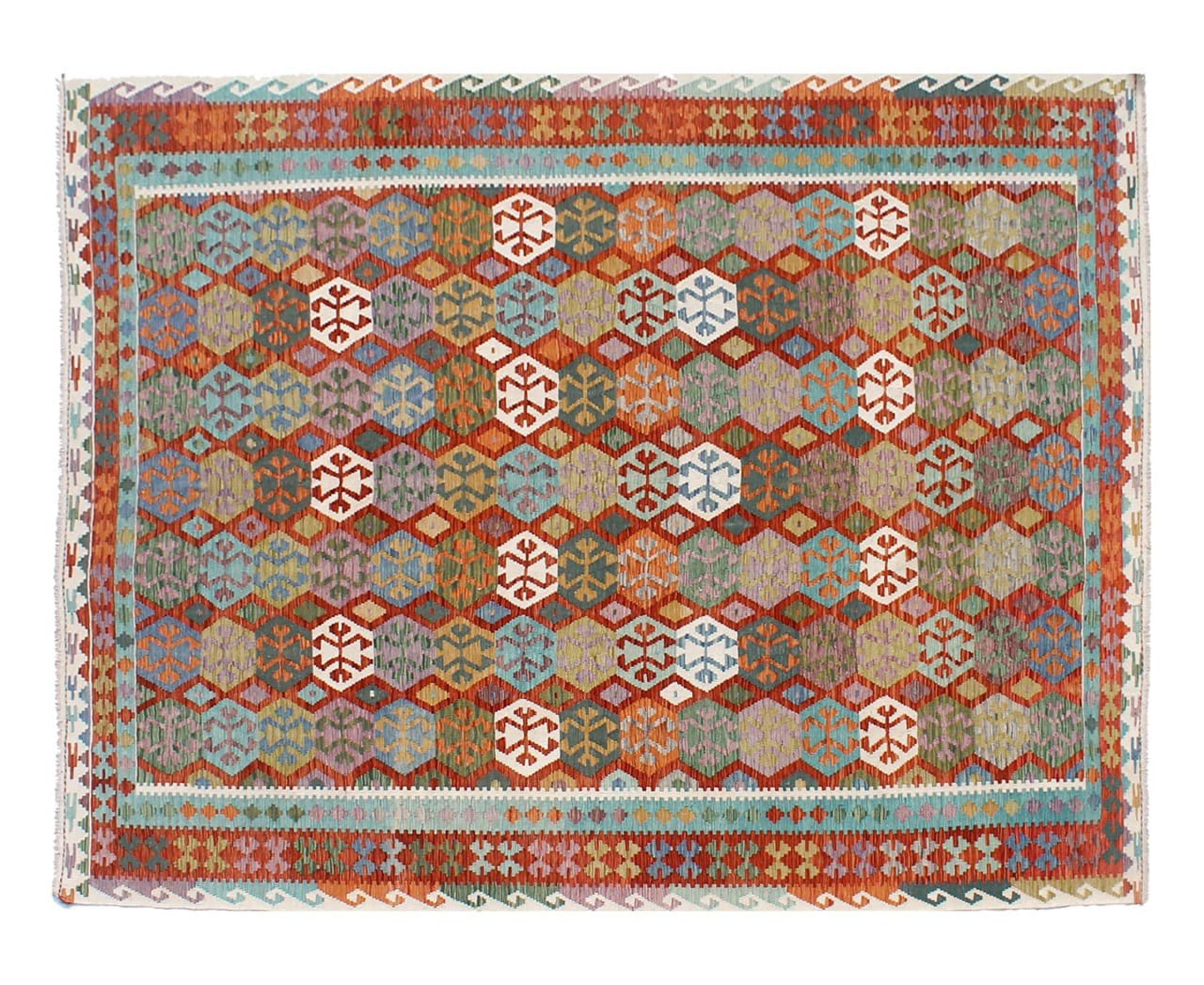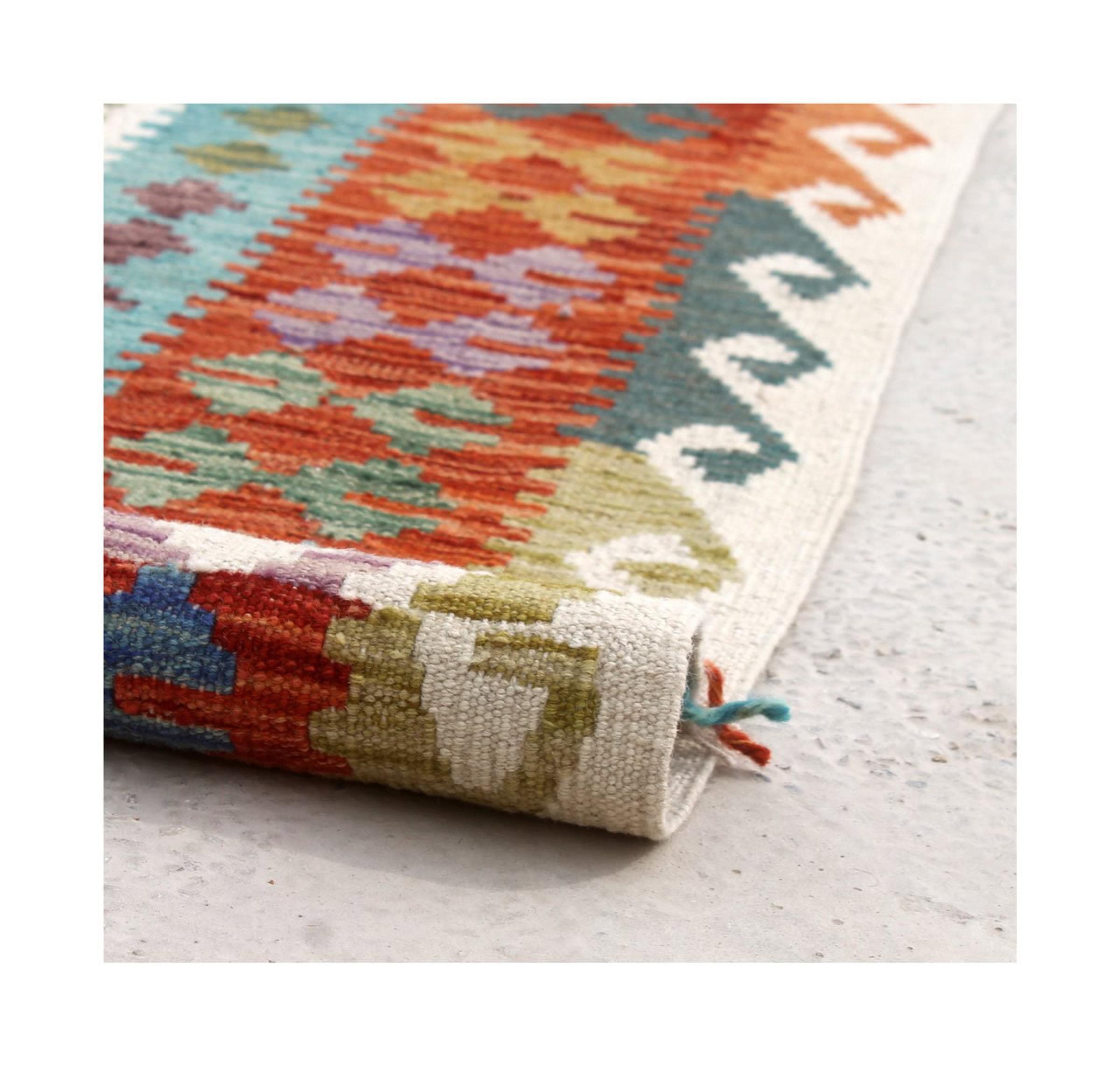 Ten ręcznie tkany kilim afgański jest piękny dzięki wielopłaszczyznowym kolorom i charakterystycznemu wzorowi. Została utkana ręcznie w Afganistanie ze 100% owczej wełny. Jest niewątpliwie bardziej wytrzymały i trwalszy niż dywany tkane maszynowo. Ponadto kilim ten ma swój własny charakter. Wyjątkowy element dla Ciebie i Twojego domu, którego już nigdy nie znajdziesz.