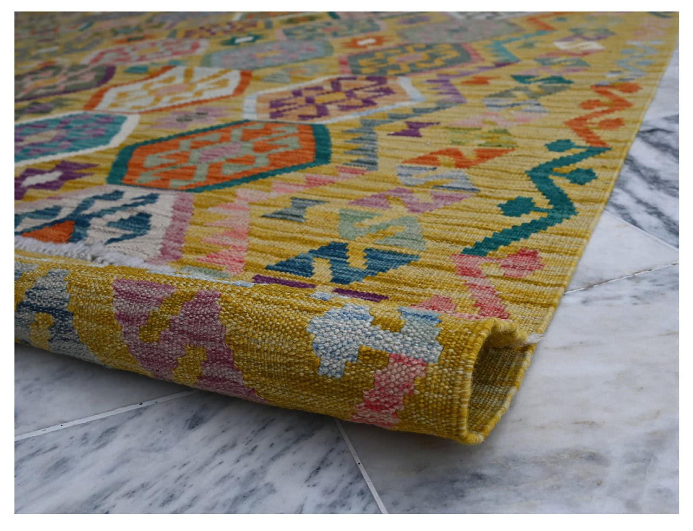 Ten ręcznie tkany kilim afgański jest piękny dzięki wielopłaszczyznowym kolorom i charakterystycznemu wzorowi. Została utkana ręcznie w Afganistanie ze 100% owczej wełny. Jest niewątpliwie bardziej wytrzymały i trwalszy niż dywany tkane maszynowo. Ponadto kilim ten ma swój własny charakter. Wyjątkowy element dla Ciebie i Twojego domu, którego już nigdy nie znajdziesz.