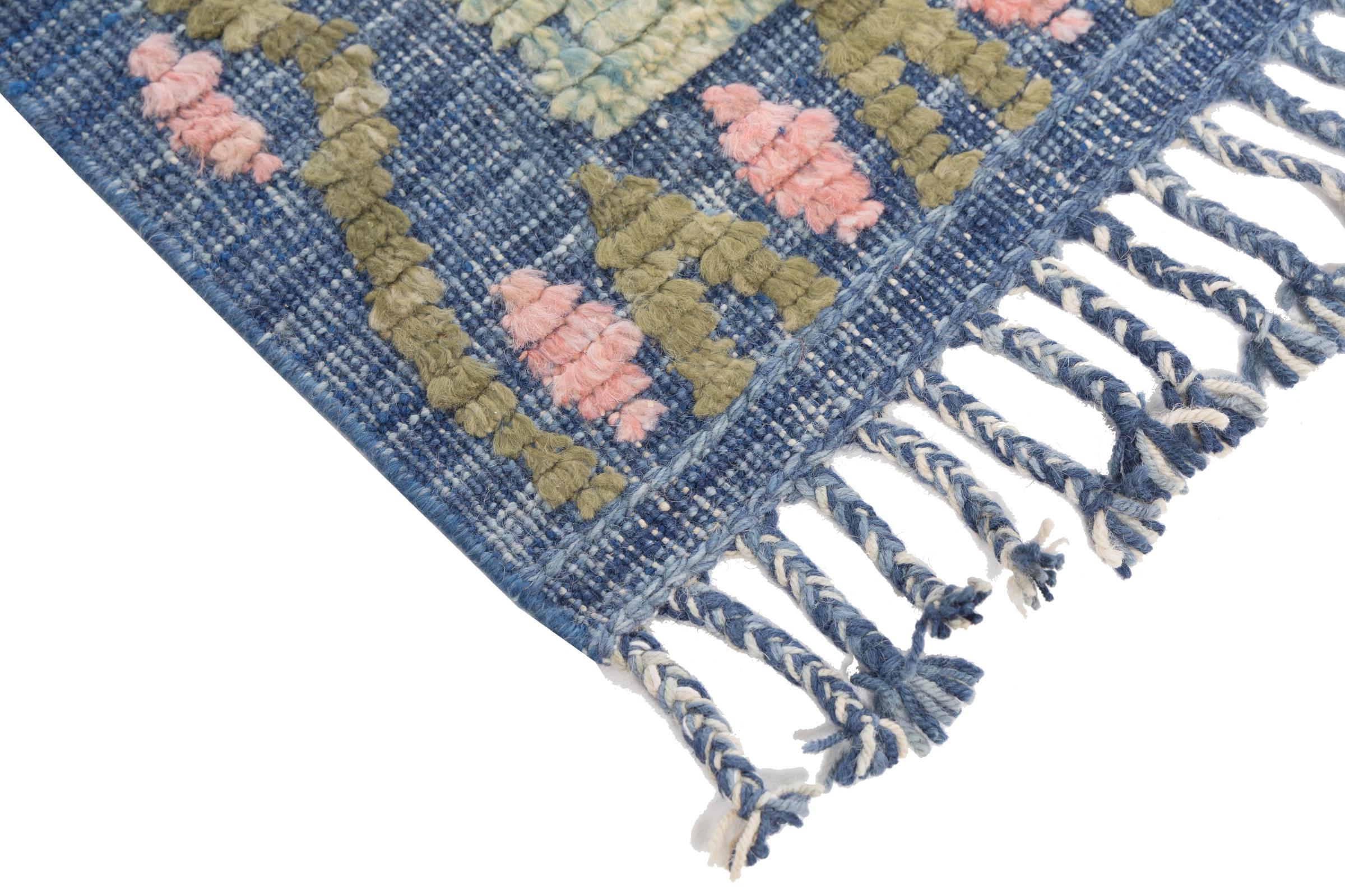 Ten dywan został wykonany ręcznie na krosnach jako płaski splot. Flatweave to termin używany do opisu dywanów, które nie mają kupki. Jak obiecuje nazwa, te dywany są tkane i nie splatane. W ten sposób powstaje płaski dywan o ustrukturyzowanej powierzchni. Płaskie fale nie są tak miękkie i zazwyczaj cieńsze niż dywany węzełkowe. Jednocześnie są one znacznie mniej skomplikowane w produkcji i zazwyczaj mogą być układane z obu stron (z przodu i z tyłu). Ich wzory są zazwyczaj geometryczne, co jest uwarunkowane tkaniną.