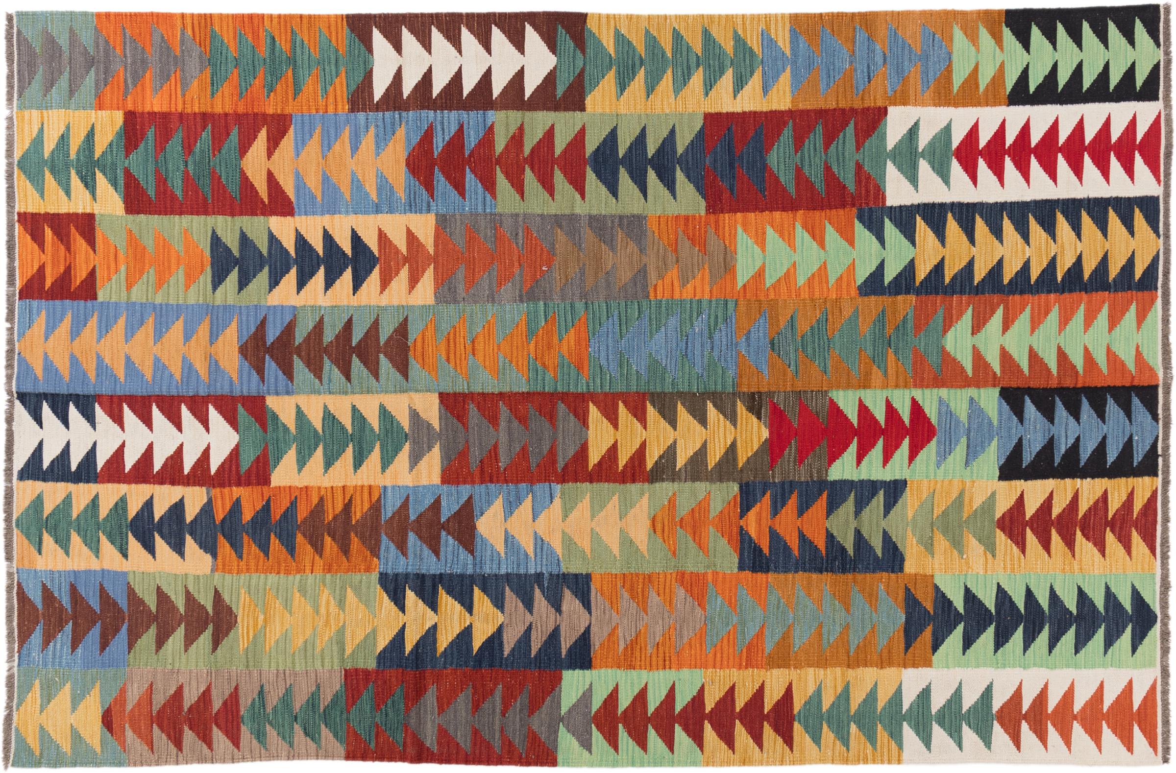 Nr.dywanu: 2944650049853 Wielkość: 300x197 cm Grubość: ok. 3 mm Przetwarzanie: Ręcznie tkane Włosie: Wełna ręcznie przędzona Osnowa: Wełna Pochodzenie: Afganistan Wiek: nowe Waga: ok. 9 kg Znany także jako Kilim, Qilim, Chilim, Afgan, Afghán Ilość w magazynie: Unikalny - Tylko 1 na składzie