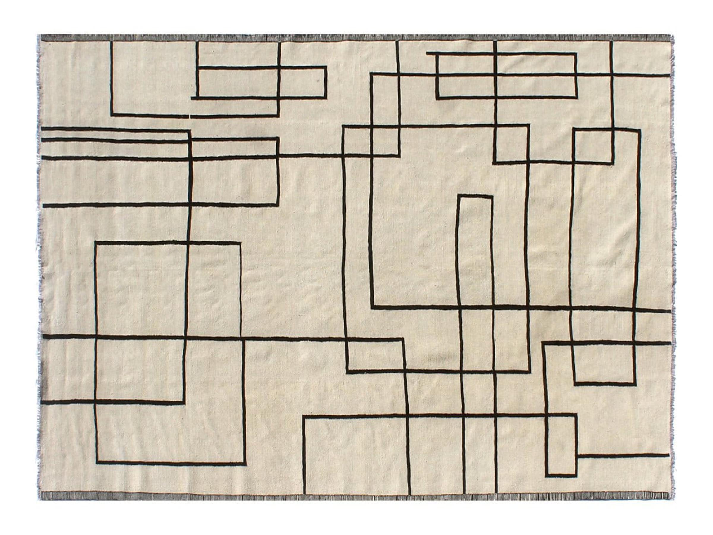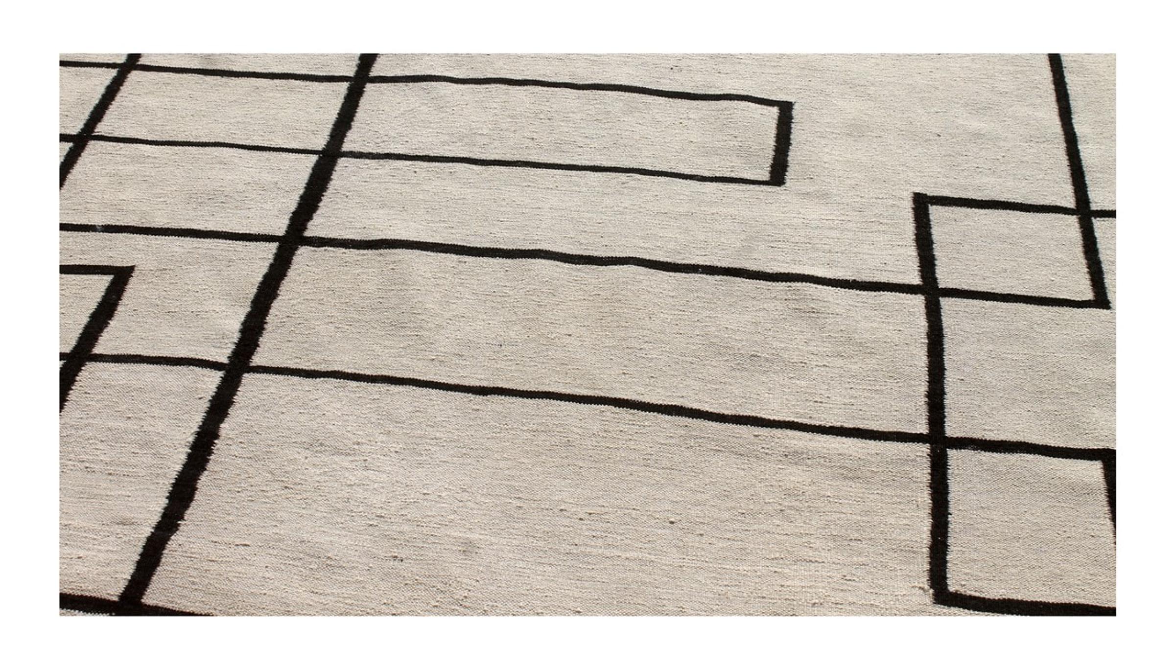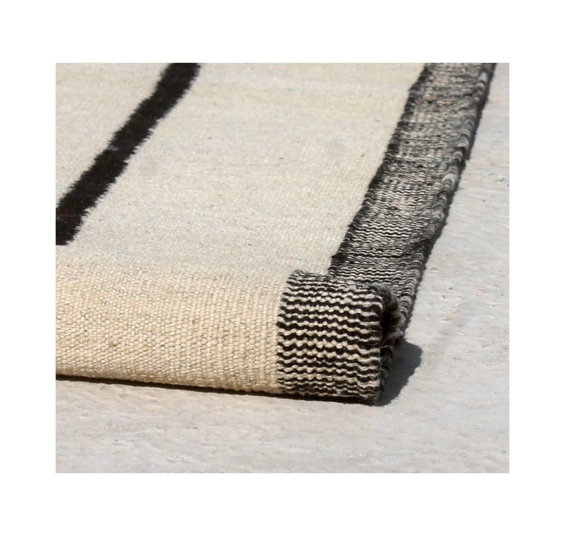 Ten dywan został wykonany ręcznie na krosnach jako płaski splot. Flatweave to termin używany do opisu dywanów, które nie mają kupki. Jak obiecuje nazwa, te dywany są tkane i nie splatane. W ten sposób powstaje płaski dywan o ustrukturyzowanej powierzchni. Płaskie fale nie są tak miękkie i zazwyczaj cieńsze niż dywany węzełkowe. Jednocześnie są one znacznie mniej skomplikowane w produkcji i zazwyczaj mogą być układane z obu stron (z przodu i z tyłu). Ich wzory są zazwyczaj geometryczne, co jest uwarunkowane tkaniną.