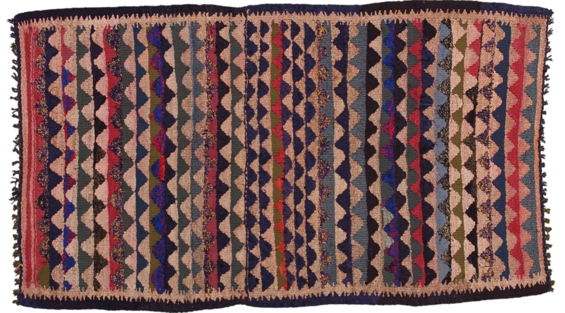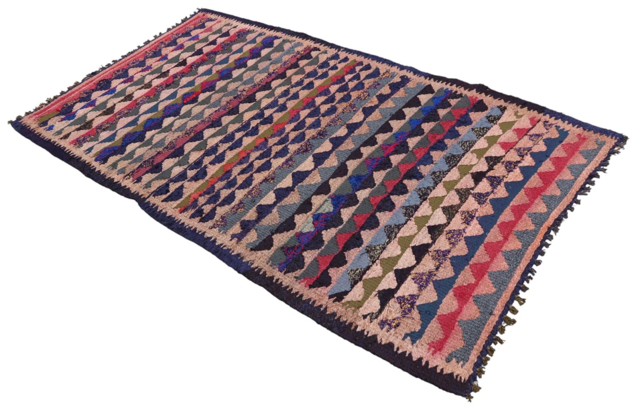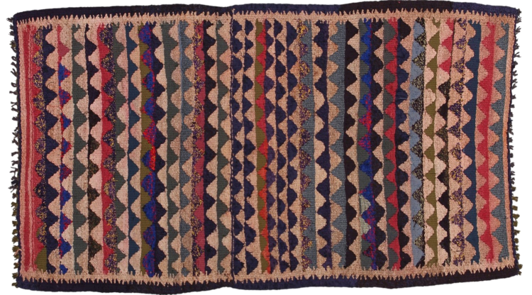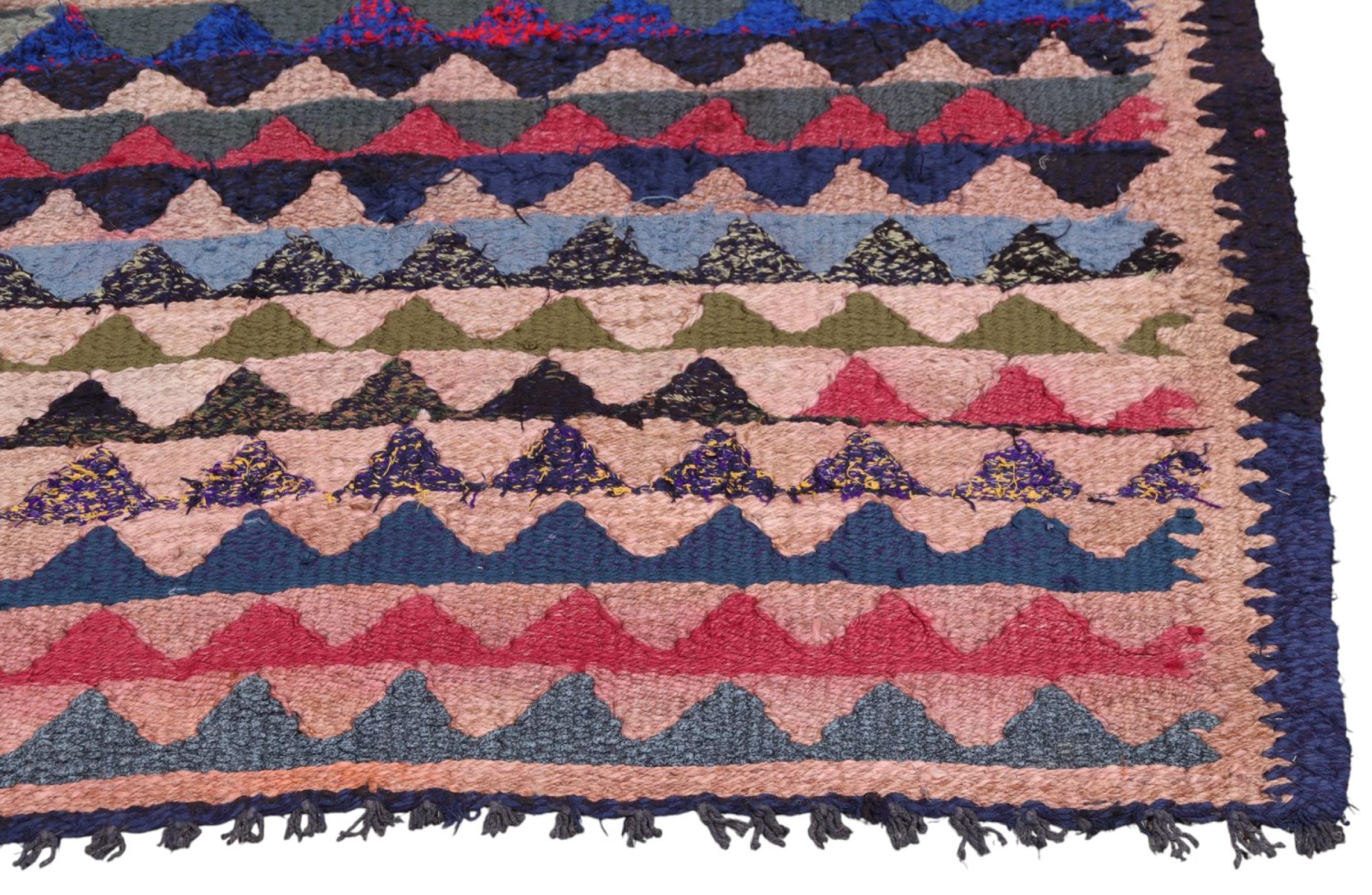 Ten dywan został wykonany ręcznie na krosnach jako płaski splot. Flatweave to termin używany do opisu dywanów, które nie mają kupki. Jak obiecuje nazwa, te dywany są tkane i nie splatane. W ten sposób powstaje płaski dywan o ustrukturyzowanej powierzchni. Płaskie fale nie są tak miękkie i zazwyczaj cieńsze niż dywany węzełkowe. Jednocześnie są one znacznie mniej skomplikowane w produkcji i zazwyczaj mogą być układane z obu stron (z przodu i z tyłu). Ich wzory są zazwyczaj geometryczne, co jest uwarunkowane tkaniną.