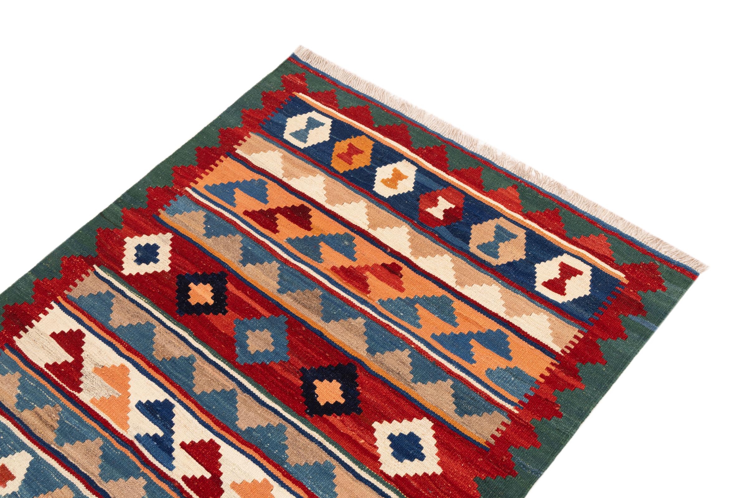 Ten dywan został wykonany ręcznie na krosnach jako płaski splot. Flatweave to termin używany do opisu dywanów, które nie mają kupki. Jak obiecuje nazwa, te dywany są tkane i nie splatane. W ten sposób powstaje płaski dywan o ustrukturyzowanej powierzchni. Płaskie fale nie są tak miękkie i zazwyczaj cieńsze niż dywany węzełkowe. Jednocześnie są one znacznie mniej skomplikowane w produkcji i zazwyczaj mogą być układane z obu stron (z przodu i z tyłu). Ich wzory są zazwyczaj geometryczne, co jest uwarunkowane tkaniną.