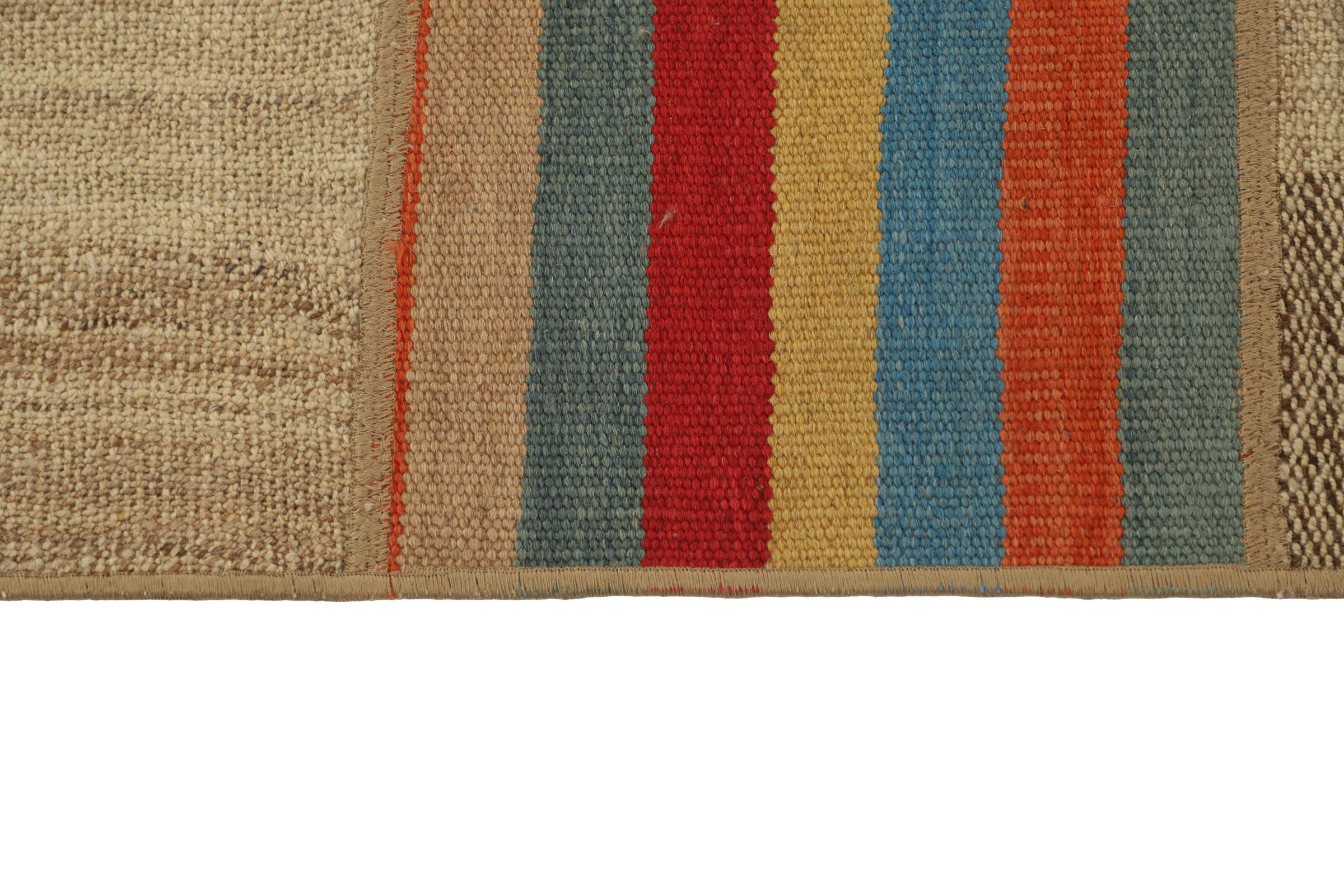 Ten dywan został wykonany ręcznie na krosnach jako płaski splot. Flatweave to termin używany do opisu dywanów, które nie mają kupki. Jak obiecuje nazwa, te dywany są tkane i nie splatane. W ten sposób powstaje płaski dywan o ustrukturyzowanej powierzchni. Płaskie fale nie są tak miękkie i zazwyczaj cieńsze niż dywany węzełkowe. Jednocześnie są one znacznie mniej skomplikowane w produkcji i zazwyczaj mogą być układane z obu stron (z przodu i z tyłu). Ich wzory są zazwyczaj geometryczne, co jest uwarunkowane tkaniną.