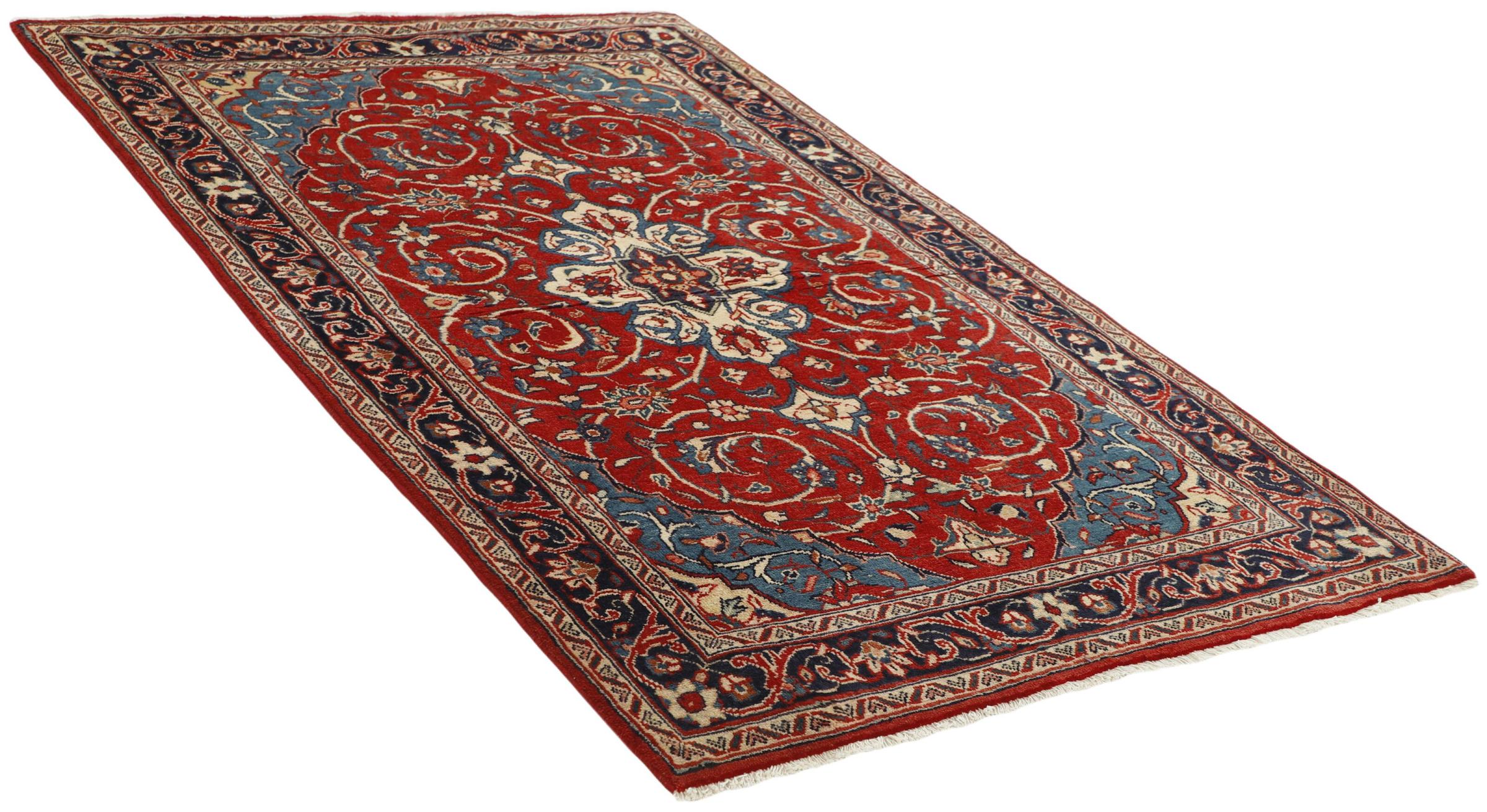 Ten orientalny dywan pochodzi z proweniencji Mahal, która znajduje się w zachodnio-środkowym Iranie. Projekt błyszczy w przyjaznej kolorystyce z harmonijnie dobranymi barwami. Szczegółowa rama stylowo przedstawia misternie wykonane motywy na wewnętrznym polu. Jako autentyczny, ręcznie tkany dywan perski o solidnej jakości, model ten jest jednocześnie estetyczny i trwały - idealny do przedpokoju lub salonu.