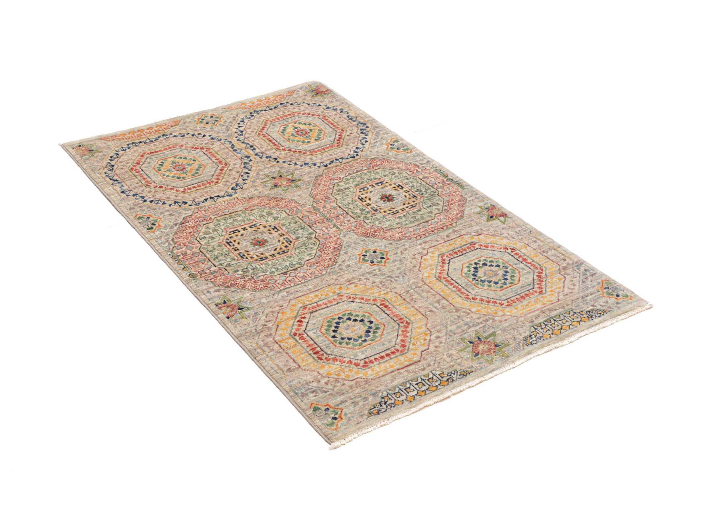 Nr.dywanu: 306900003951094 Wielkość: 125x80 cm Grubość: ok. 6 mm Gęstość tkania: 200 000 - 250 000 / m² Przetwarzanie: Ręcznie tkane Włosie: Wełna ręcznie przędzona Osnowa: Bawełna Pochodzenie: Pakistan Wiek: nowe Waga: ok. 3 kg Ilość w magazynie: Unikalny - Tylko 1 na składzie